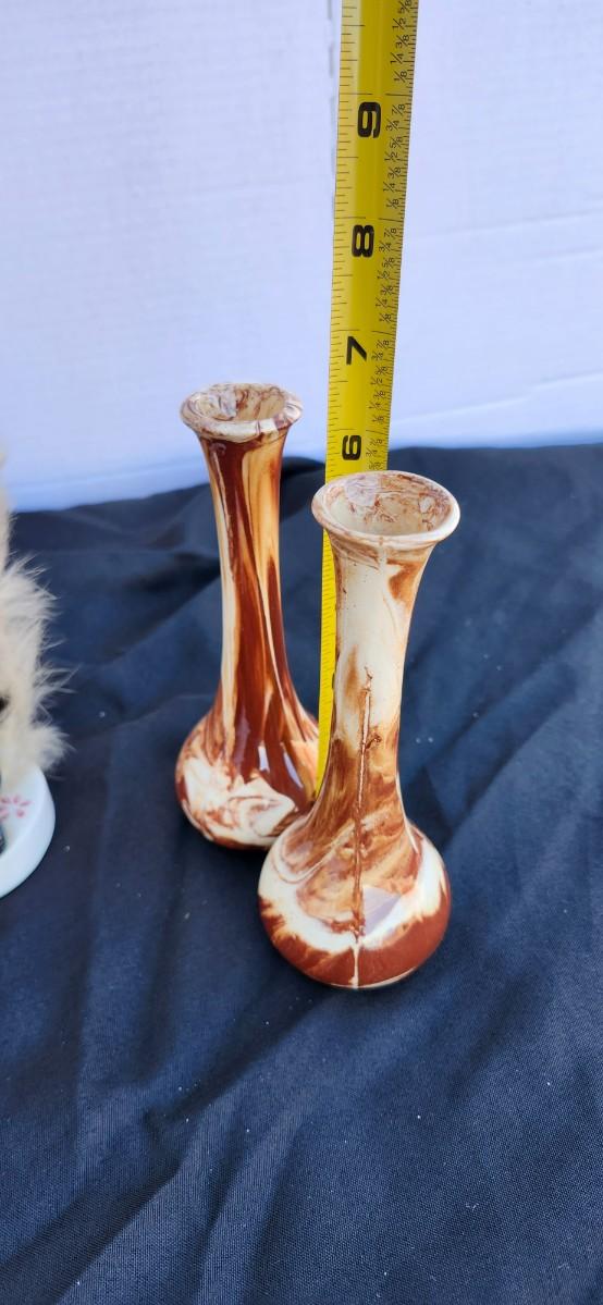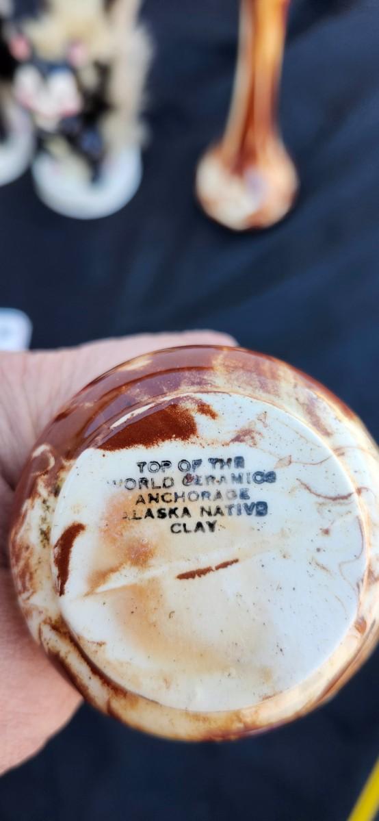 Alaska Native Clay Pottery Cream Brown Swirl Bud vase