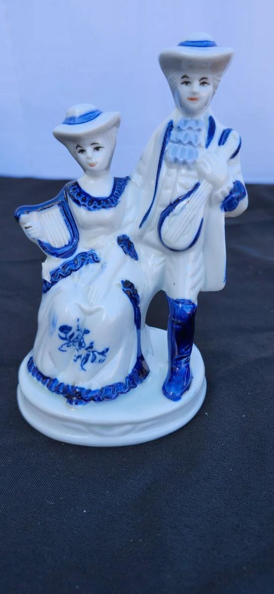 Blue And White Figurine F.E.I. 1985 Victorian Figurine 6.5" Tall