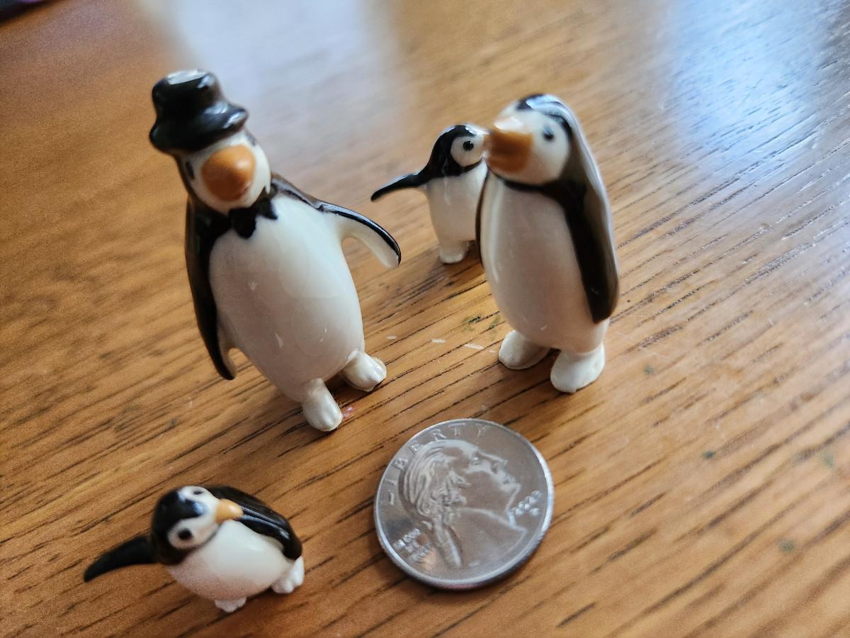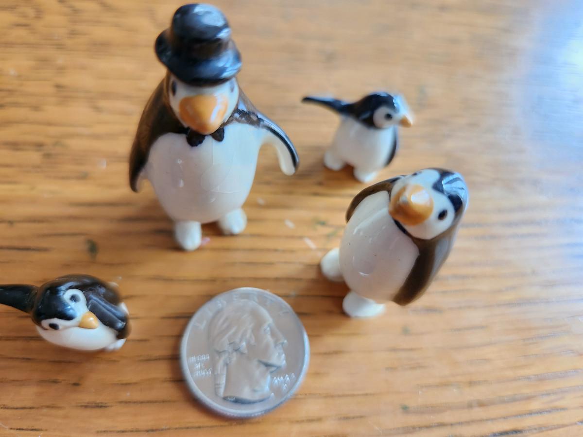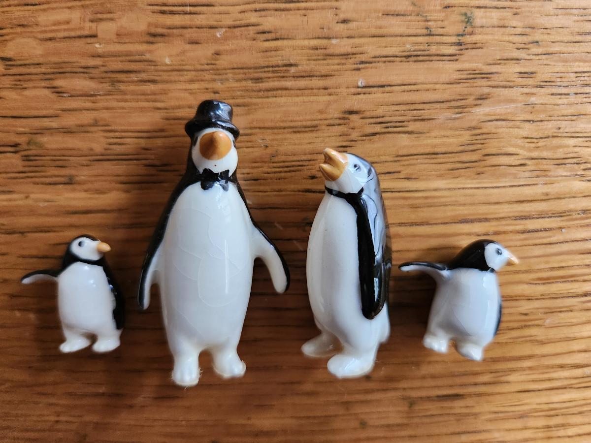 This auction lot is for a Ceramic Mini Penguin Family, These small but nicely executed penguin family of four figures will be just the right finish for that special shelf or bookcase. Vintage and cute, cute, cute.