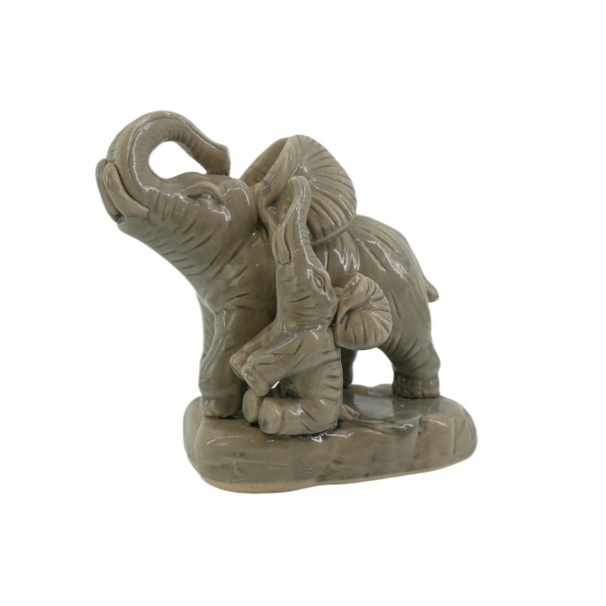 Ceramic Mother and Baby Elephant Figurine