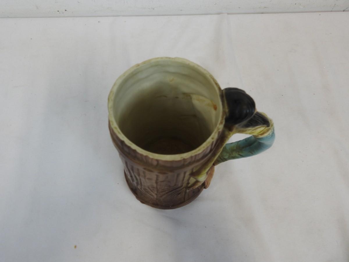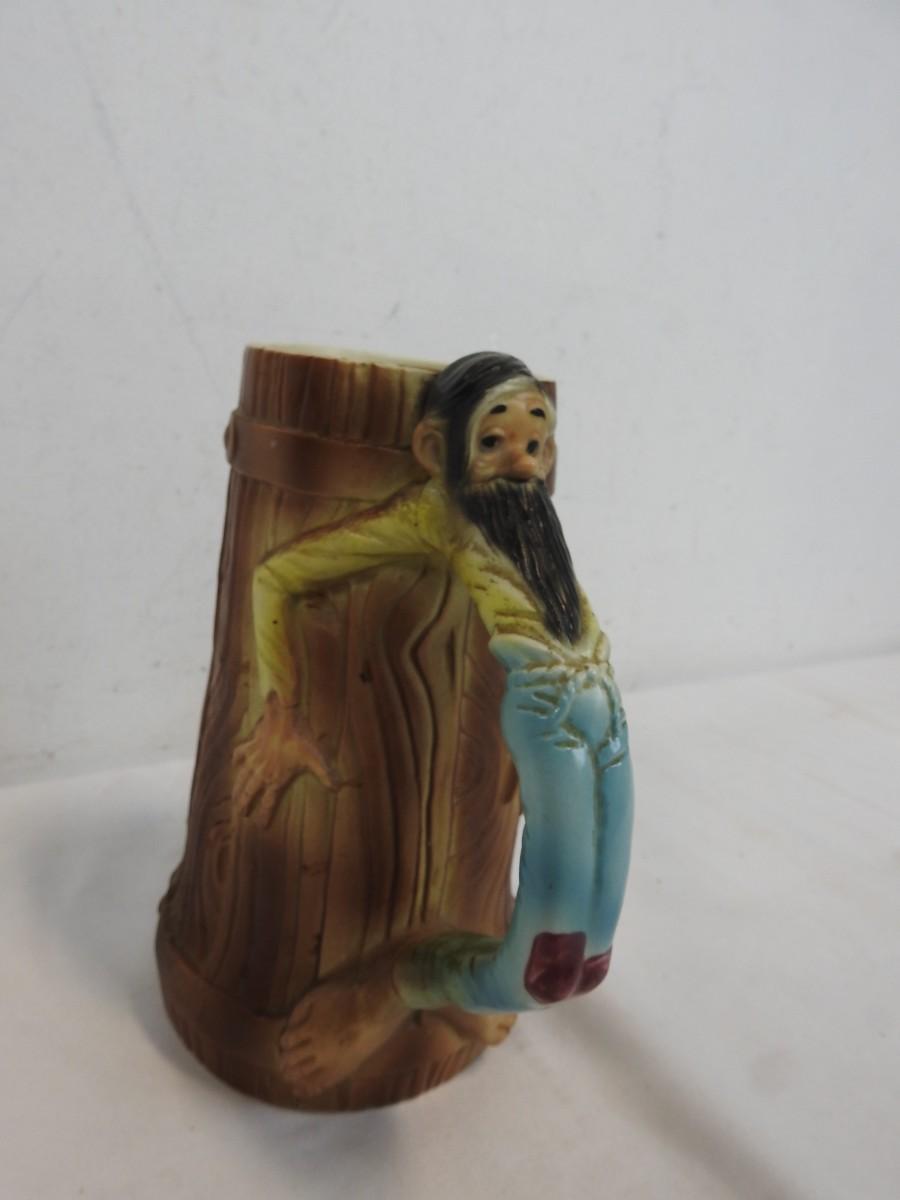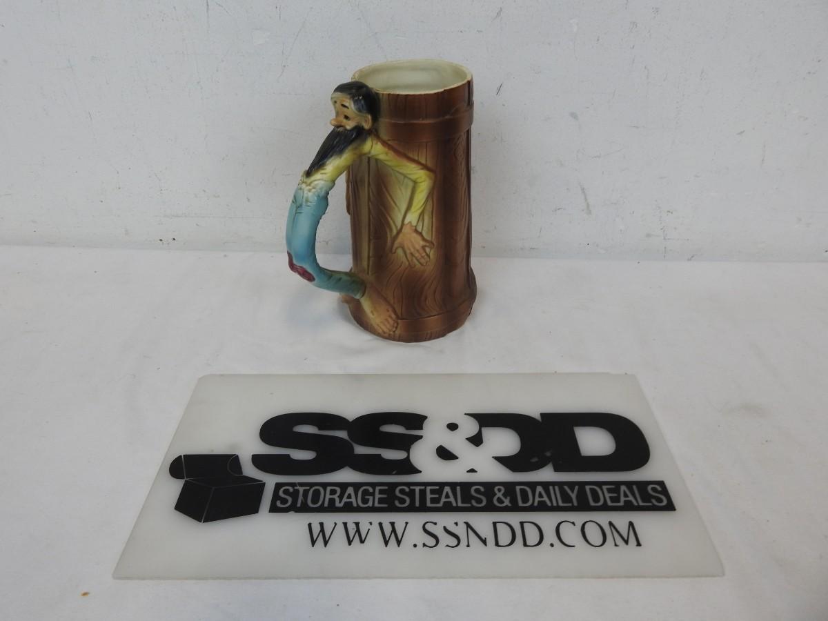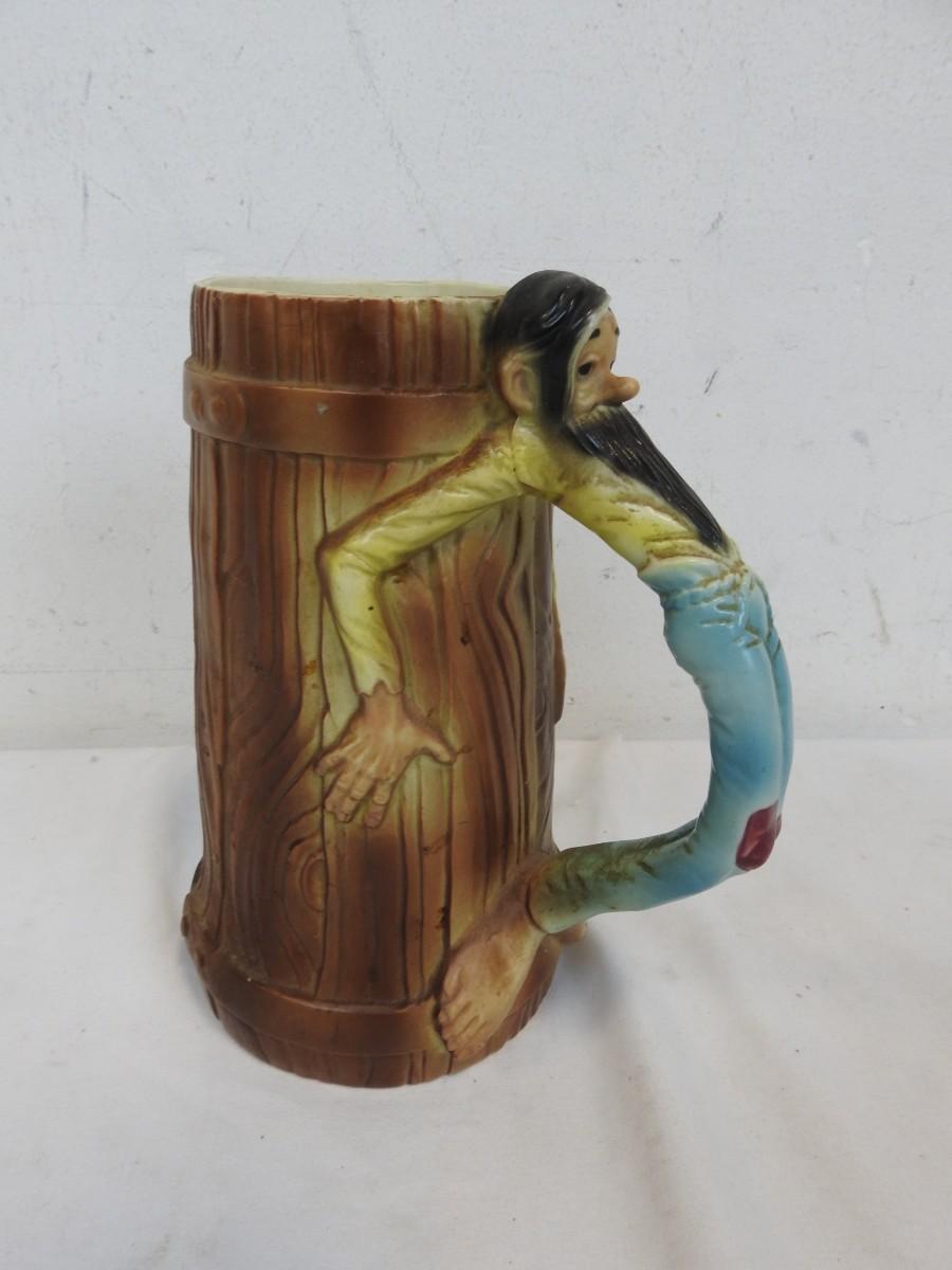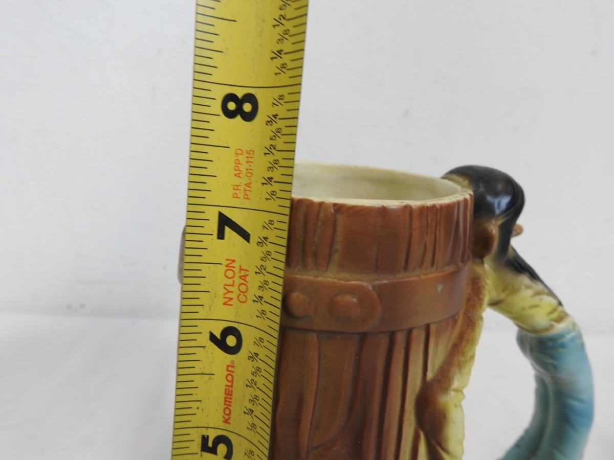 Ceramic Mug, 7" Tall, Man Hanging Off a Barrel