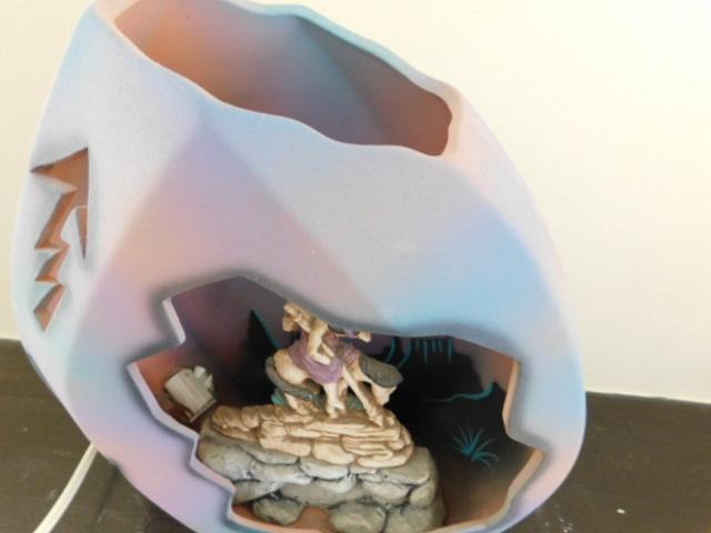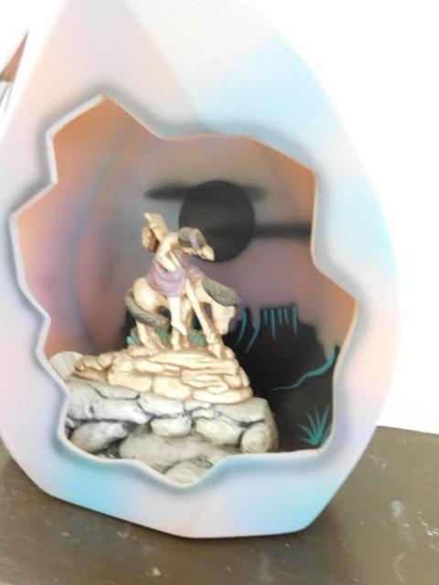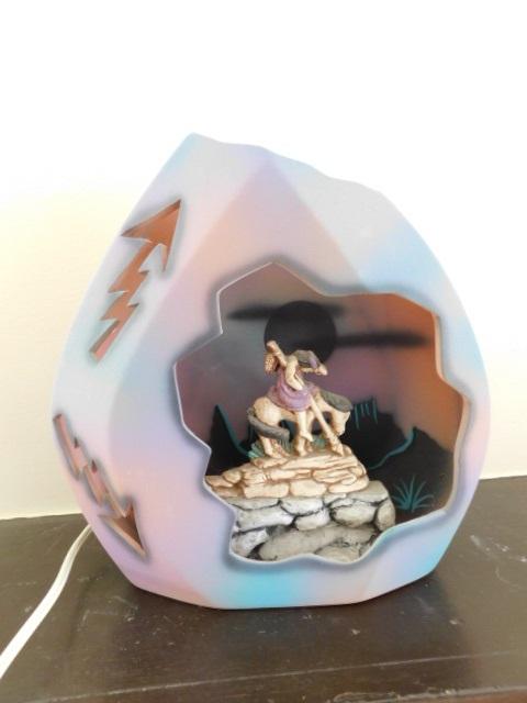 Ceramic Native American End of Trail Table Lamp Back-Lit