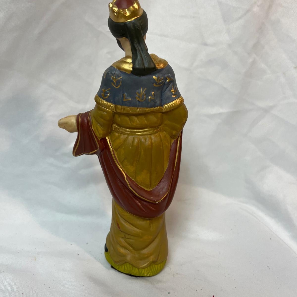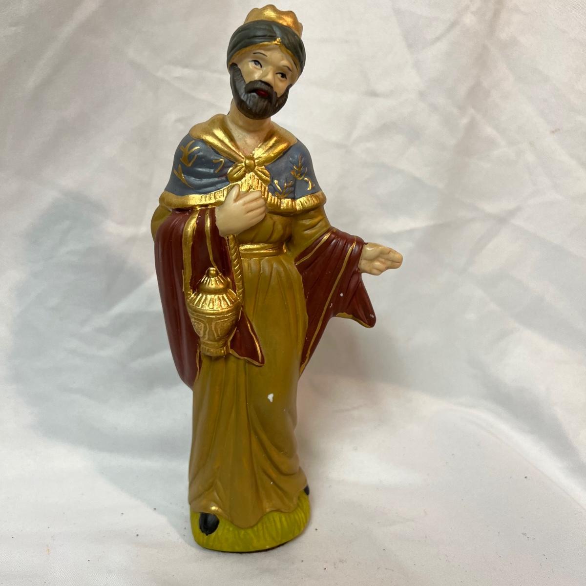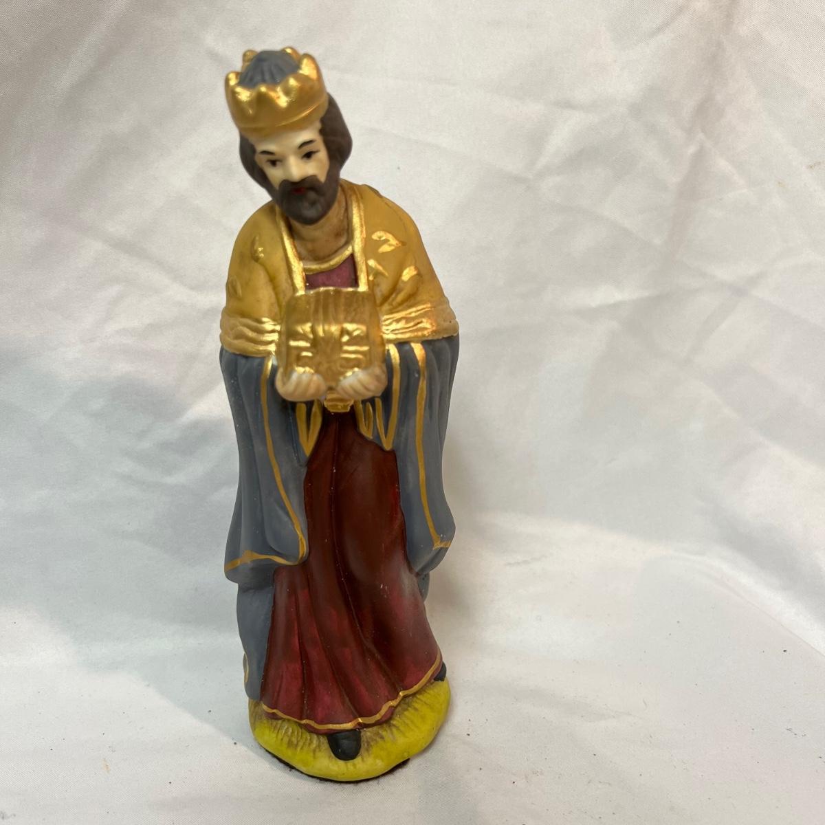 Twelve-piece Porcelain Ceramic Nativity scene in its original packaging. Each piece varies in size with the tallest up to 8”.