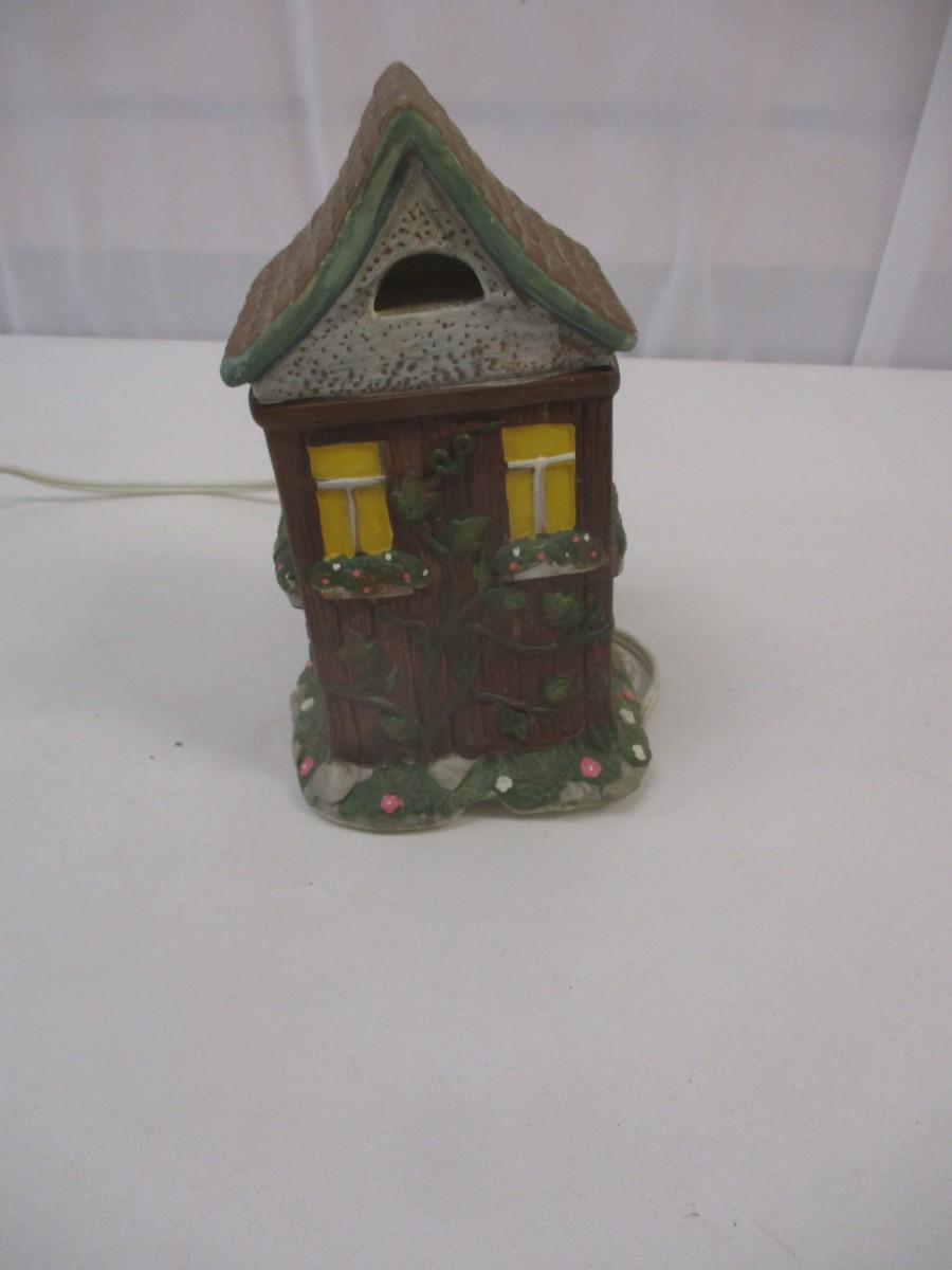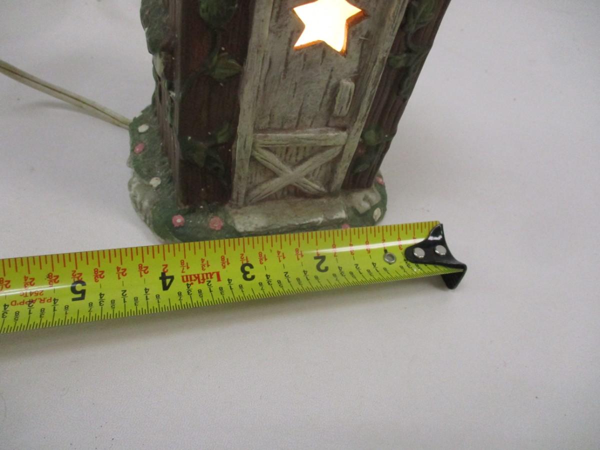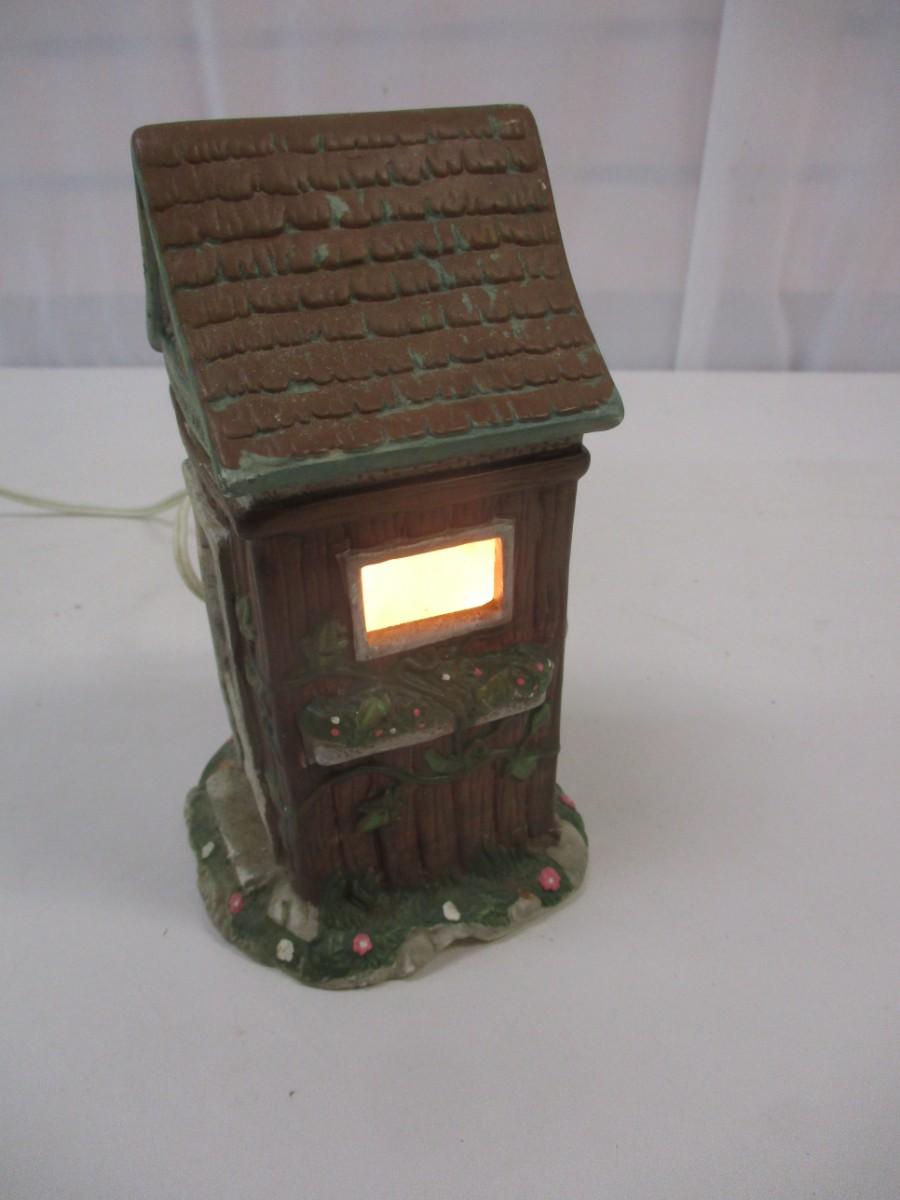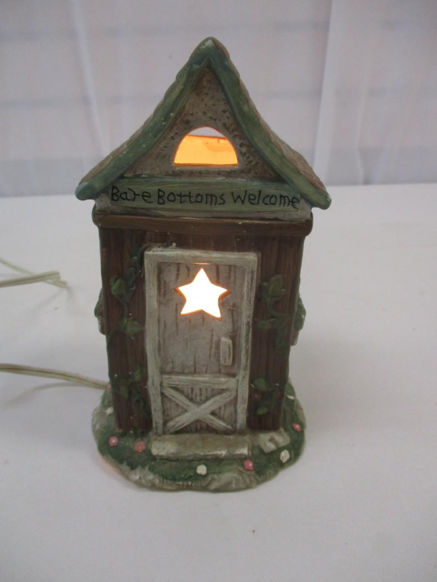 Ceramic Outhouse "Bare Bottoms Welcome" Porcelain Lighted House