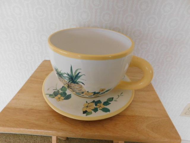 Ceramic Oversized Tea Cup and Saucer Planter 10"