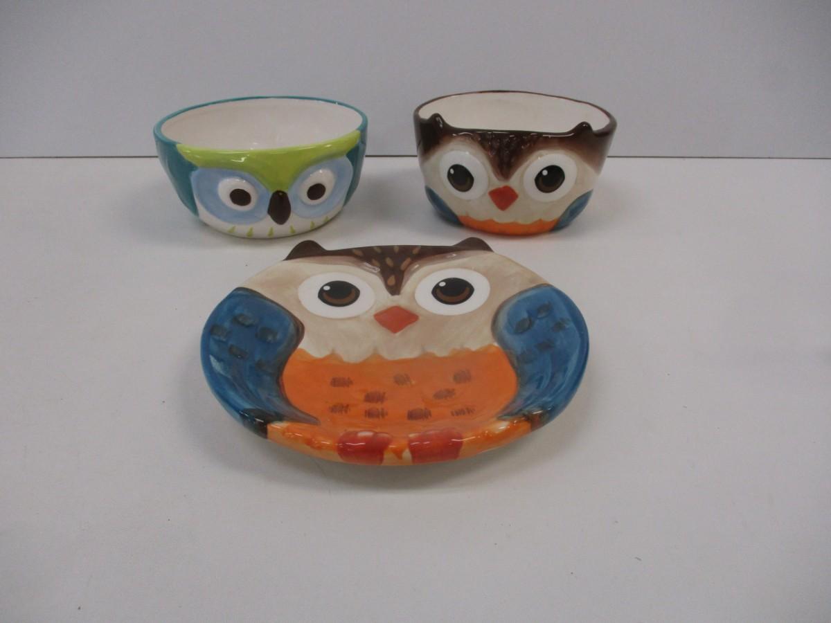Ceramic Owl Figural Bowls & Earthenware Salad Plate