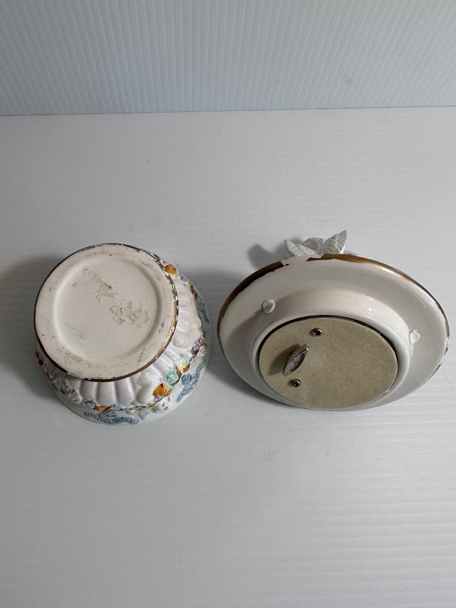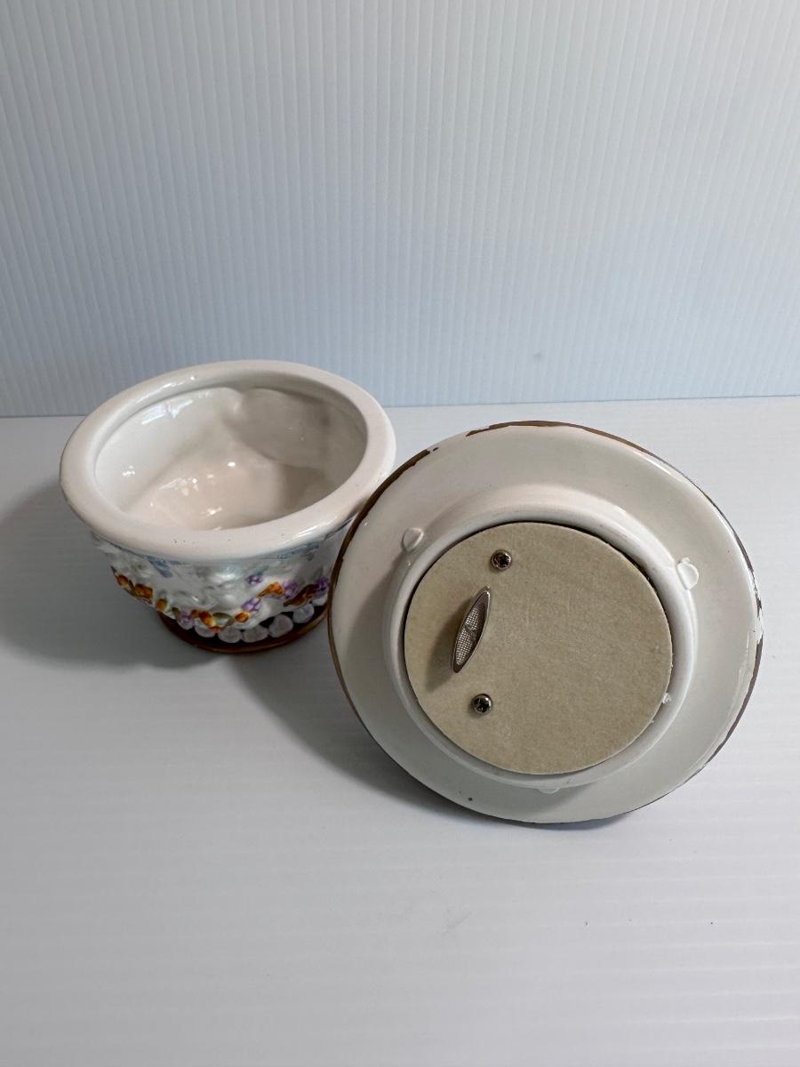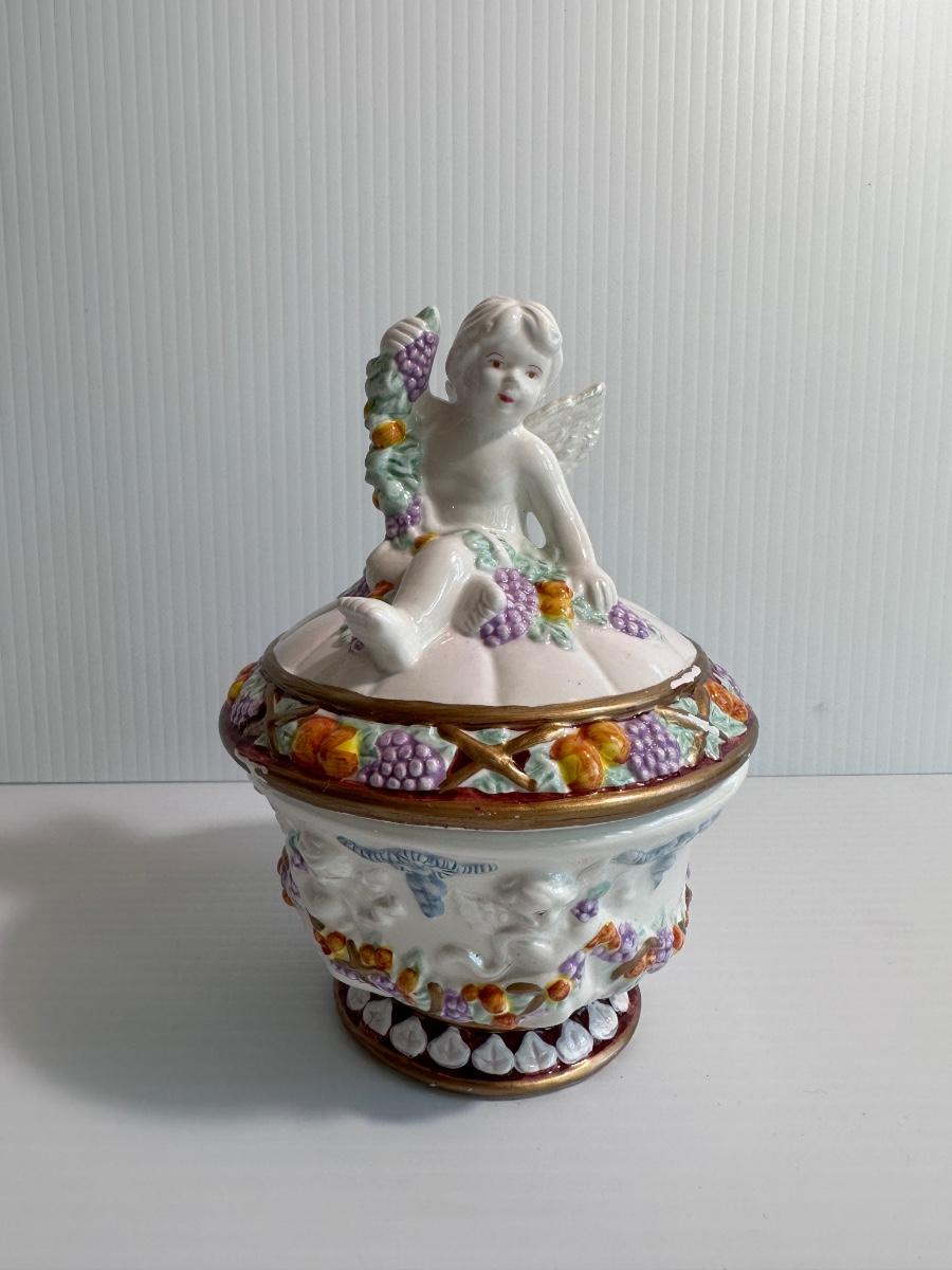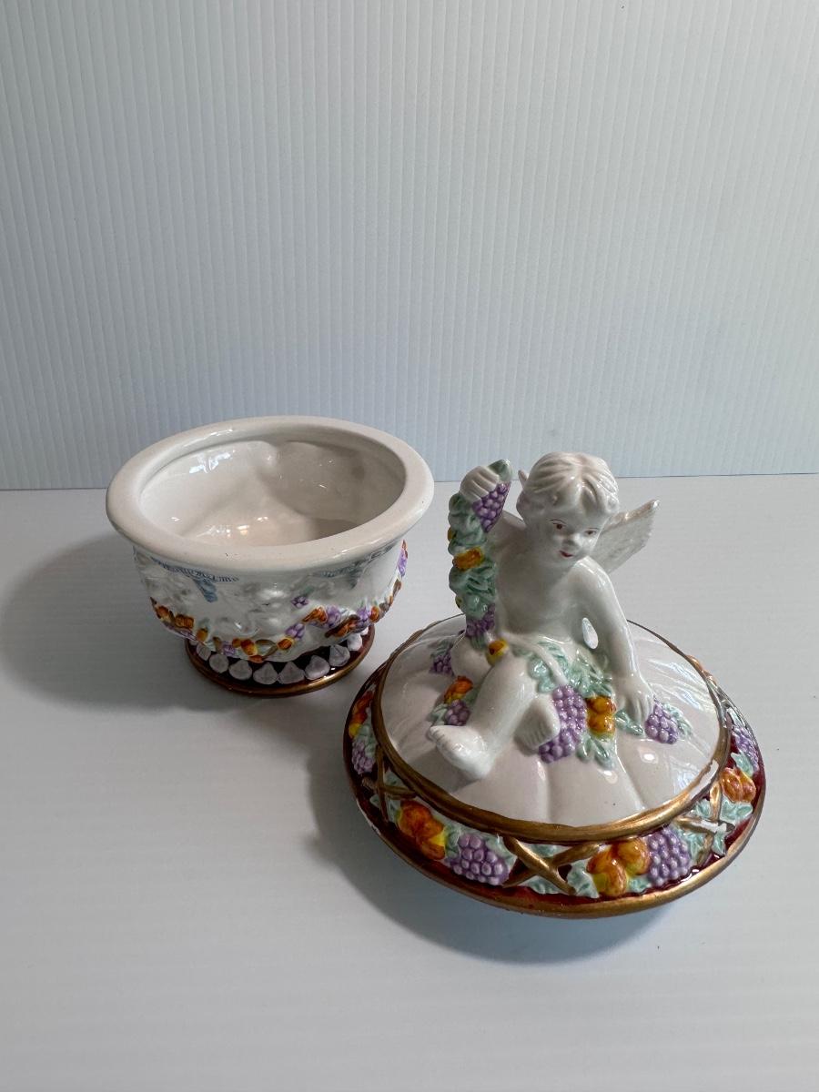 Vintage Italian ceramic painted cherub music box
