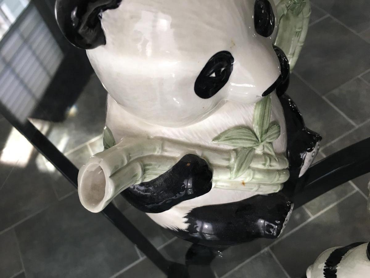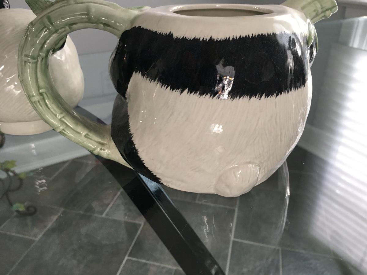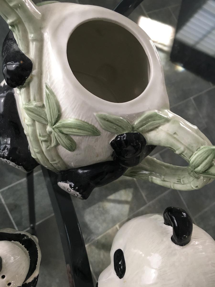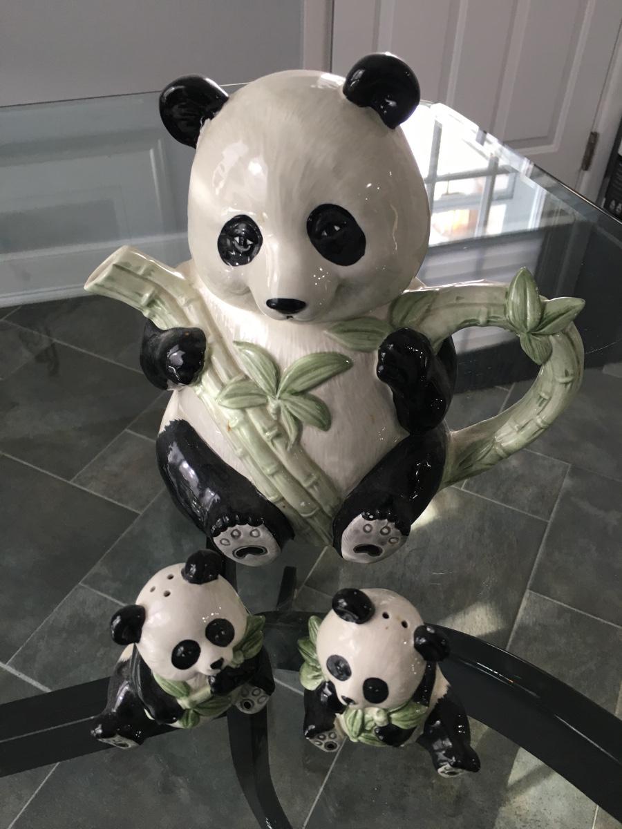 Lovely panda tea pot with matching pair of salt and pepper shakers.