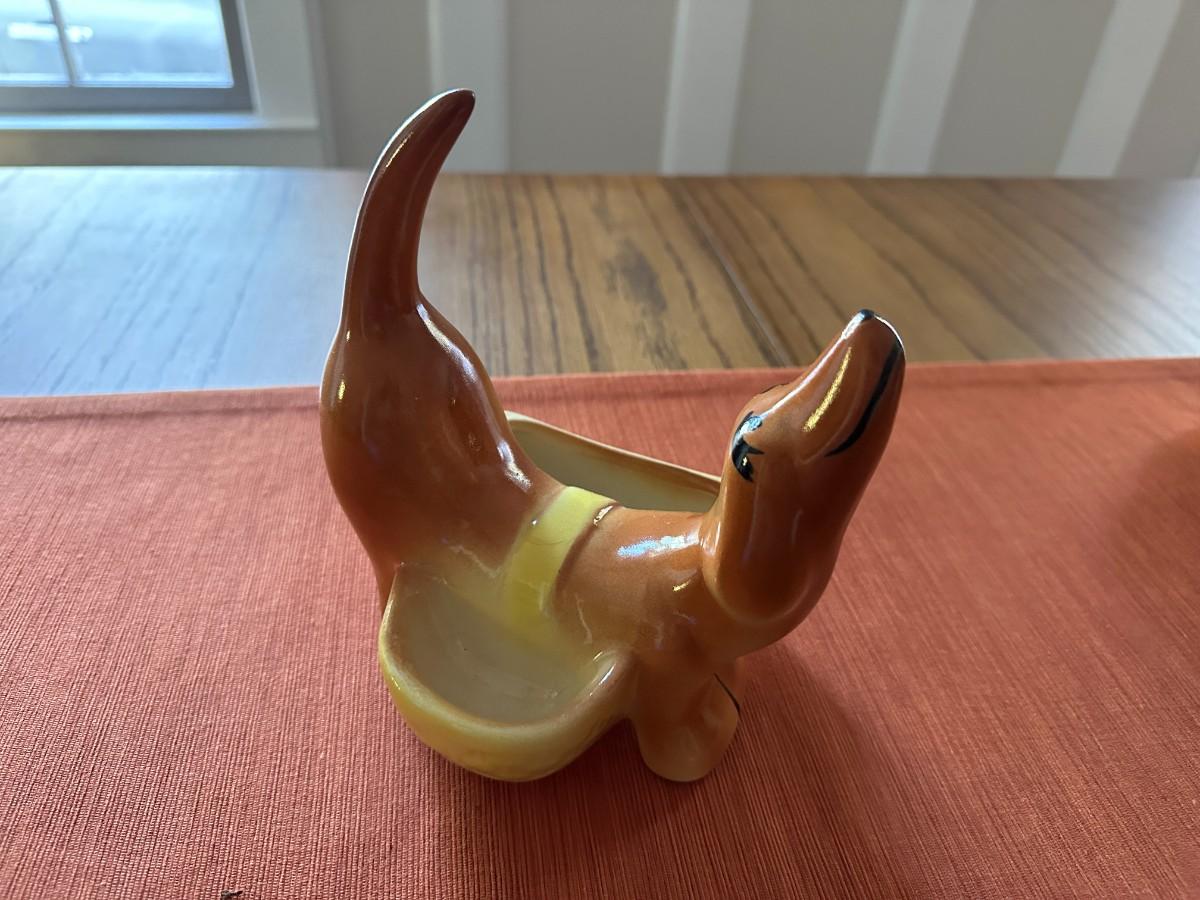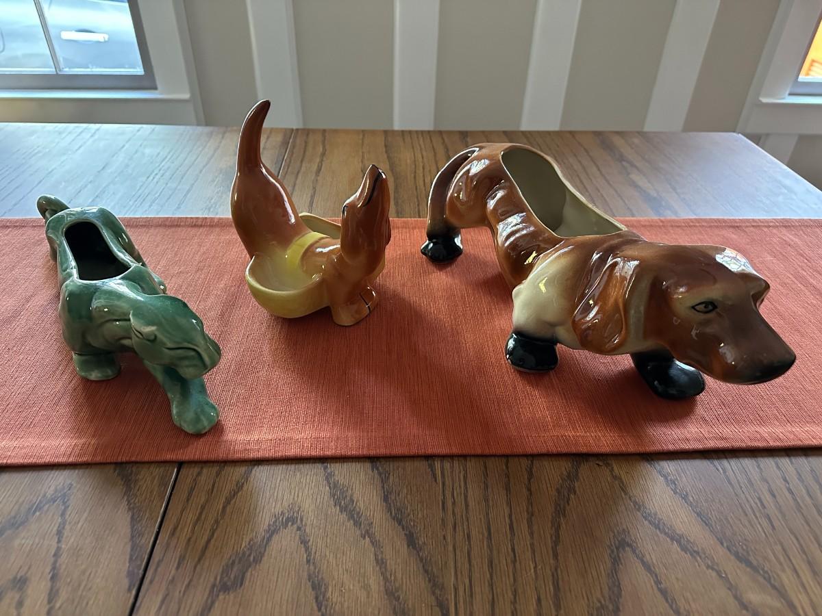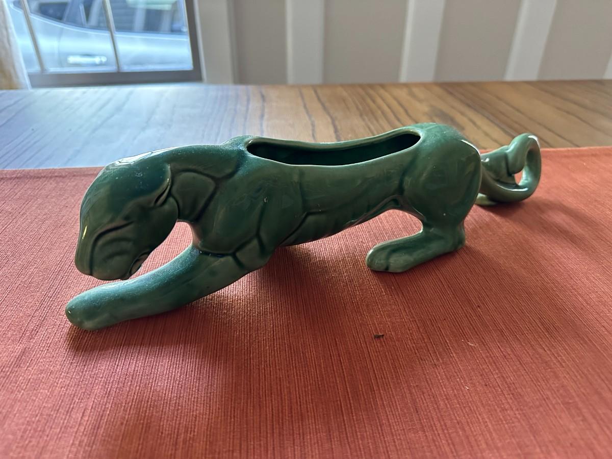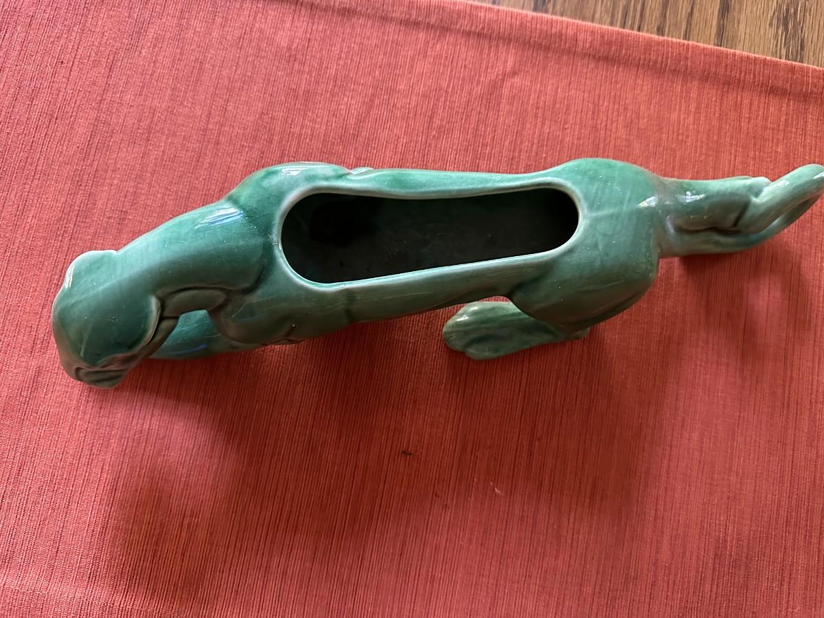 Large dog measures 17" L, small doge is 7.5"L, Green Panther is 15.5"L