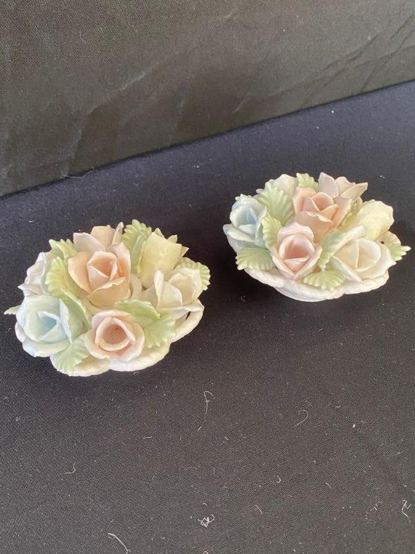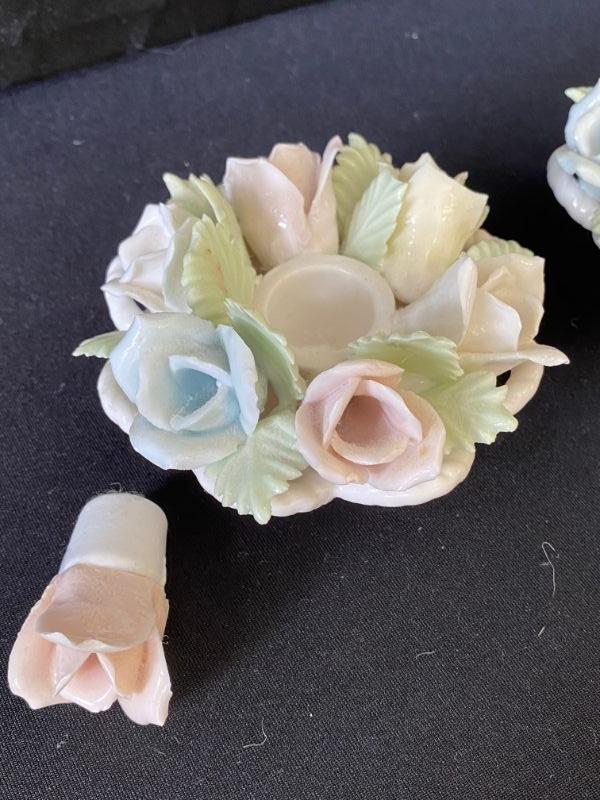 Ceramic Pastel Rose Candle Holders - Lot 373