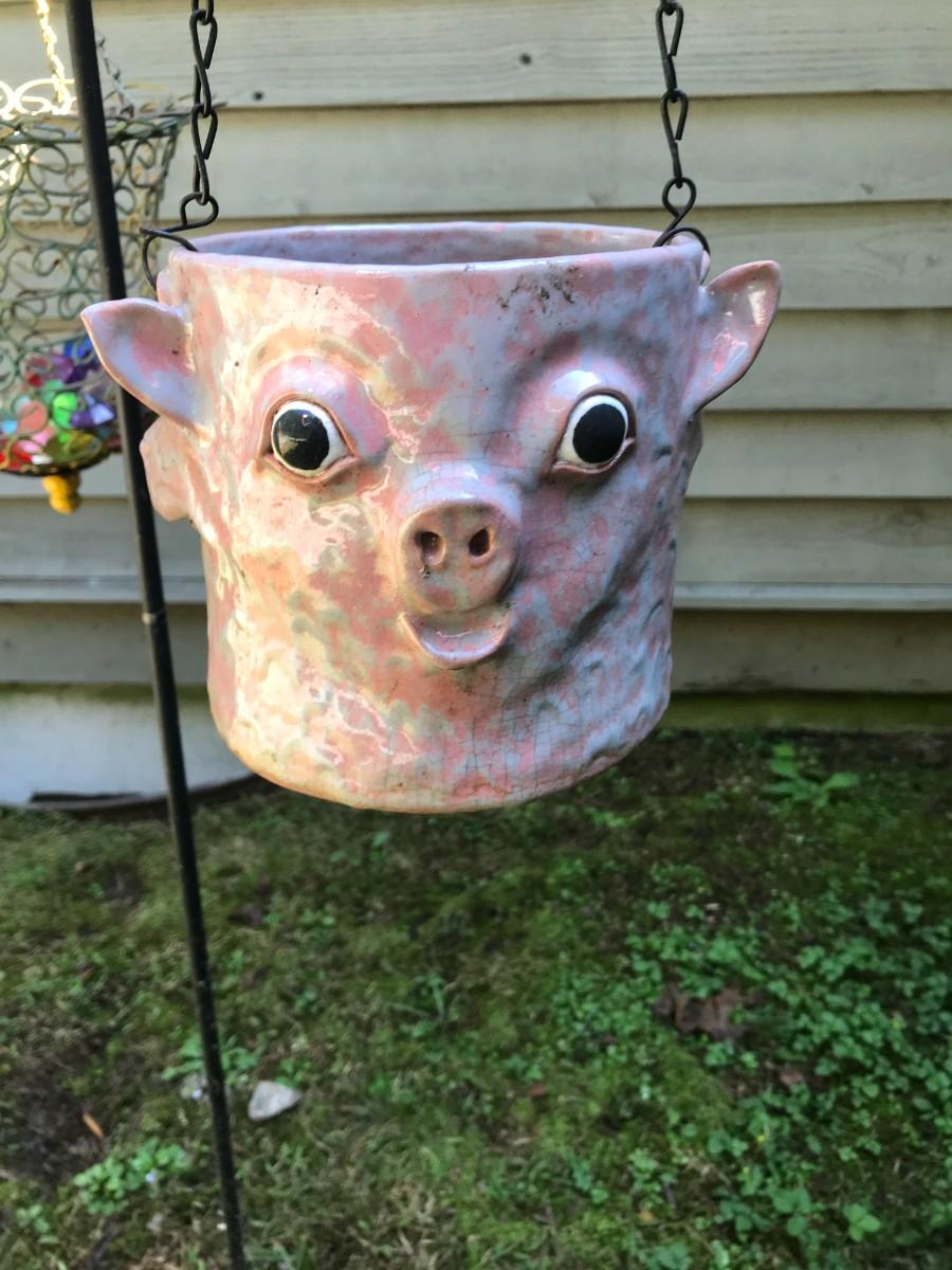 Ceramic Pig Face Hanging Flower or Plant Basket (Shepards Hook not included)