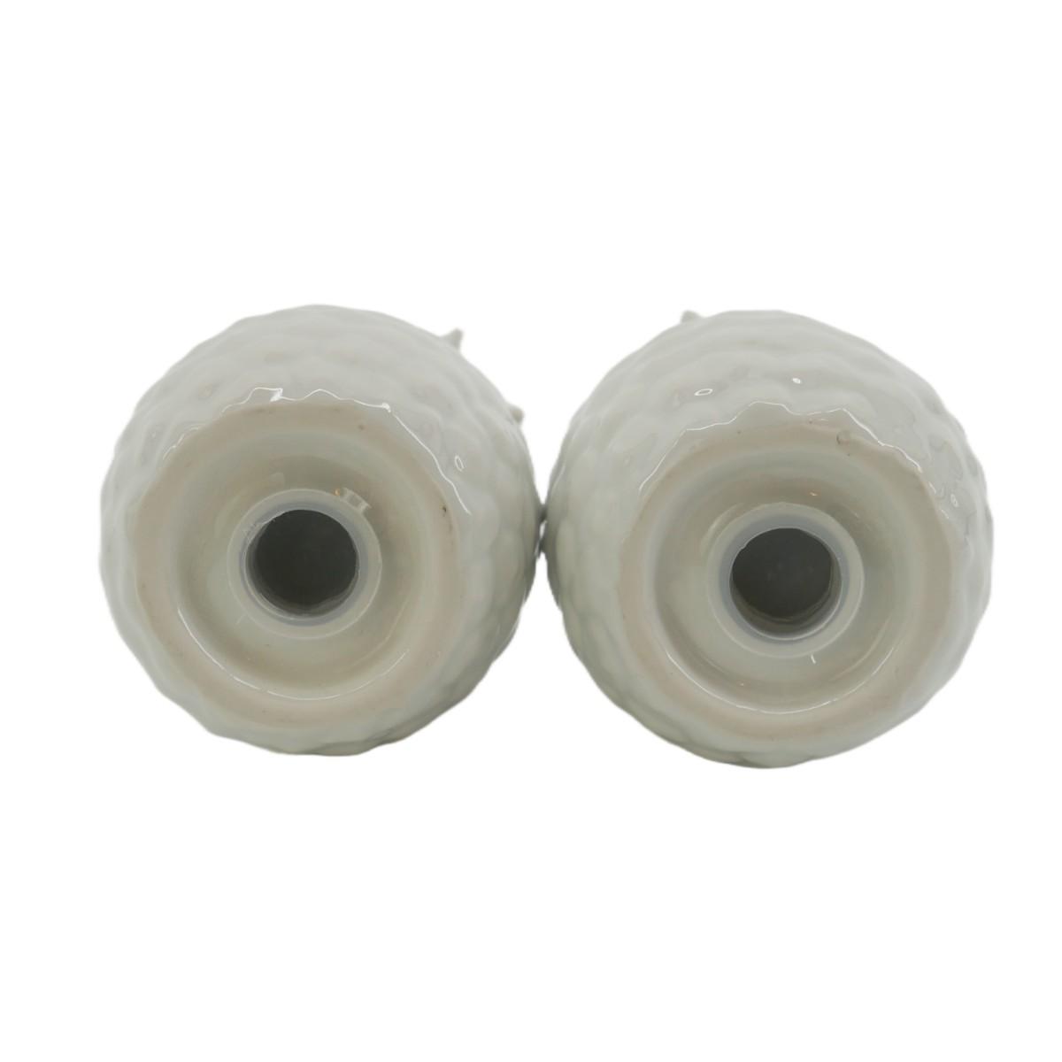 Ceramic pineapple salt and pepper shakers. No issues found. Each measures 1.75" x 1.75", total weight is 5.4 oz.