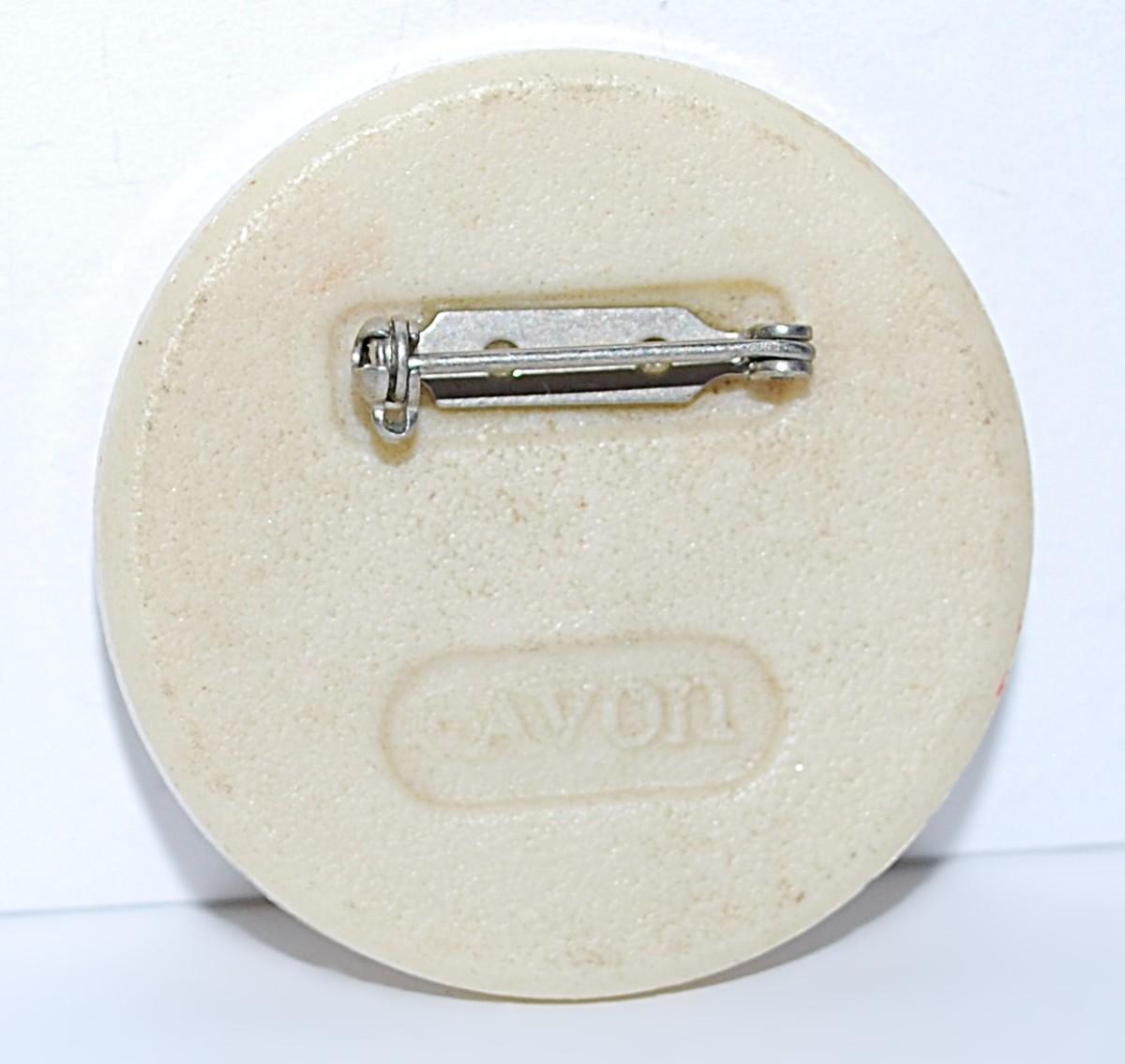 Ceramic PINK FLOWER BROOCH (1½" Diam.) Marked "AVON" - with Flower Bouquet and Silver Tone Pin Clasp