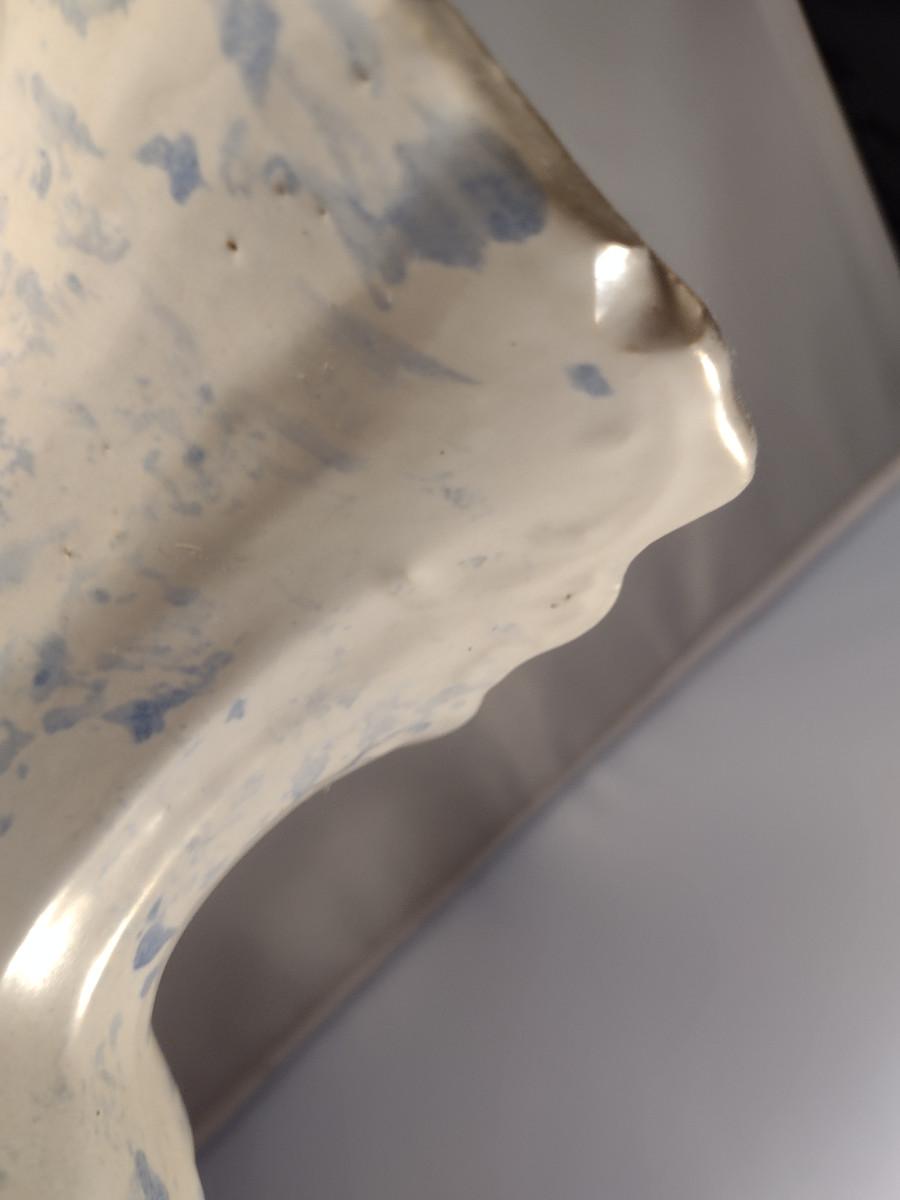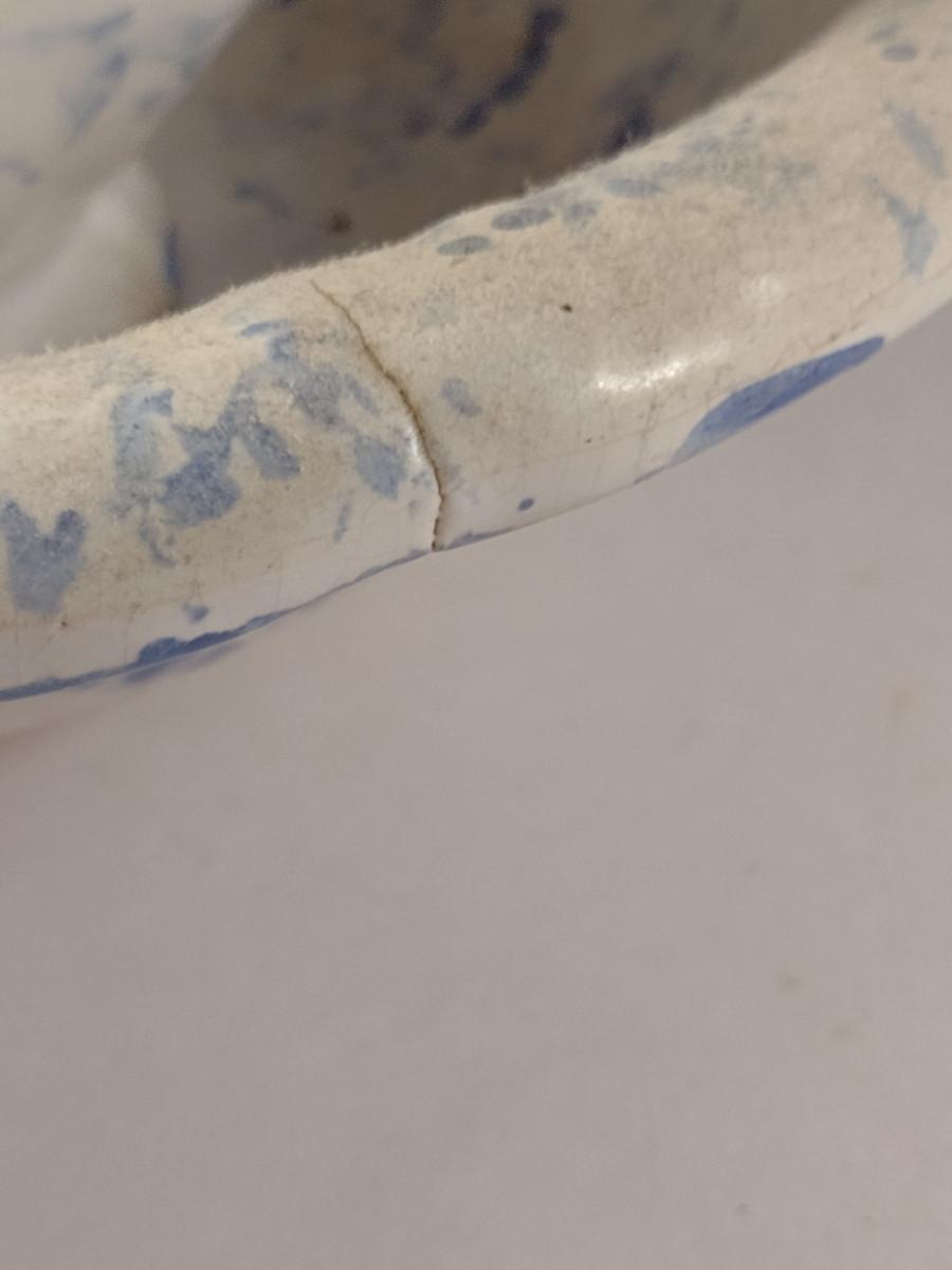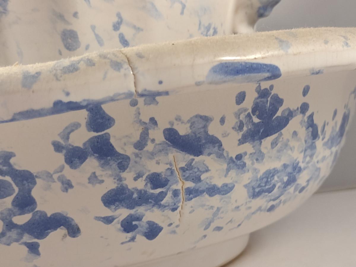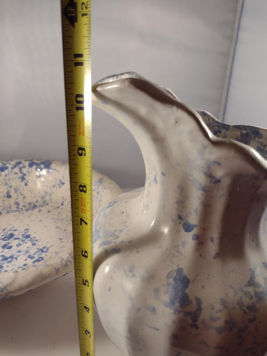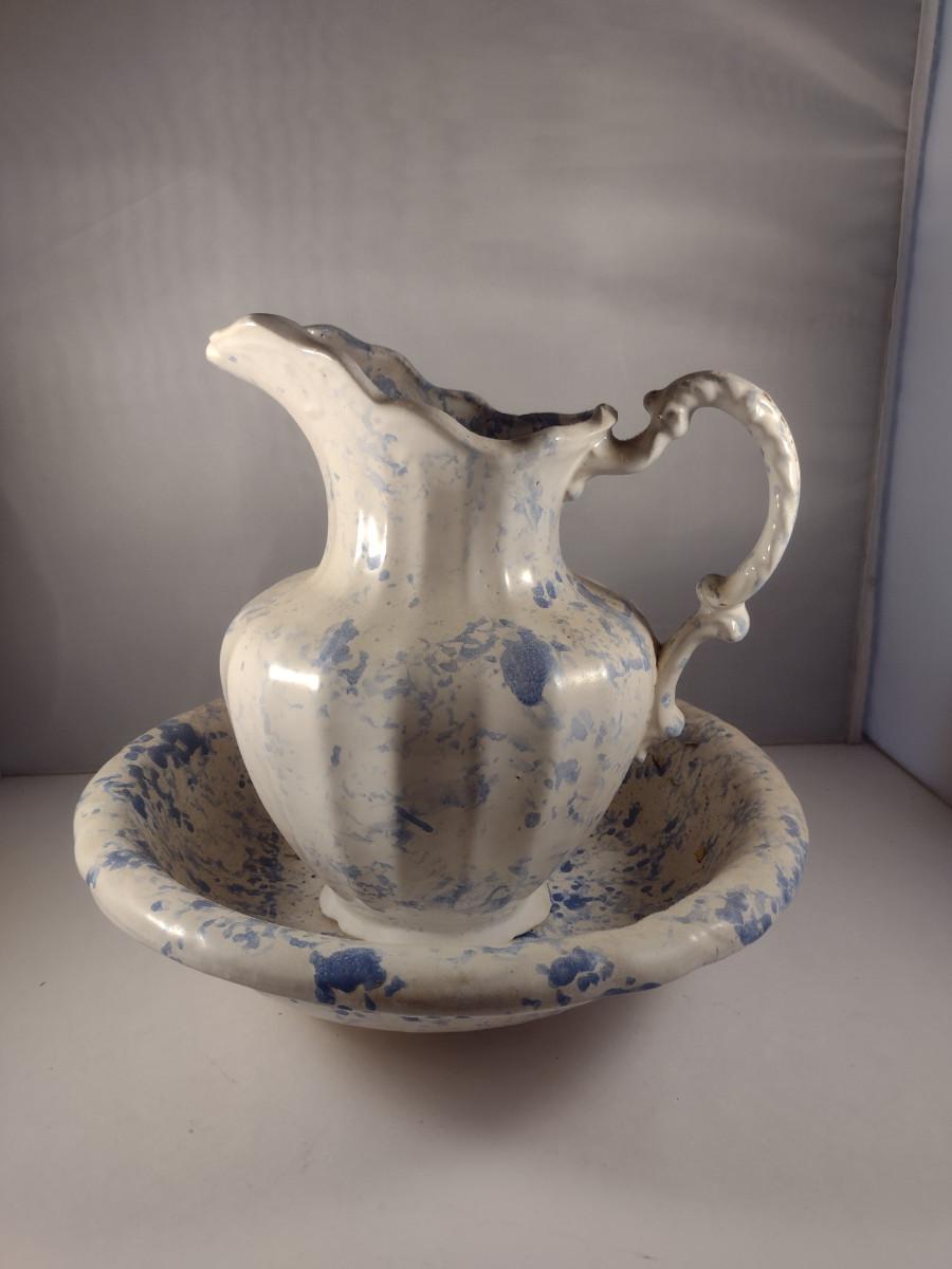 Ceramic Pitcher and Basin. Please see all pictures- pitcher has small chip on spout, base has small line that is not a crack, but is a flaw in the finish.