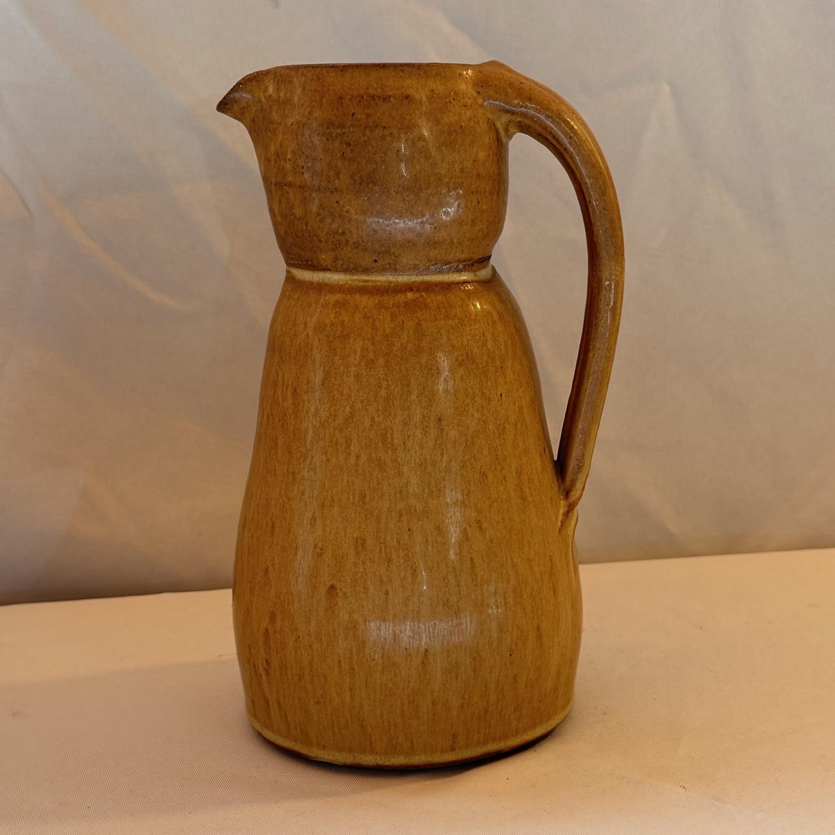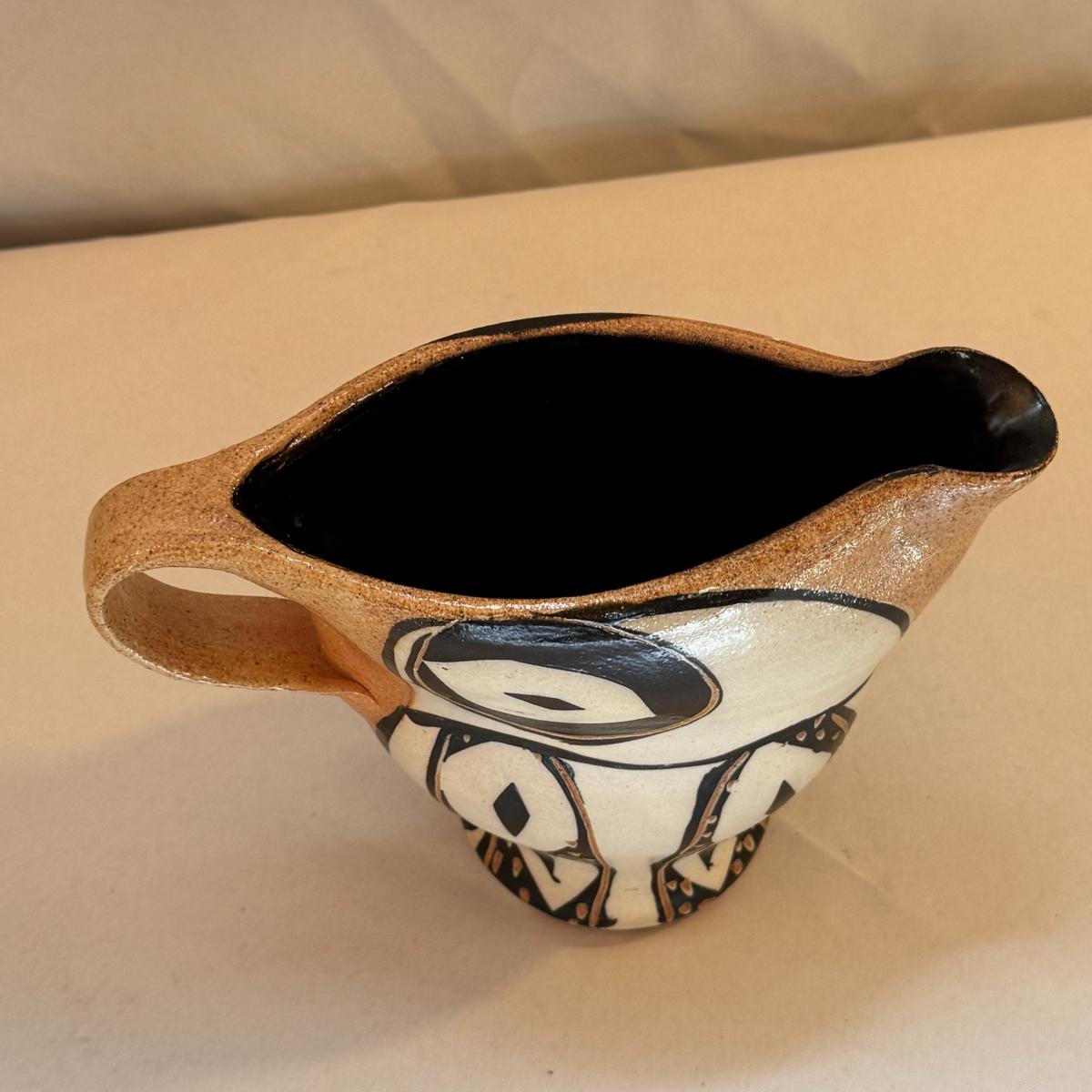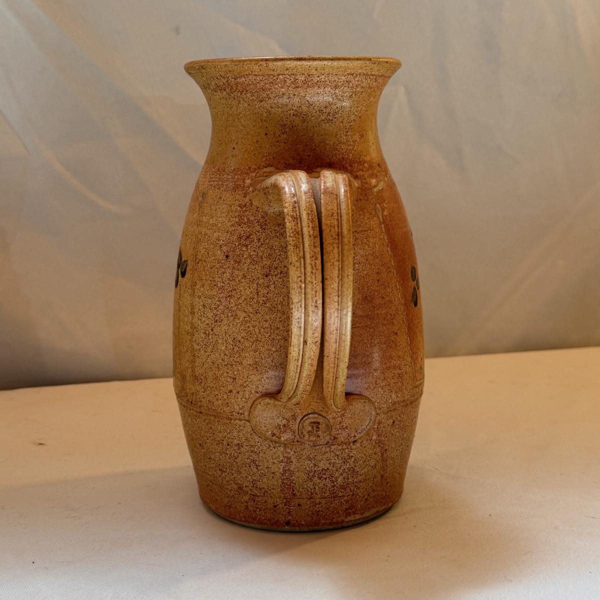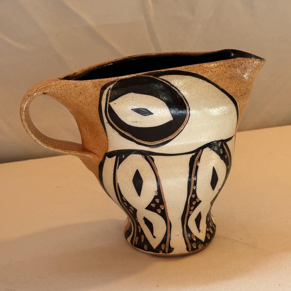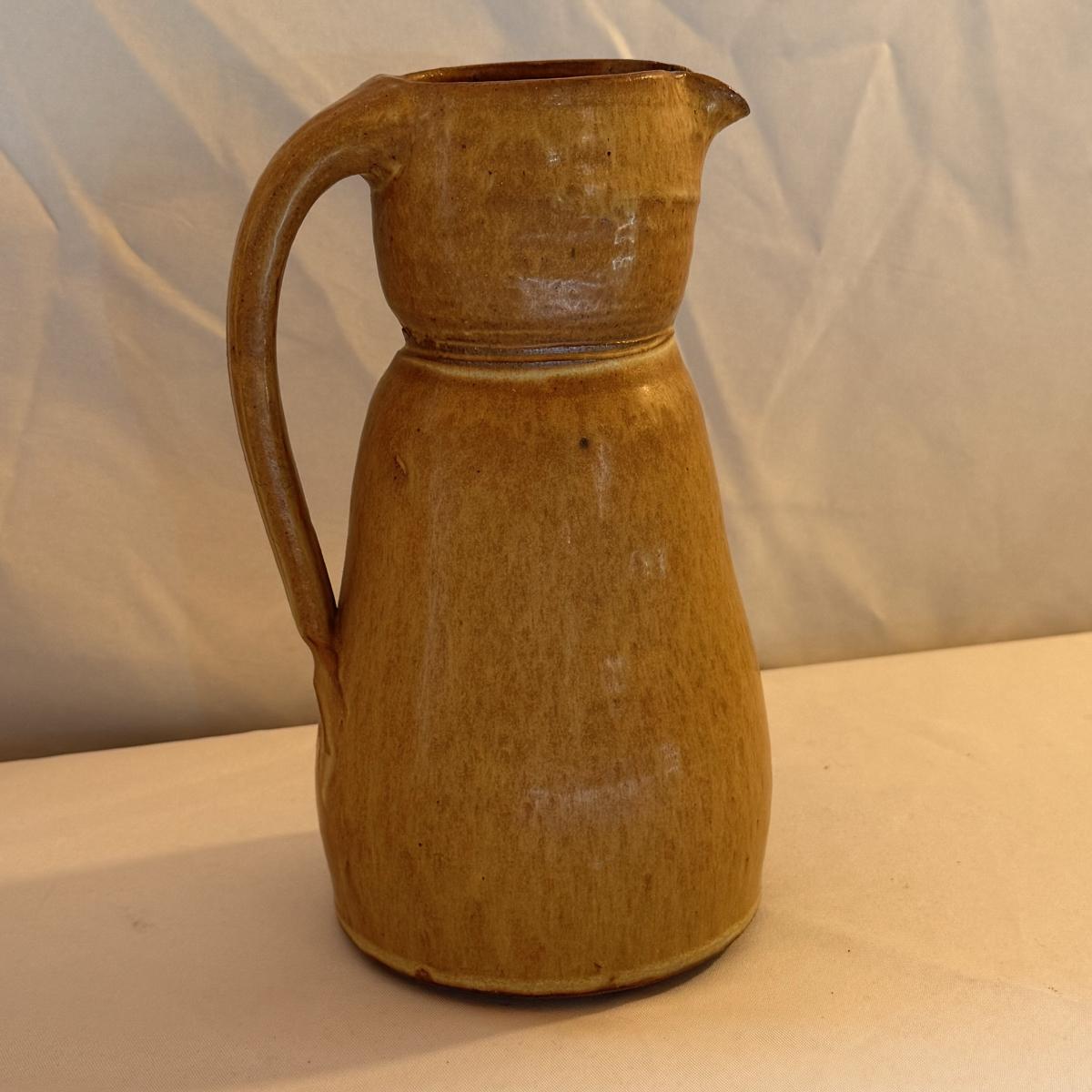 This lot includes three ceramic pitchers (one is marked), one ceramic dish/trinket holder, and one ceramic basket with three pockets. The largest piece is the tan ceramic pitcher that measures 6” x 3” x 10”H. This measurement includes the handle. There is a small crack on the back of the ceramic dish - see picture included. Shipping available.