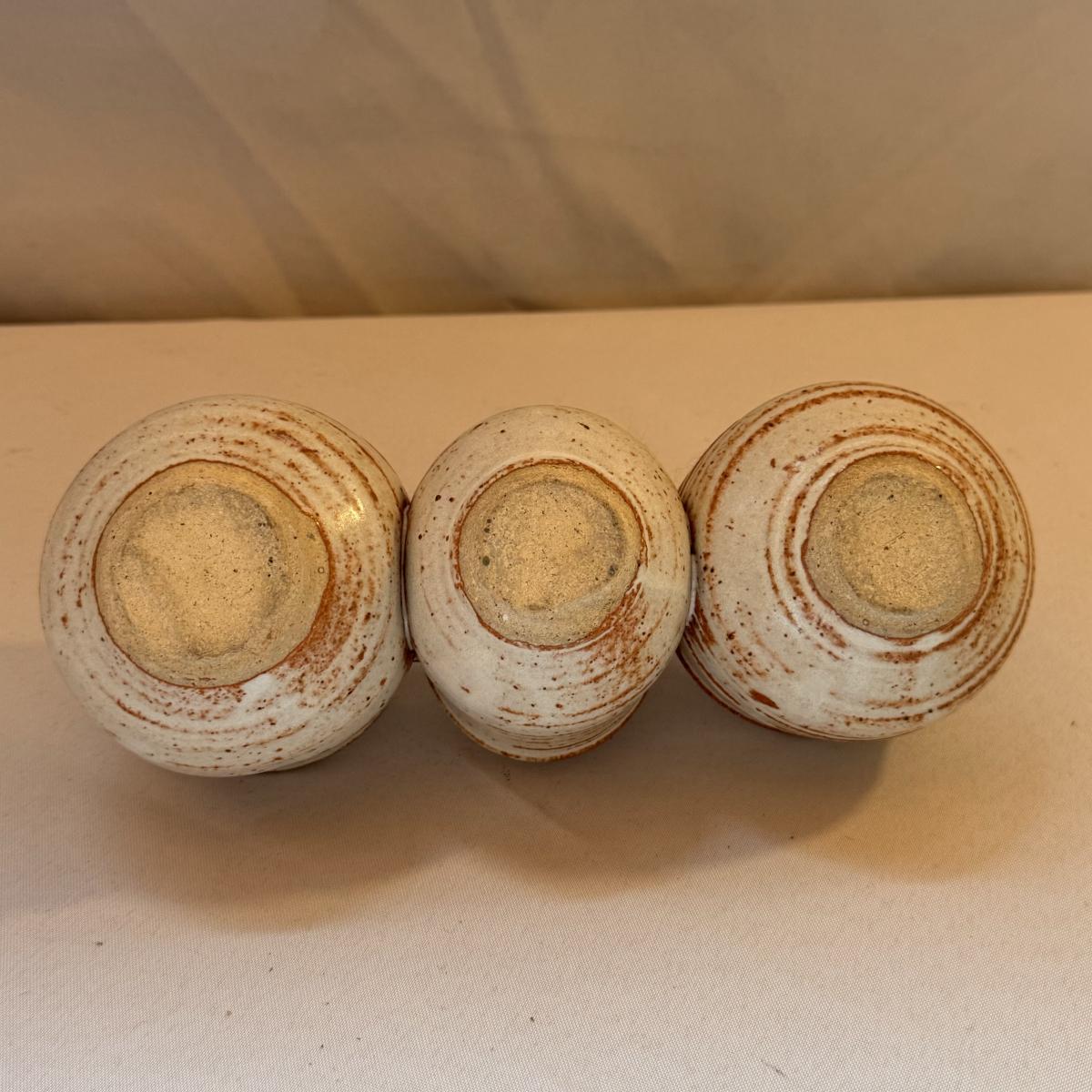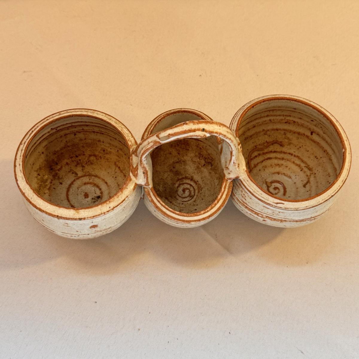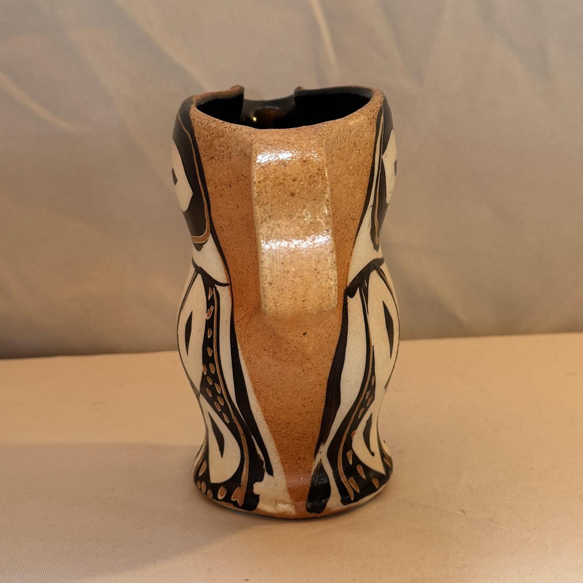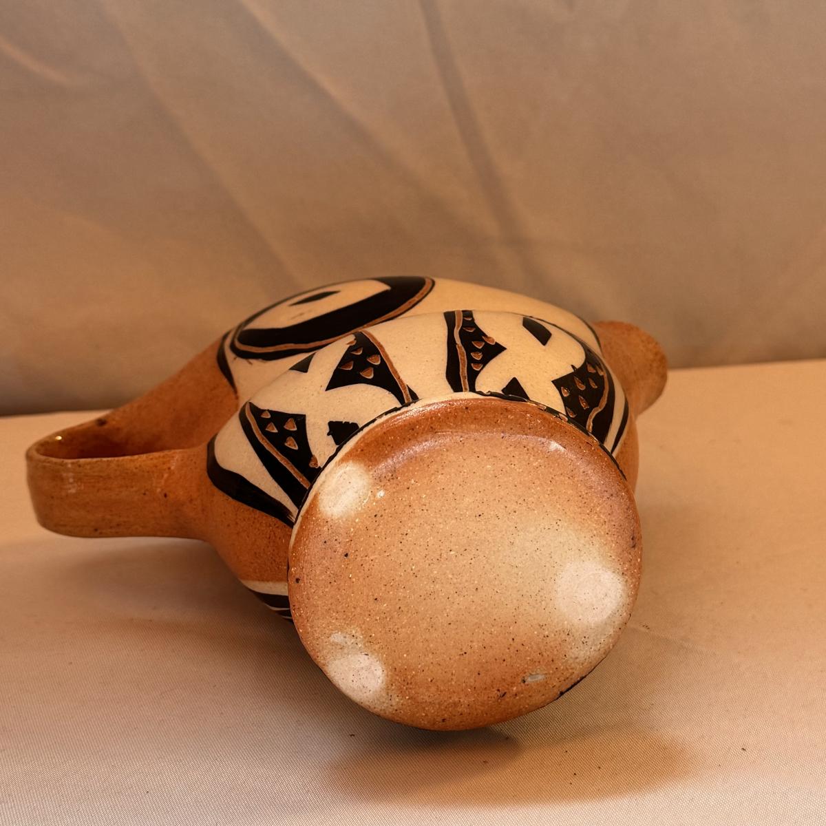 This lot includes three ceramic pitchers (one is marked), one ceramic dish/trinket holder, and one ceramic basket with three pockets. The largest piece is the tan ceramic pitcher that measures 6” x 3” x 10”H. This measurement includes the handle. There is a small crack on the back of the ceramic dish - see picture included. Shipping available.