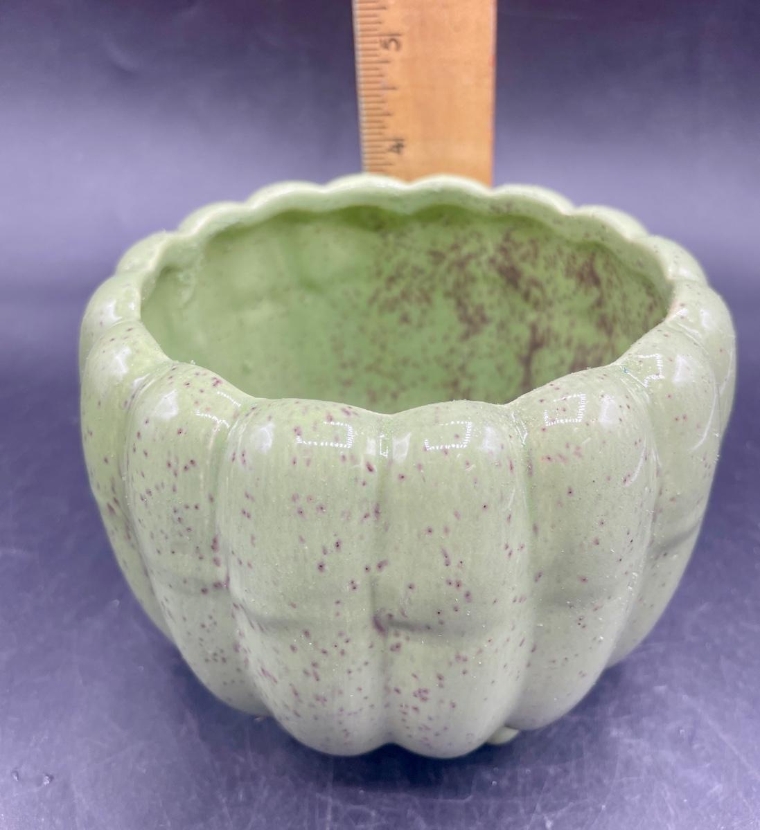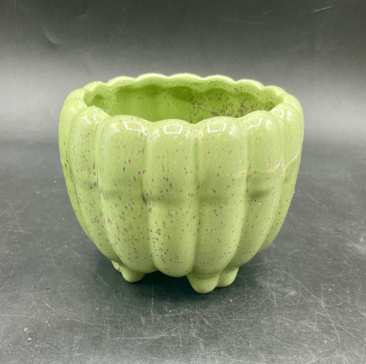 Vintage California Pottery Green Speckled Ceramic Footed Planter