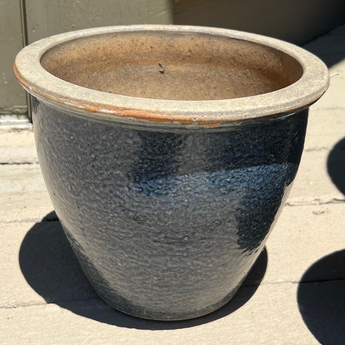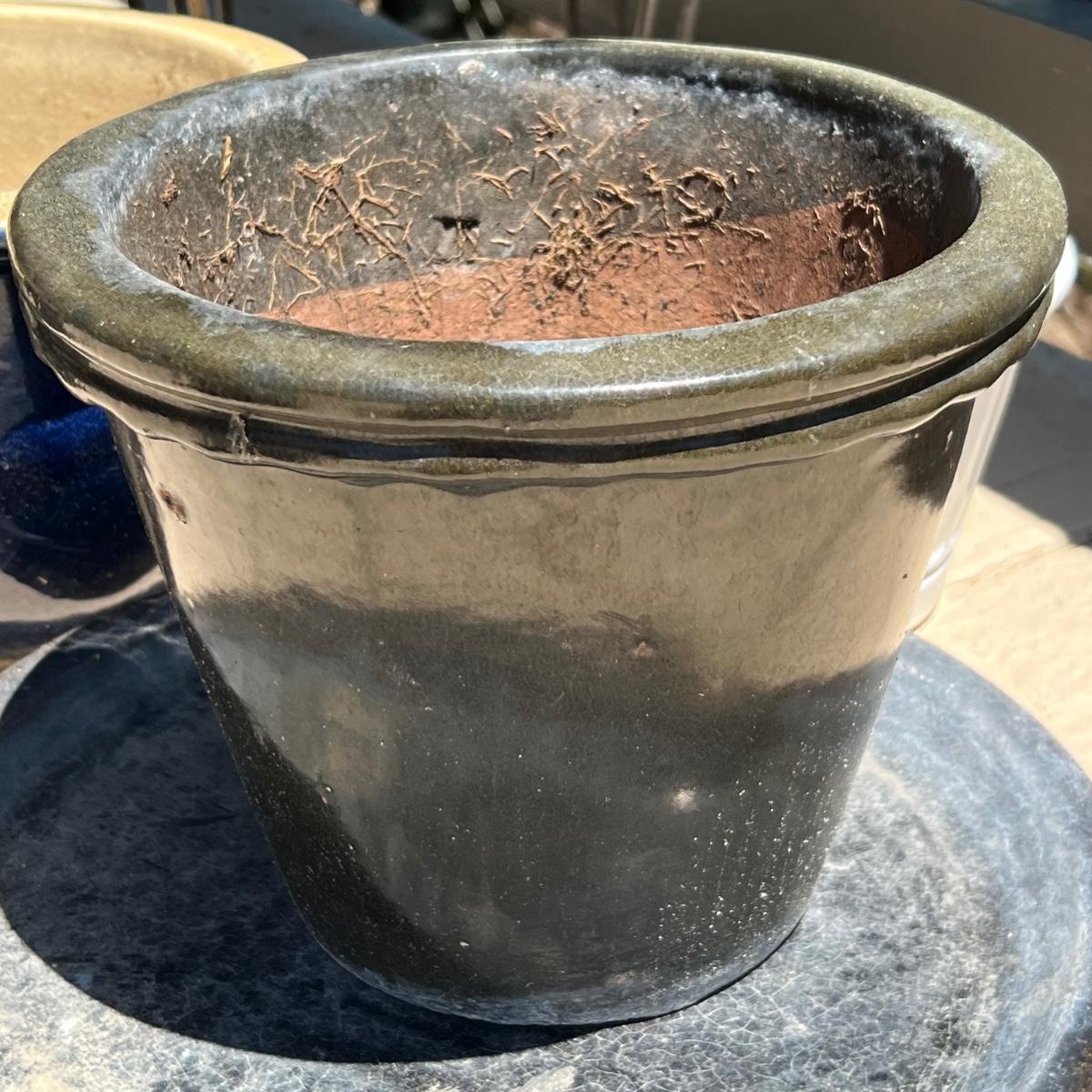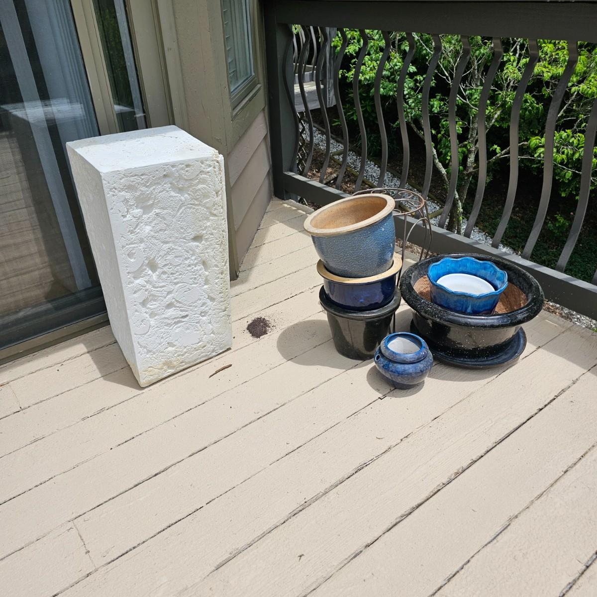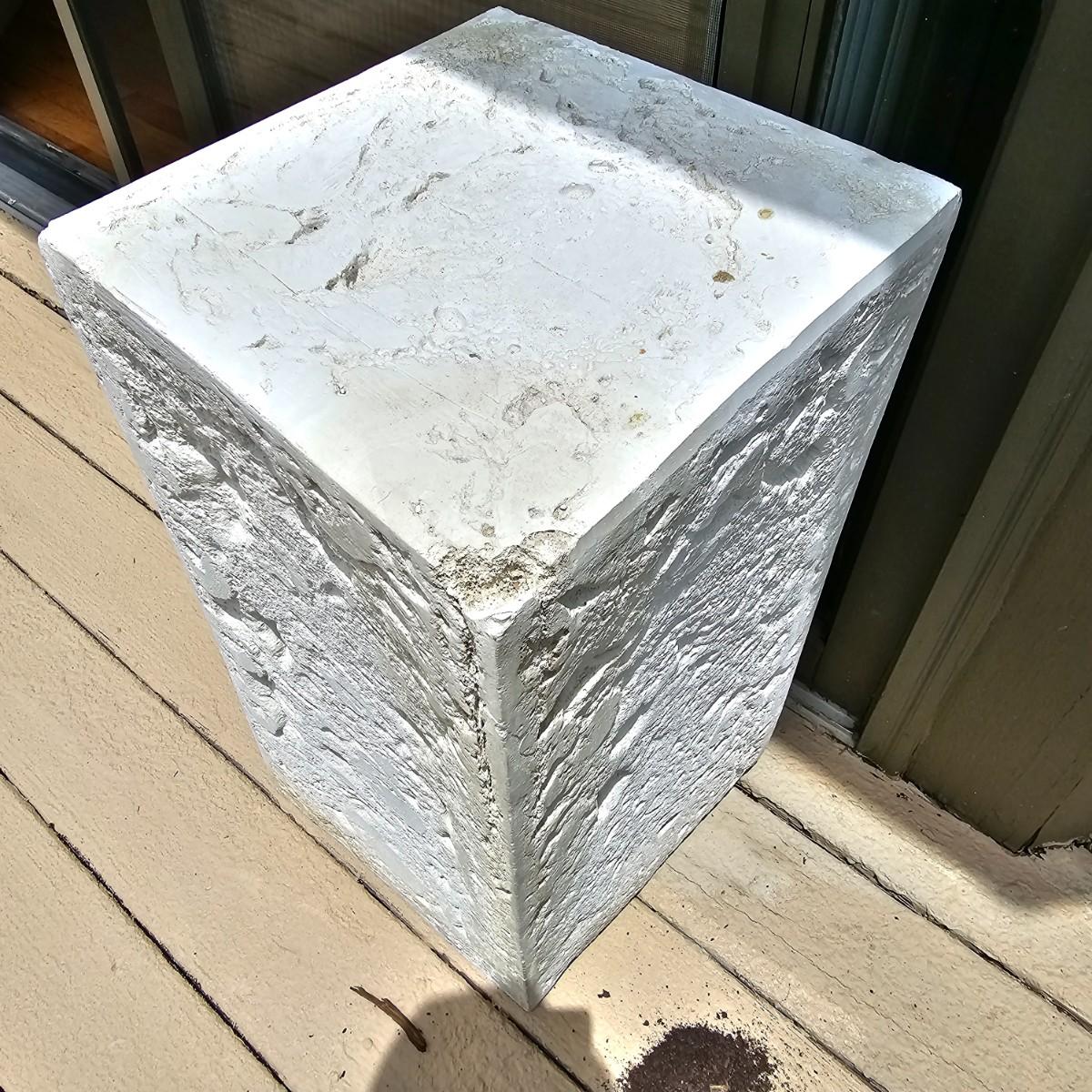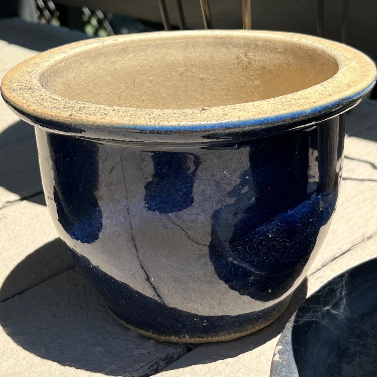 A nice assortment of ceramic plants pots in this lot with the largest, the black pot, measuring 15” D x 7” H. The metal pot stand measures 9” D x 15” H. The white square piece is 12" x 12" x 24"H and is a plaster mold..