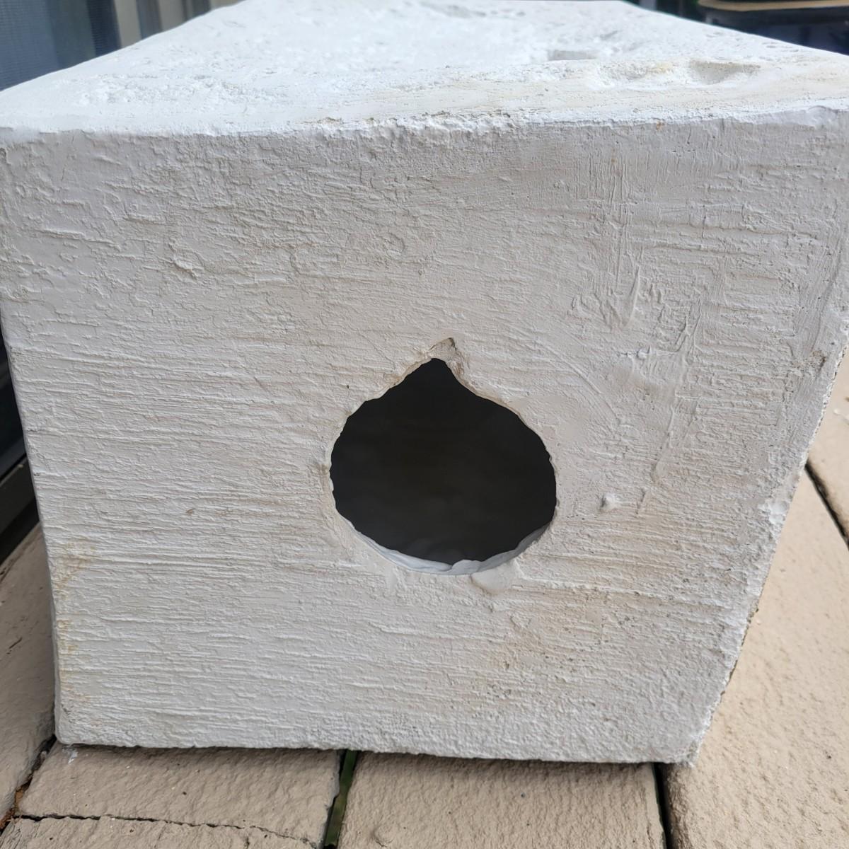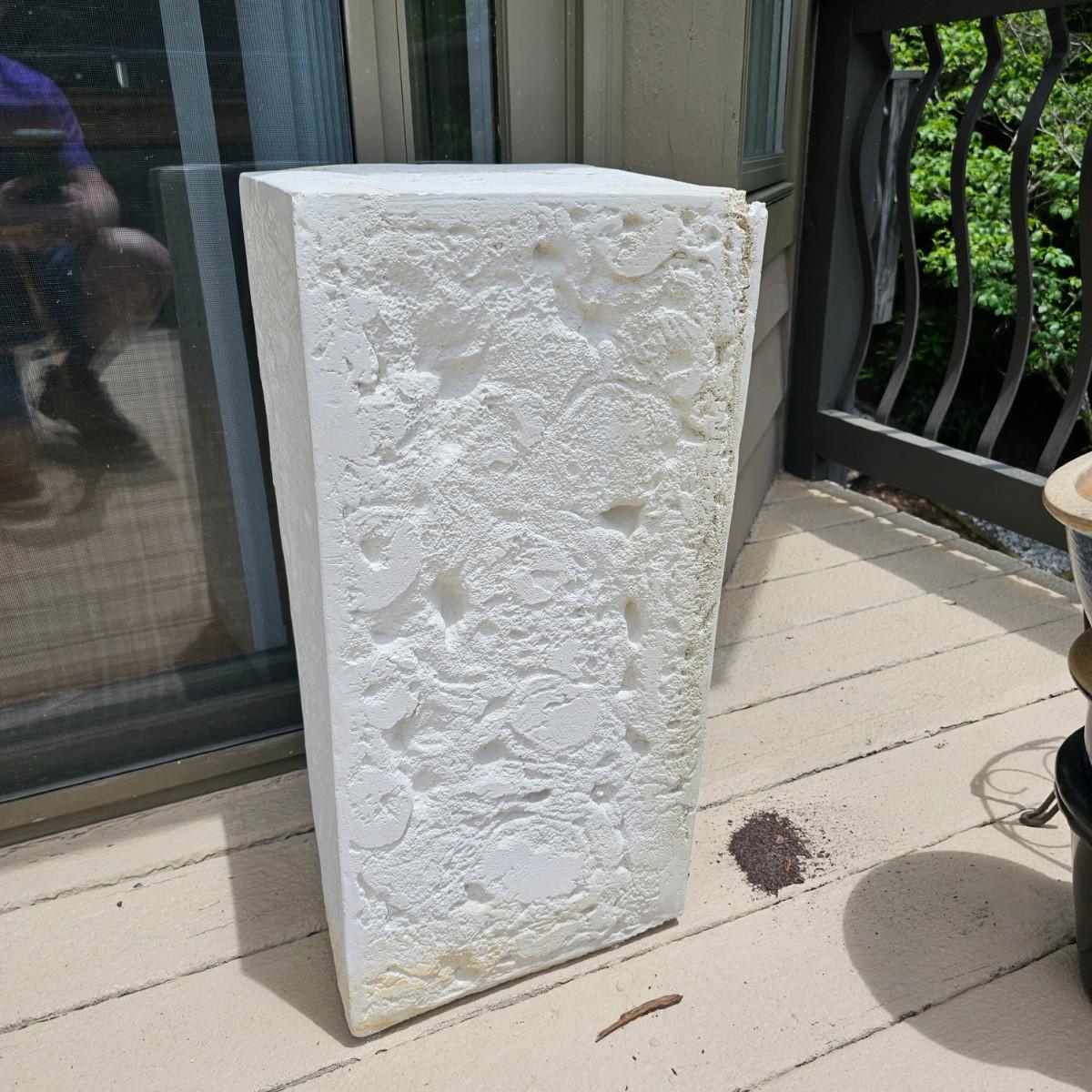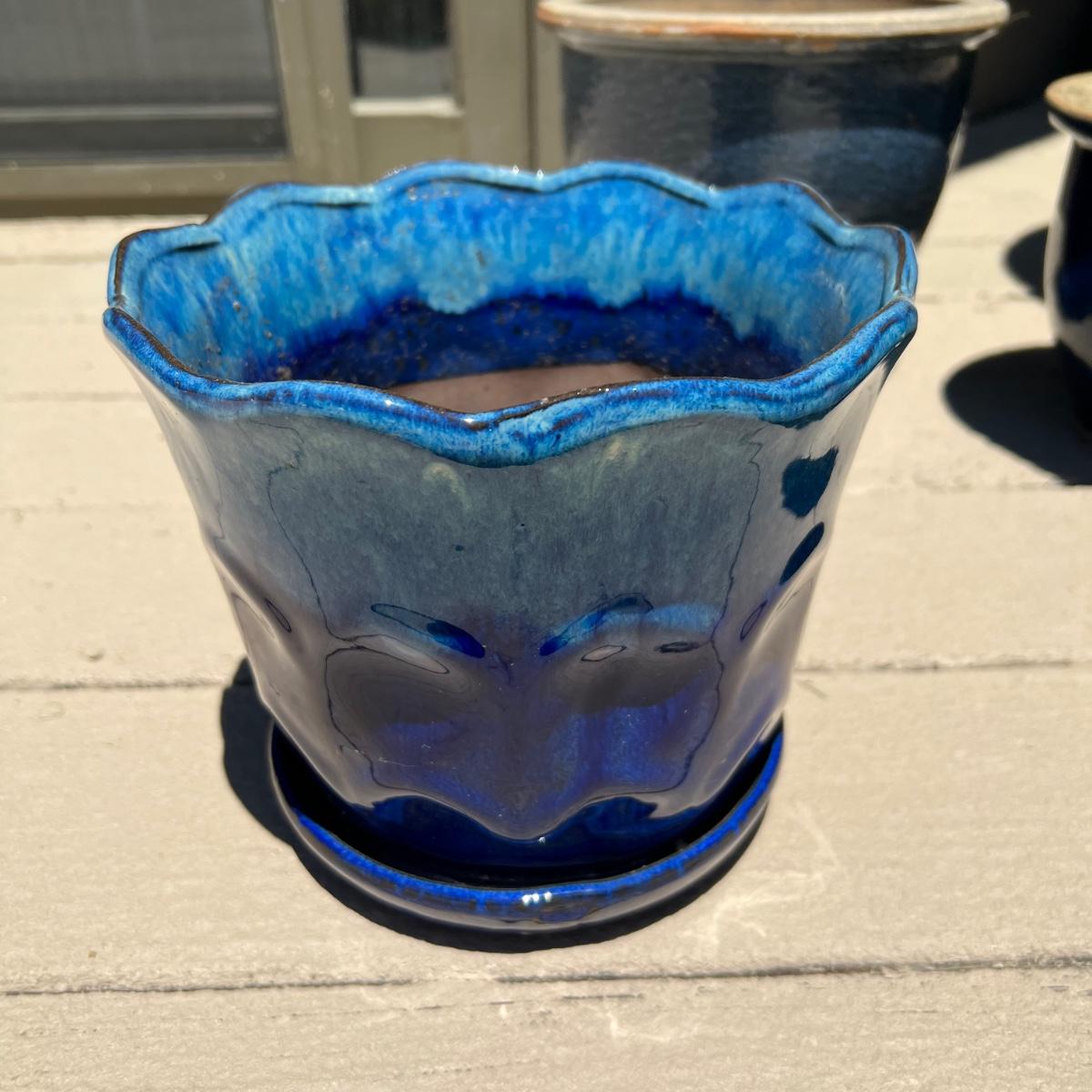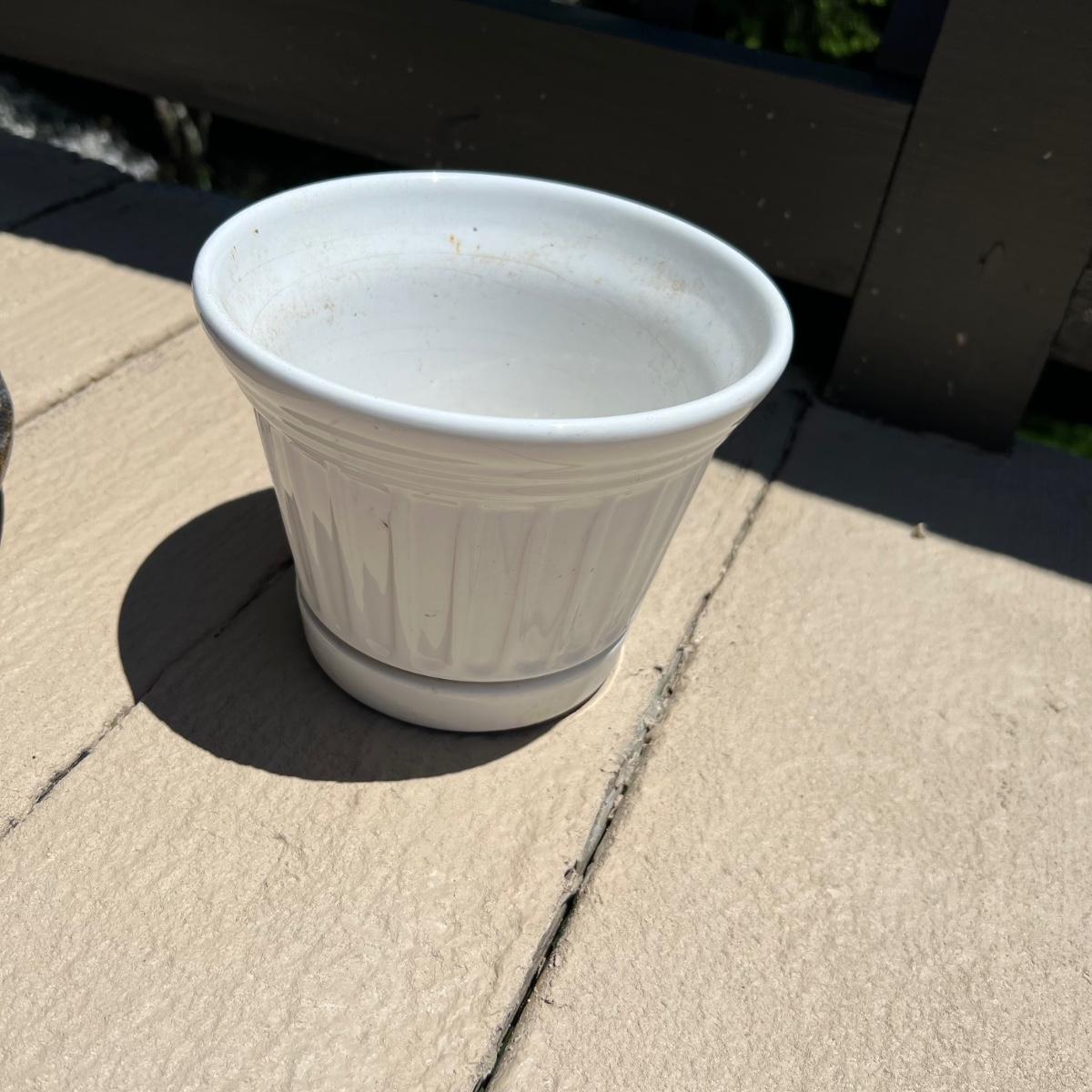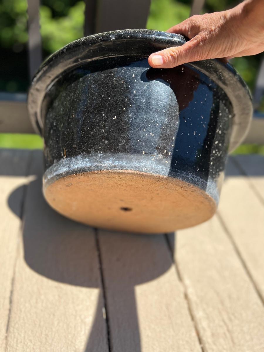 A nice assortment of ceramic plants pots in this lot with the largest, the black pot, measuring 15” D x 7” H. The metal pot stand measures 9” D x 15” H. The white square piece is 12" x 12" x 24"H and is a plaster mold..