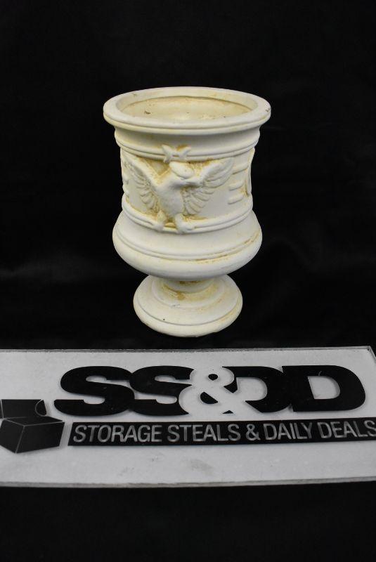 Ceramic Planter, Bird Design, 8" tall, White/Cream Color
