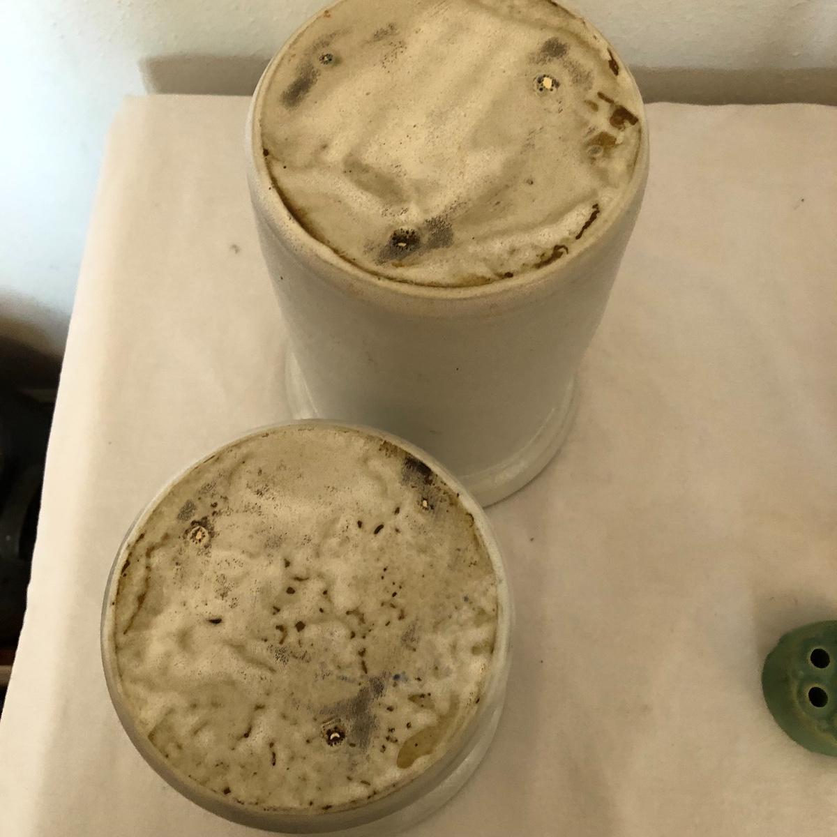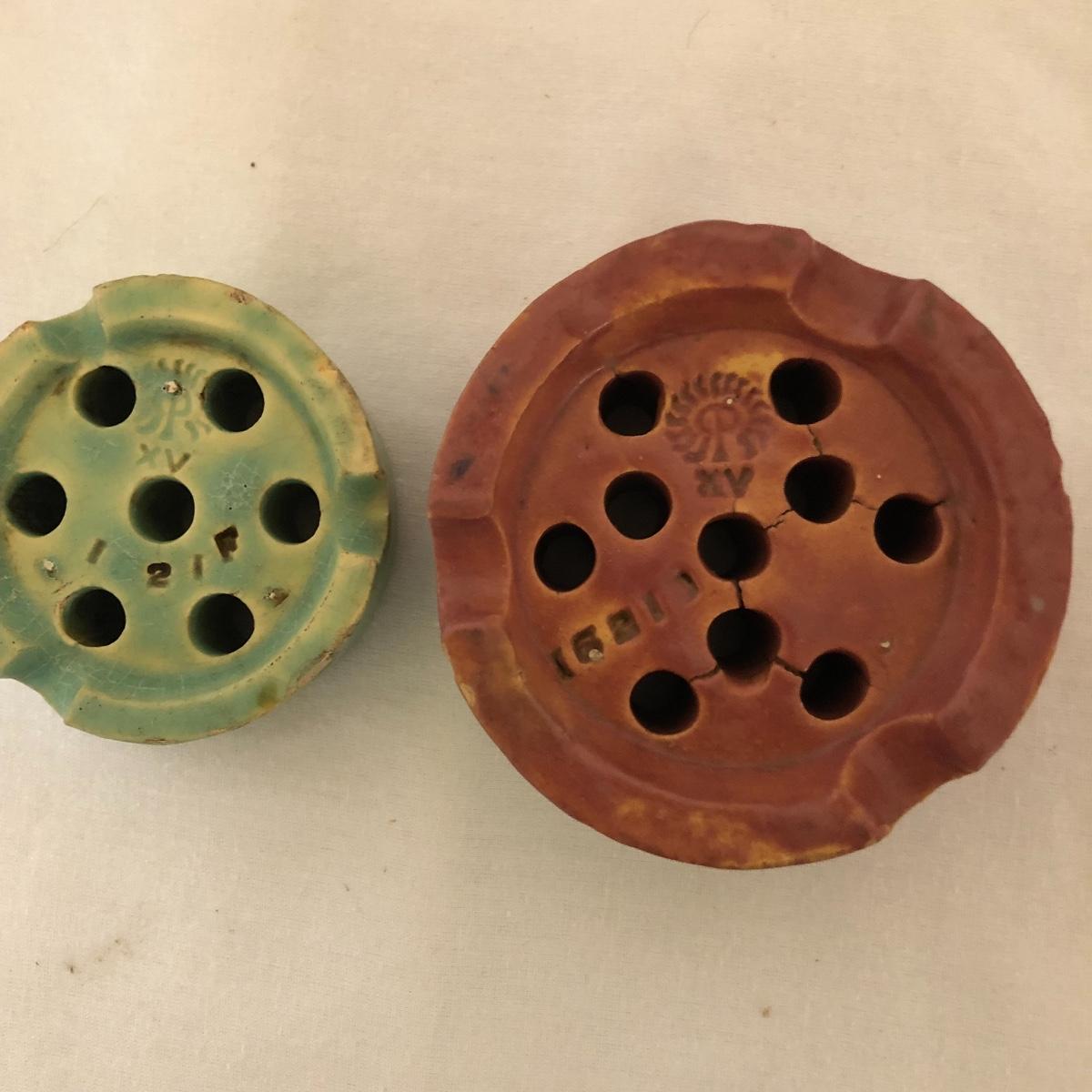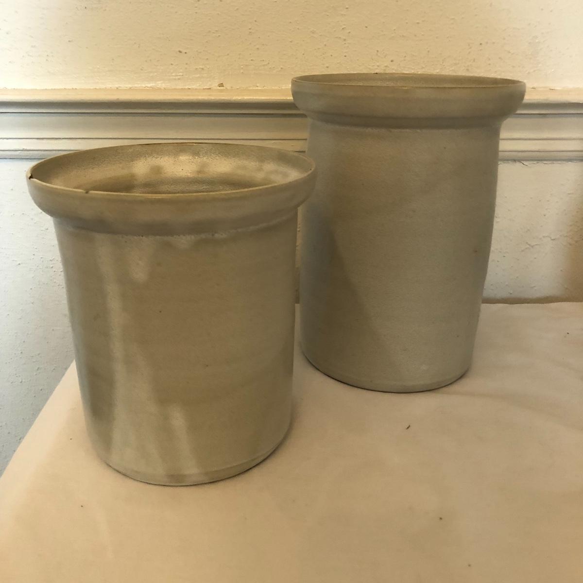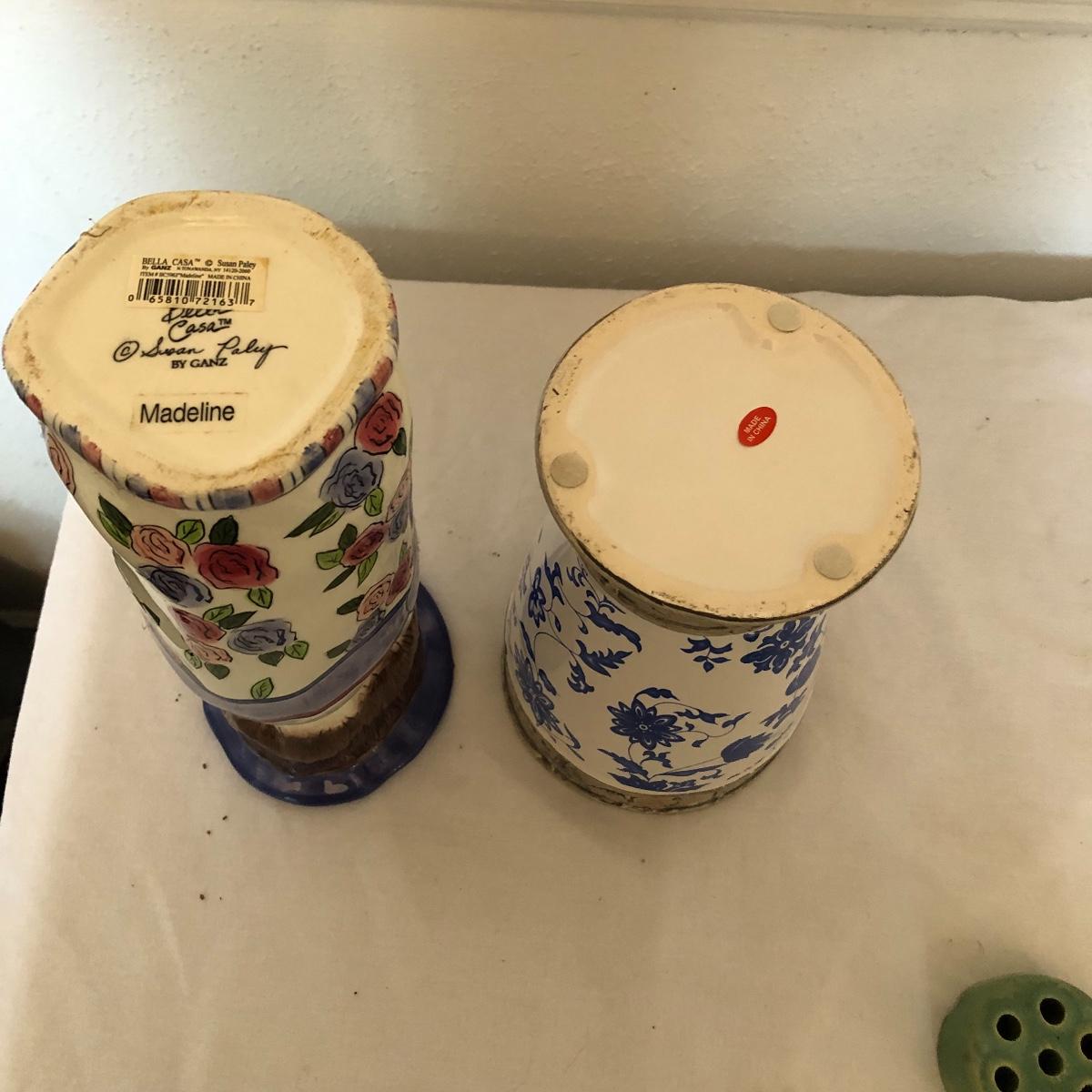 Six ceramic planters plus a hanging ceramic flower holder and two ceramic stem holders make up this lot. Tallest pot measures 6.5” x 9”.
