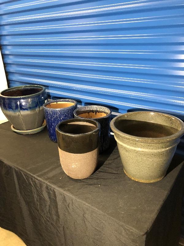 Collection of Blues and Grays Ceramic pots. Indoor/Outdoor