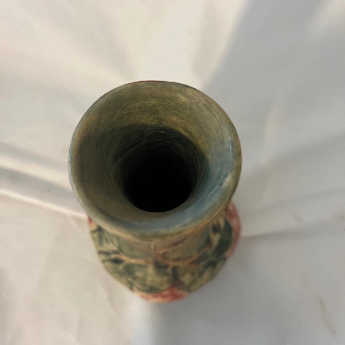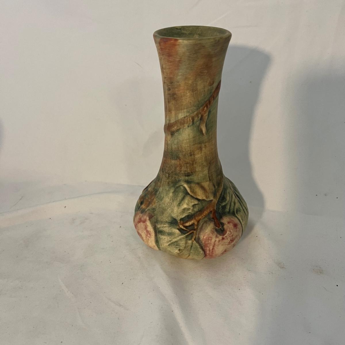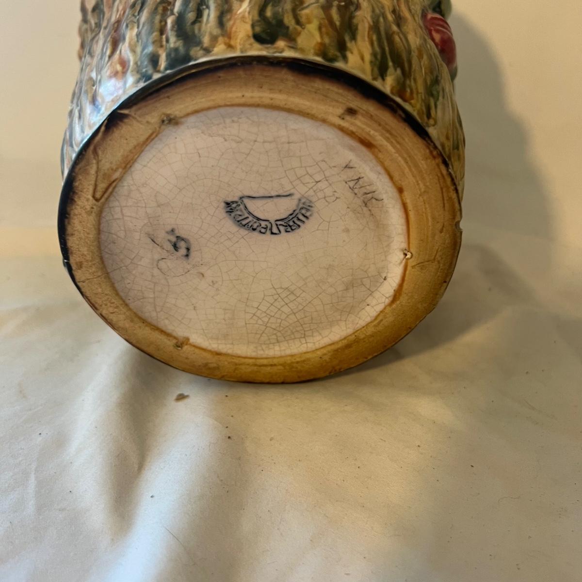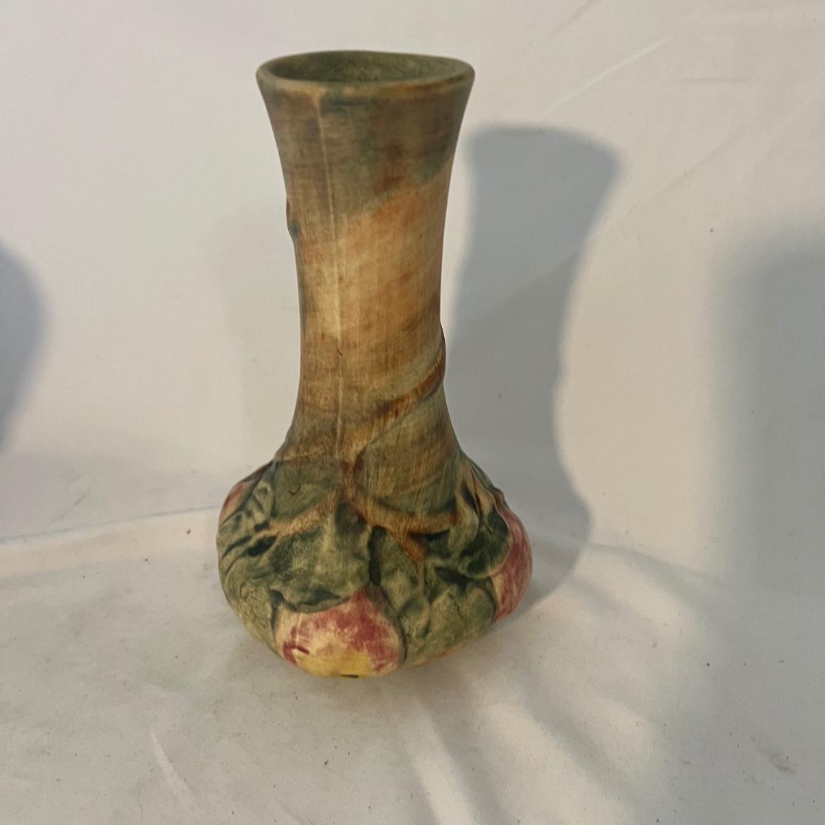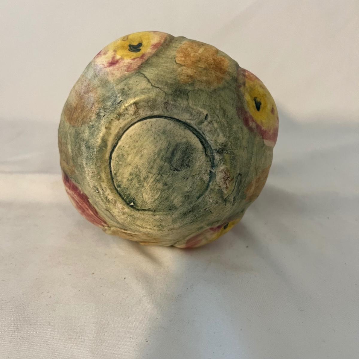 Ceramic pot and matching vase. The pot measures 6.5”D x 6”H. The vase measures approximately 4”D x 7”H.