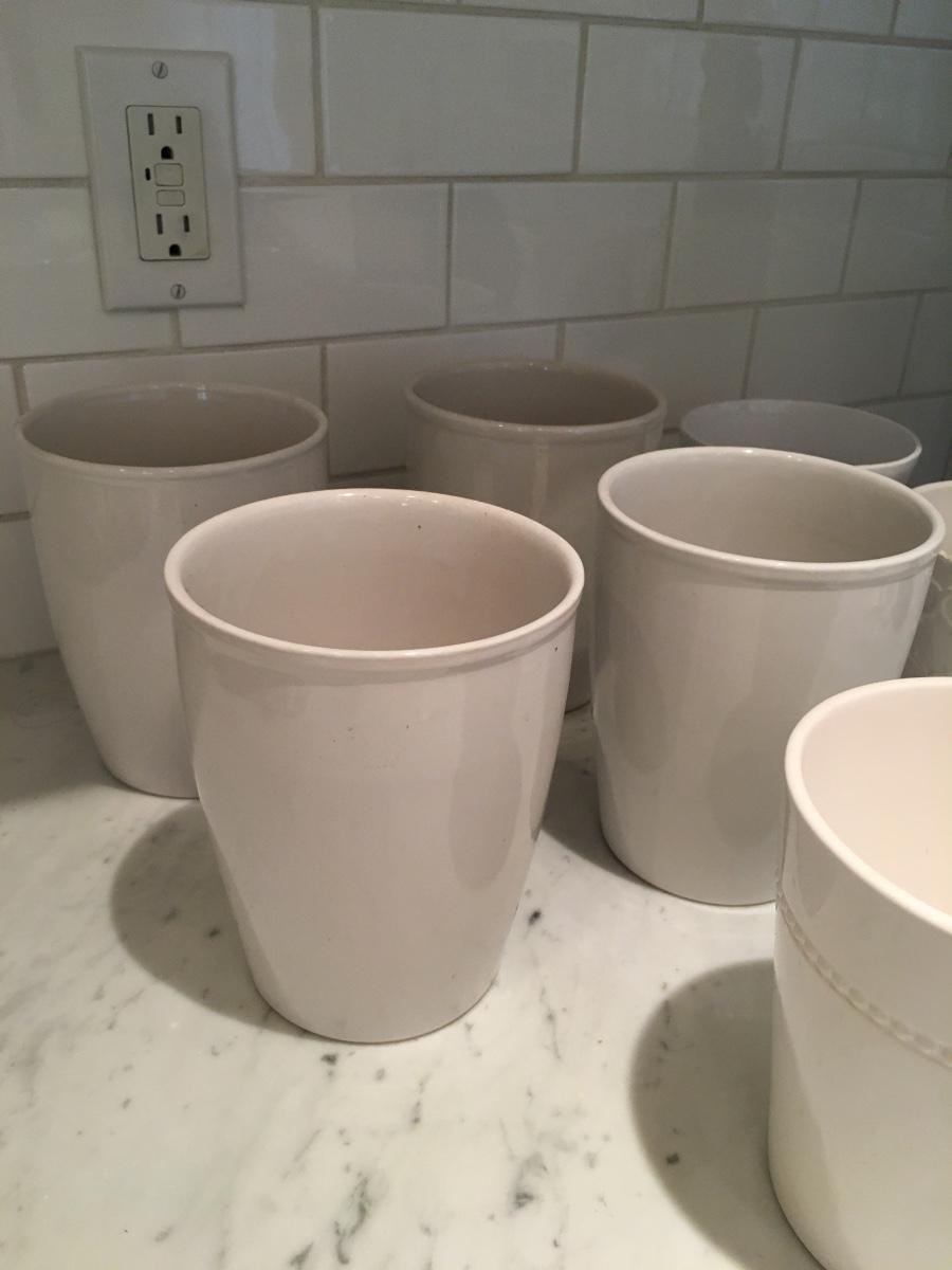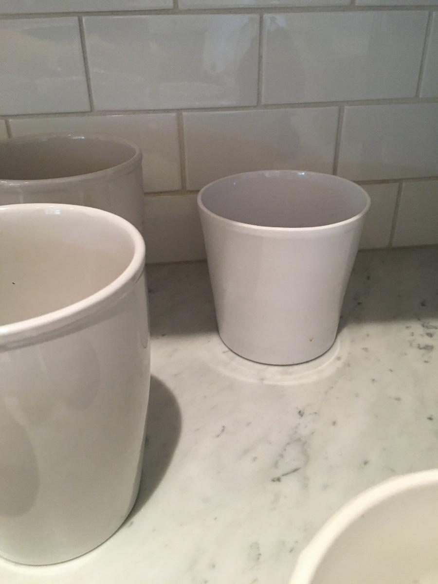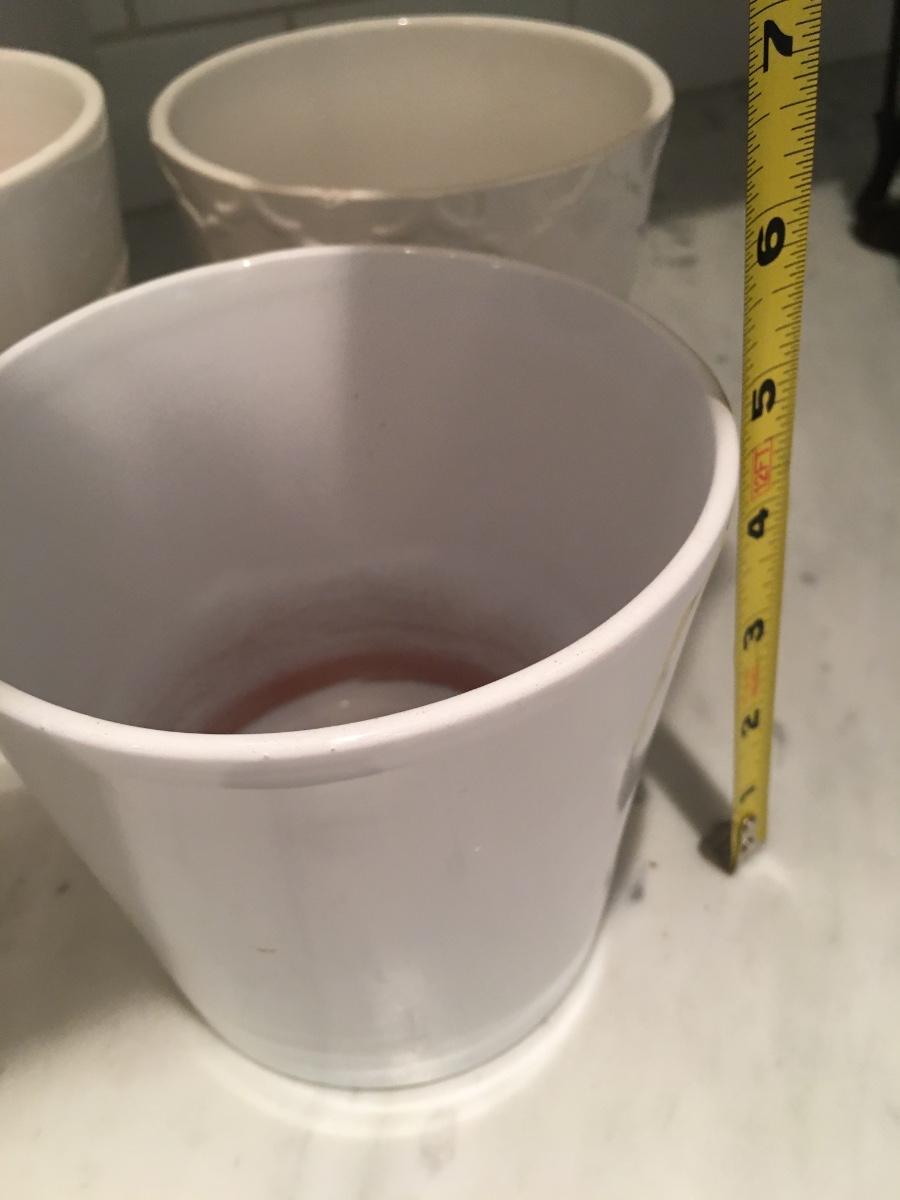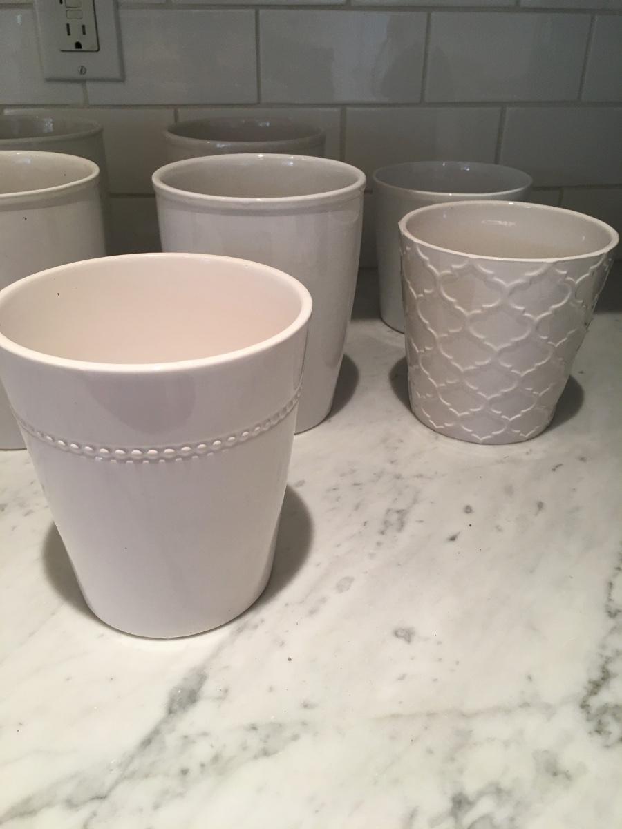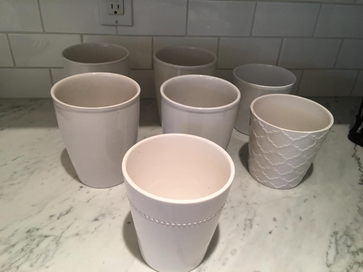 Collection of 7 ceramic garden pots , 4 matching 3 with different patterns.