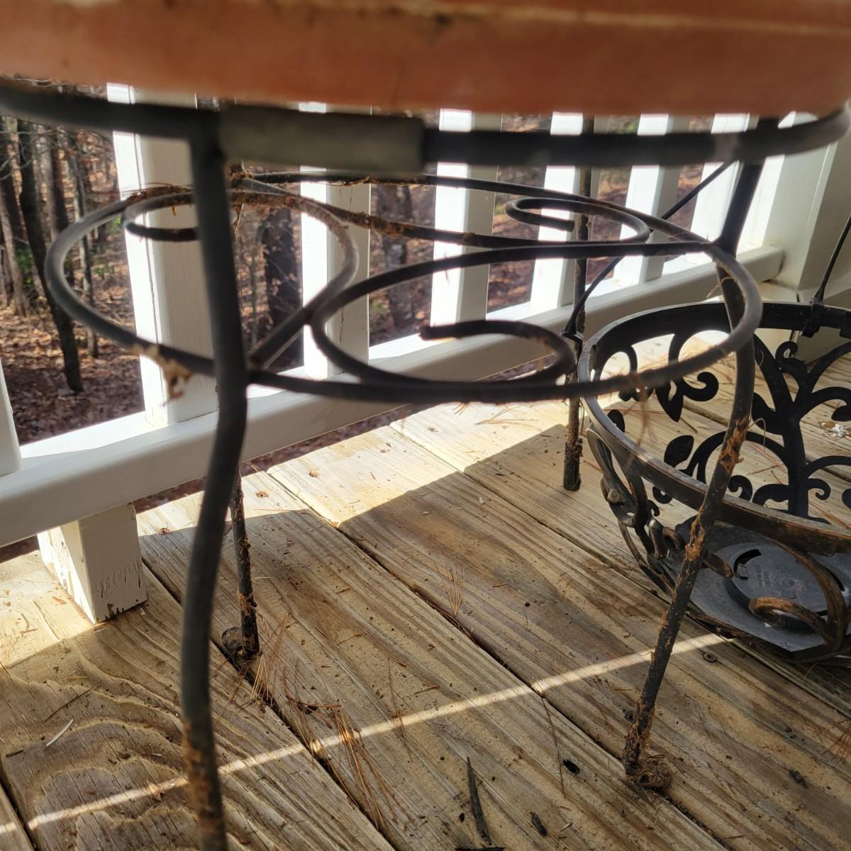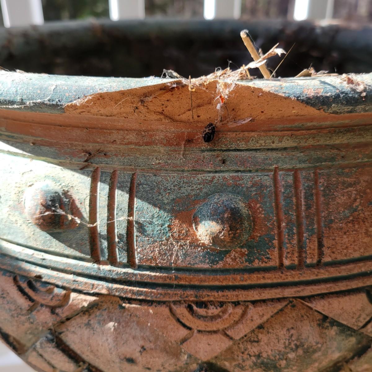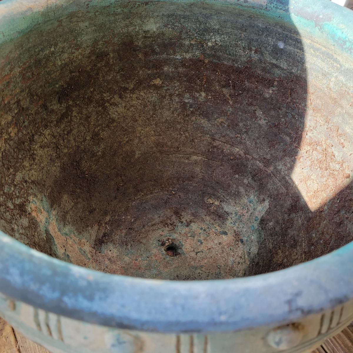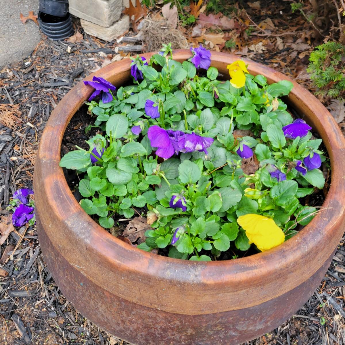 An assortment of ceramic pots, hanging planters, stands and other items in good condition with some damage. Two large ceramic planters that include terracotta bases and metal plants stands. One pot does have a piece missing from its lip. Pots measure approximately 16" x 12". Two smaller ceramic, glazed Pots are included. A pair of hand gardening tools, three metal wall mounted hanger, seven hanging planters that are a Mix of plastic and metal, two bags of bamboo plant stakes and two shepards hooks, one of which has a clamp base for mounting to a deck rail. The large flower pot with pansies is full of soil and very heavy. It measures approximately 22" x 16" and is a ceramic pot. Local pickup only. Winning bidder must bring assistance to help move and load this item due to its weight and/or size