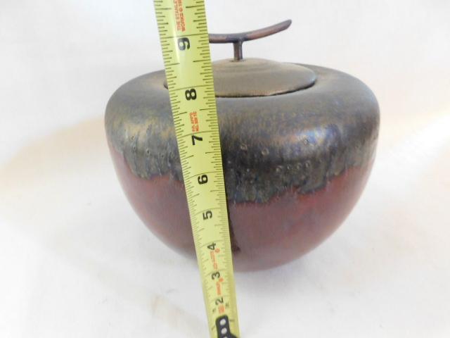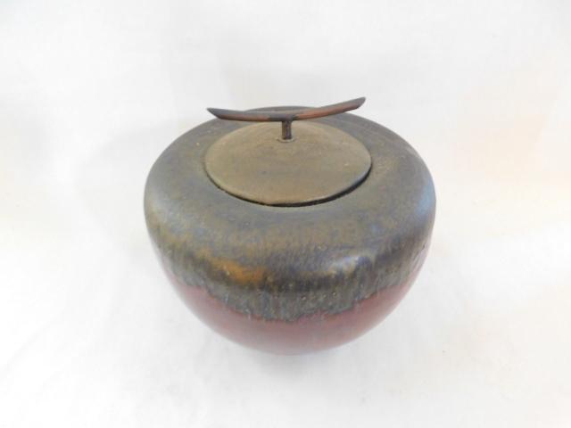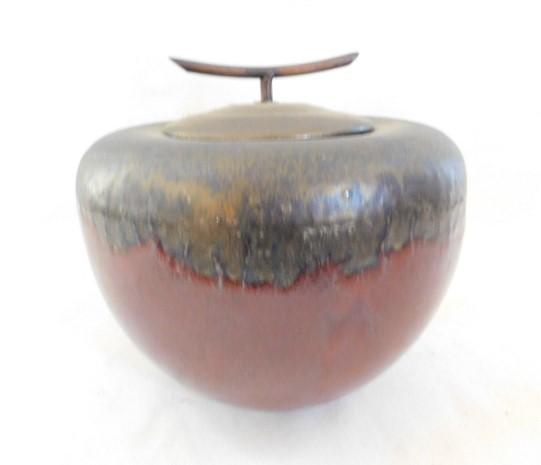 Ceramic Pottery Drip Glaze Finish Lidded Urn 9"x9"