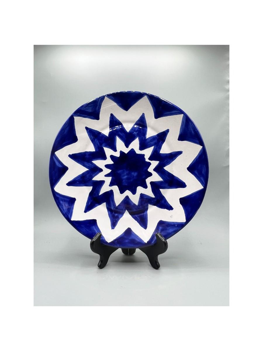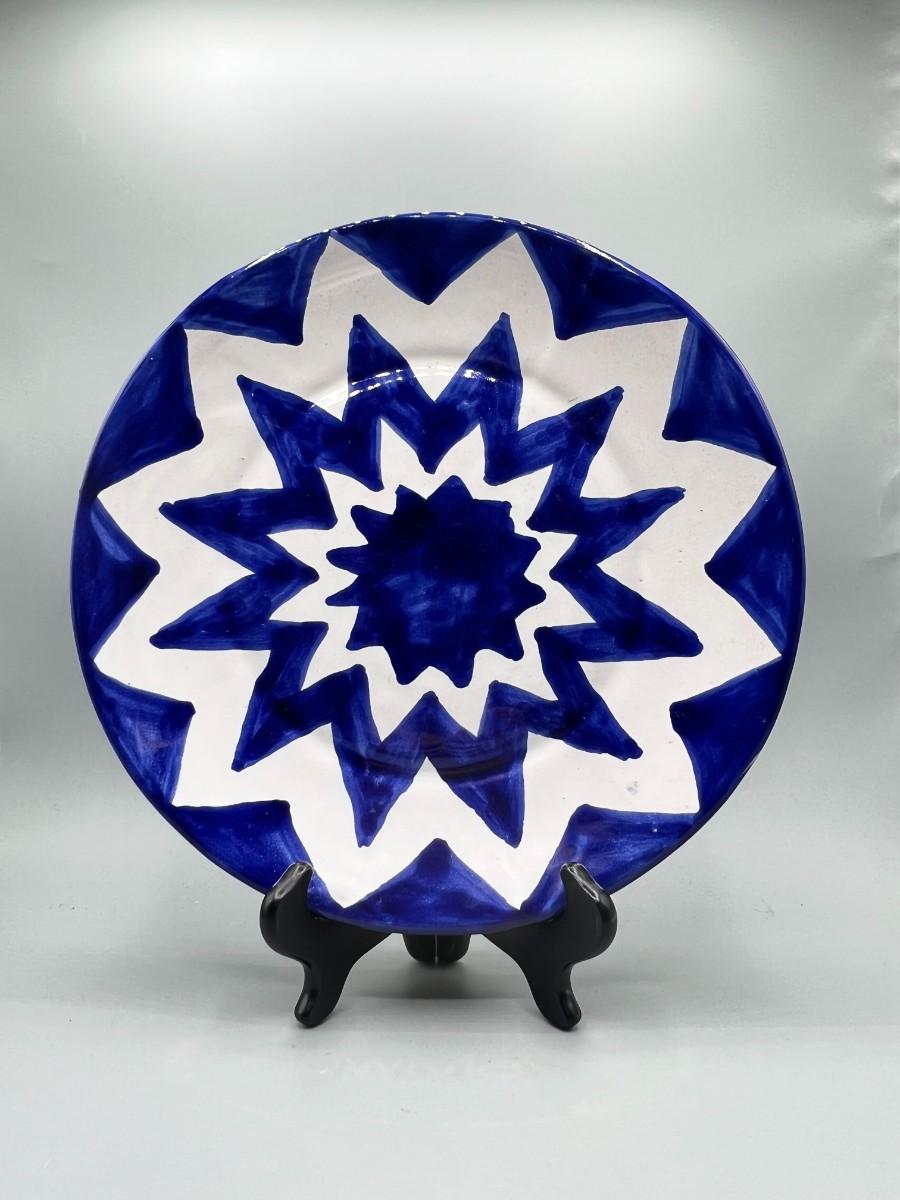 Ceramic Pottery White & Blue Star Pattern Hand Painted Wall Hanging Plate