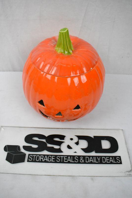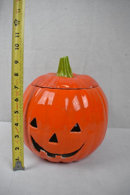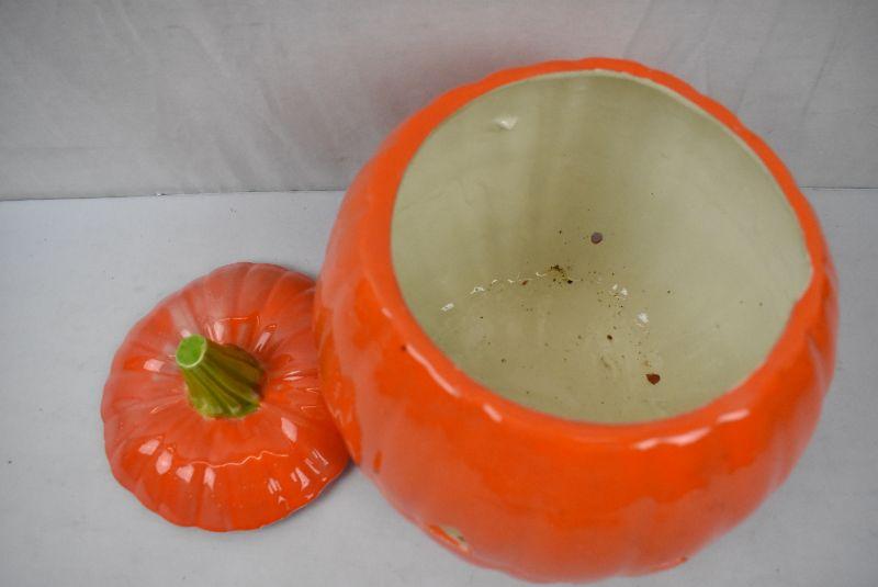 Ceramic Pumpkin Jack-O-Lantern with Lid