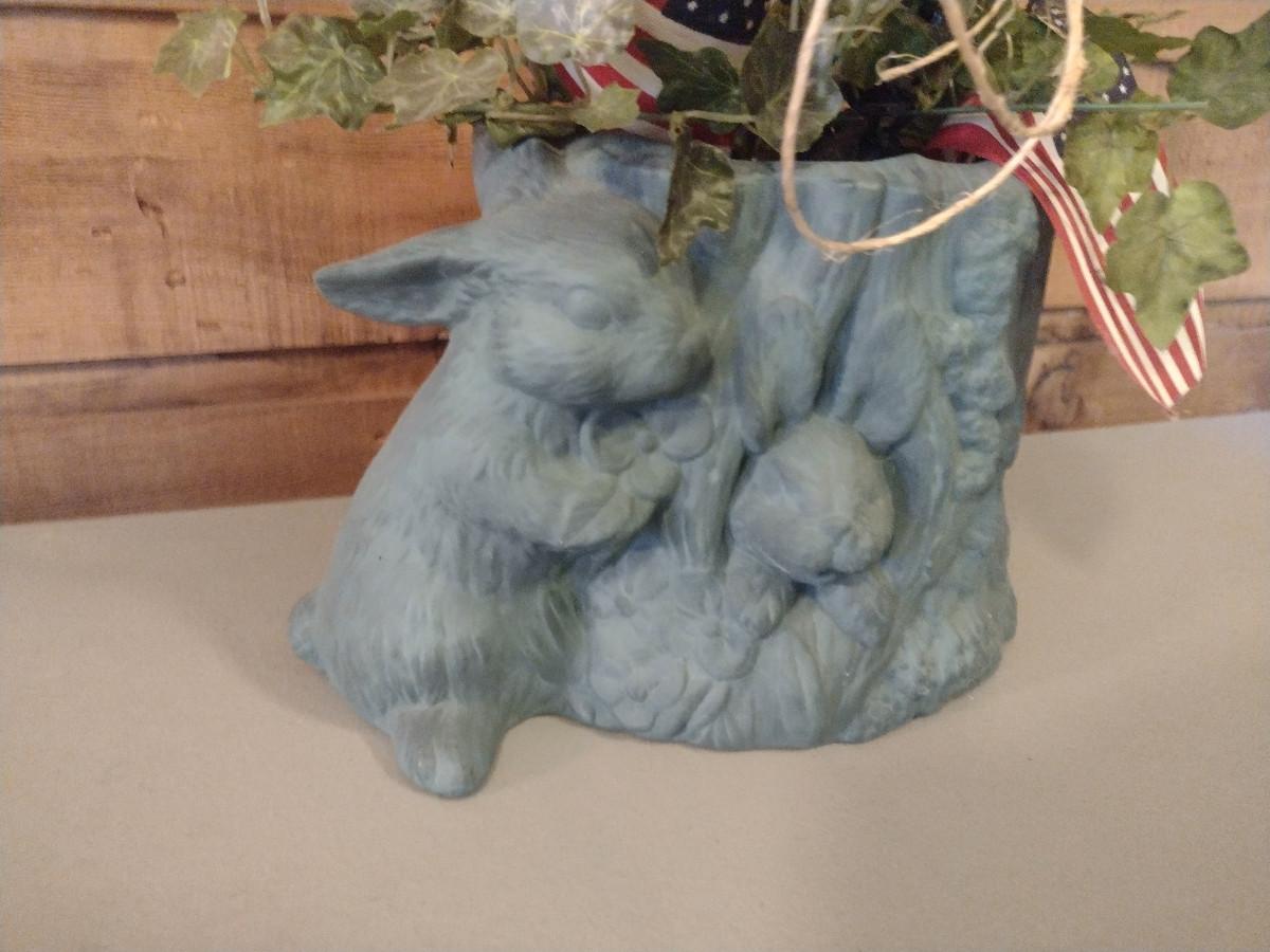 Ceramic Rabbit Design Planter- Approx 10" Wide, 8" Tall.