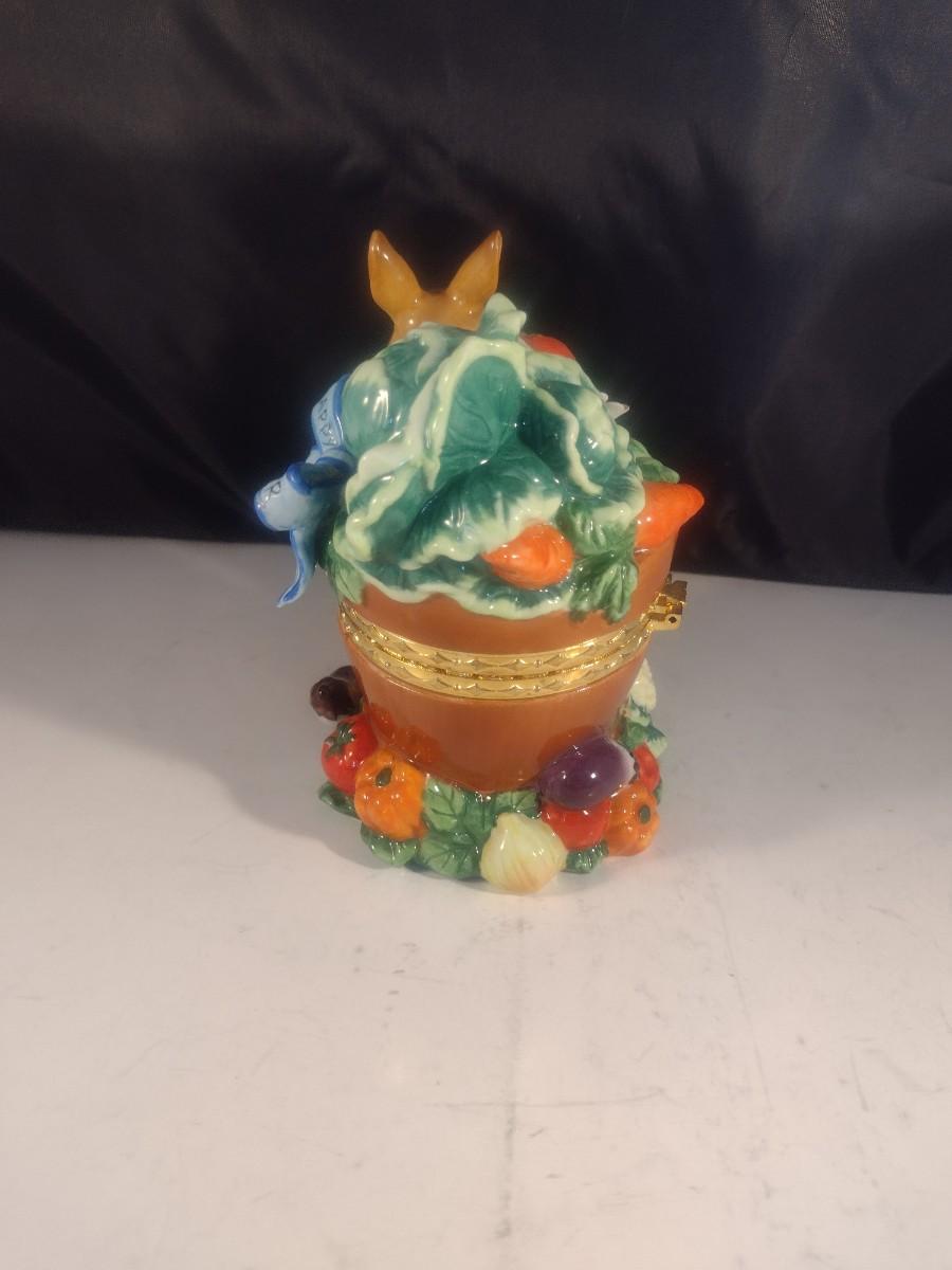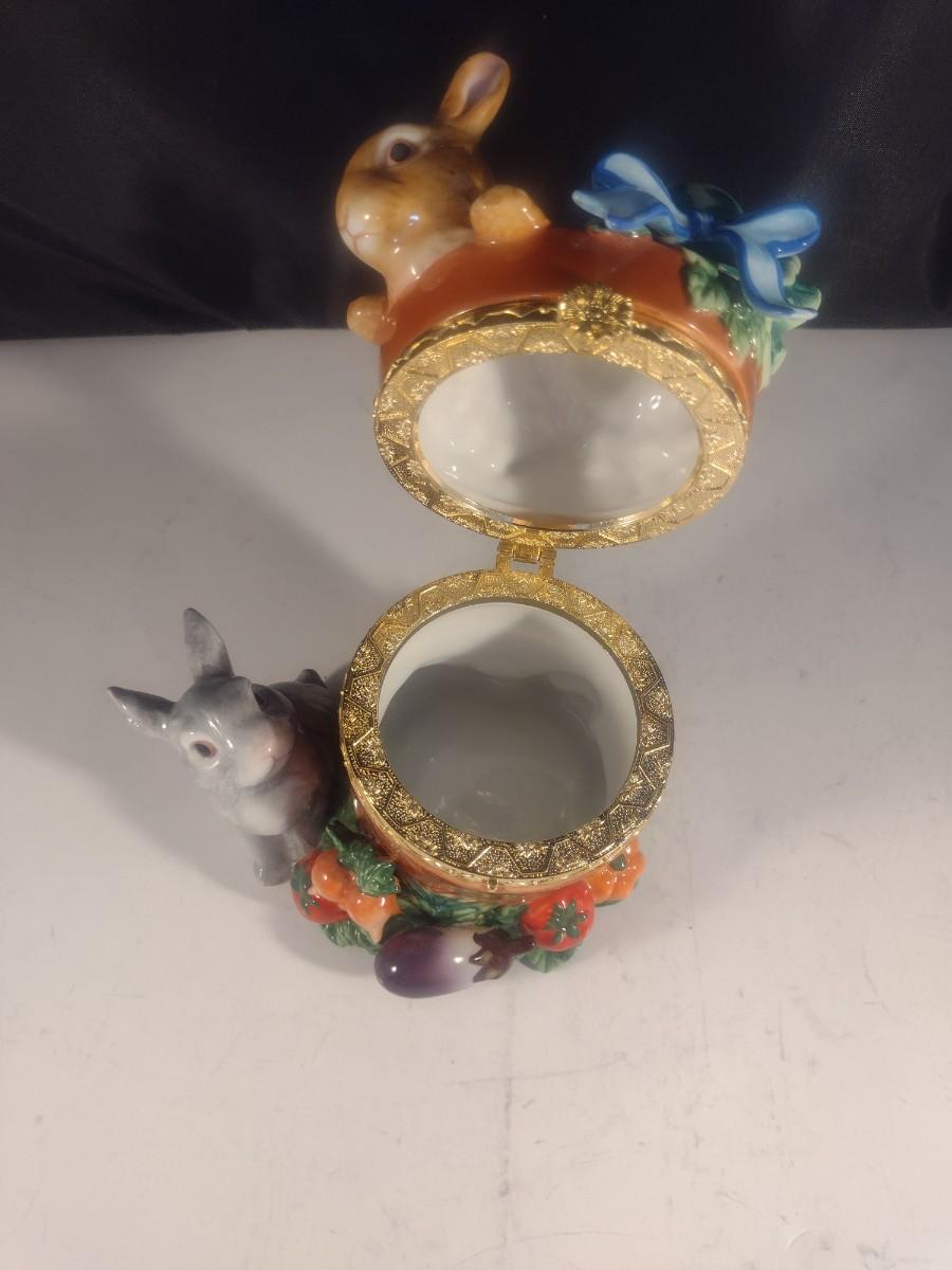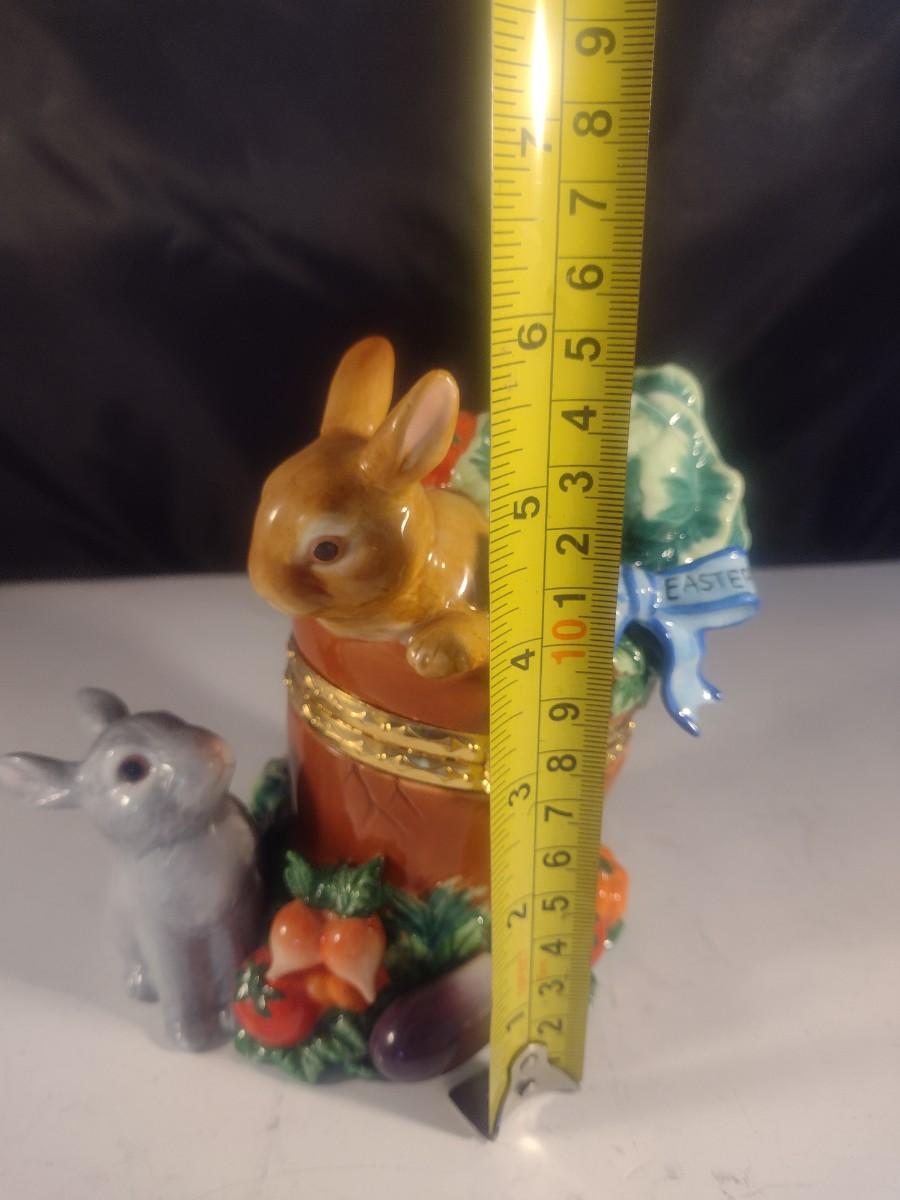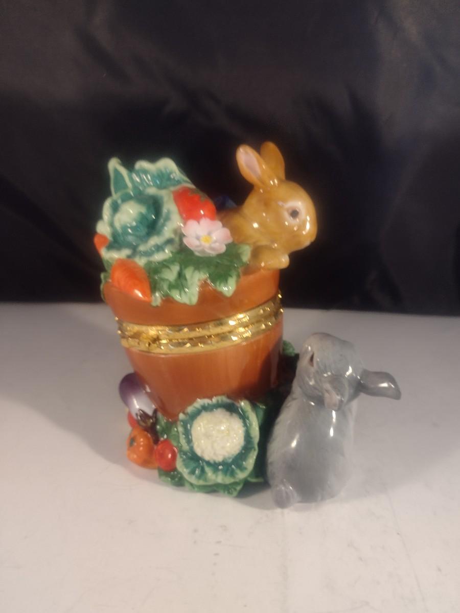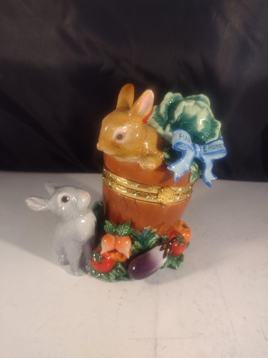 Ceramic Rabbit in a Bucket Hinged Trinket Box