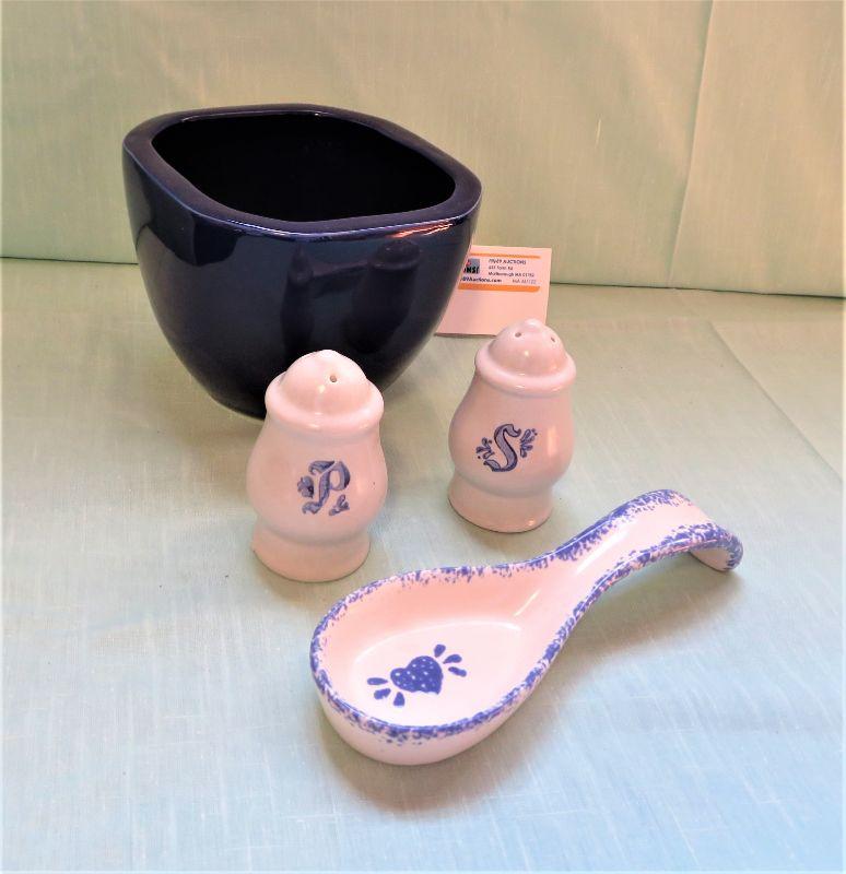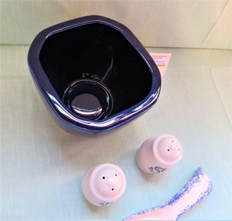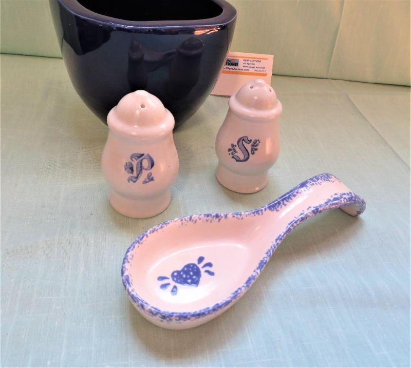 Ceramic Salt n Pepper, Country Blue Spoon Rest, Bowl Planter