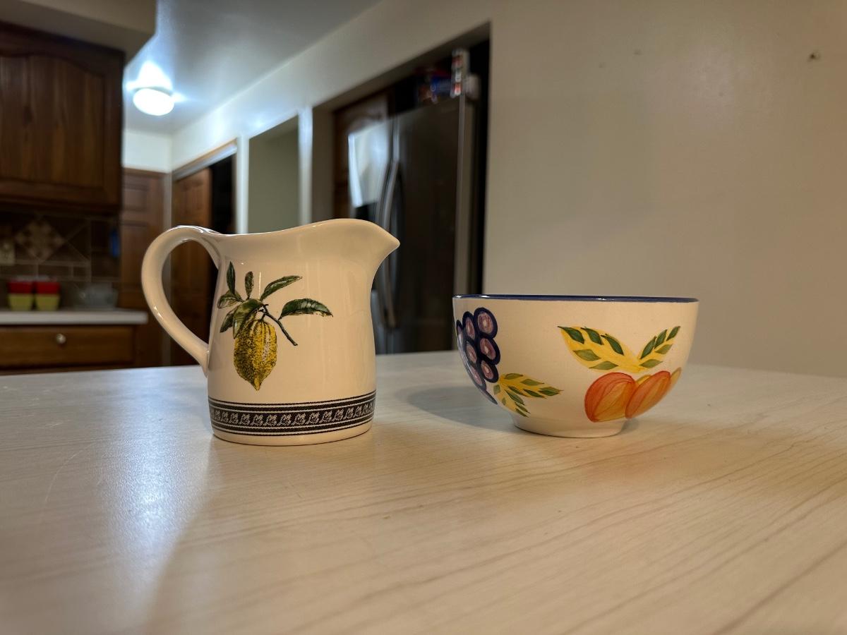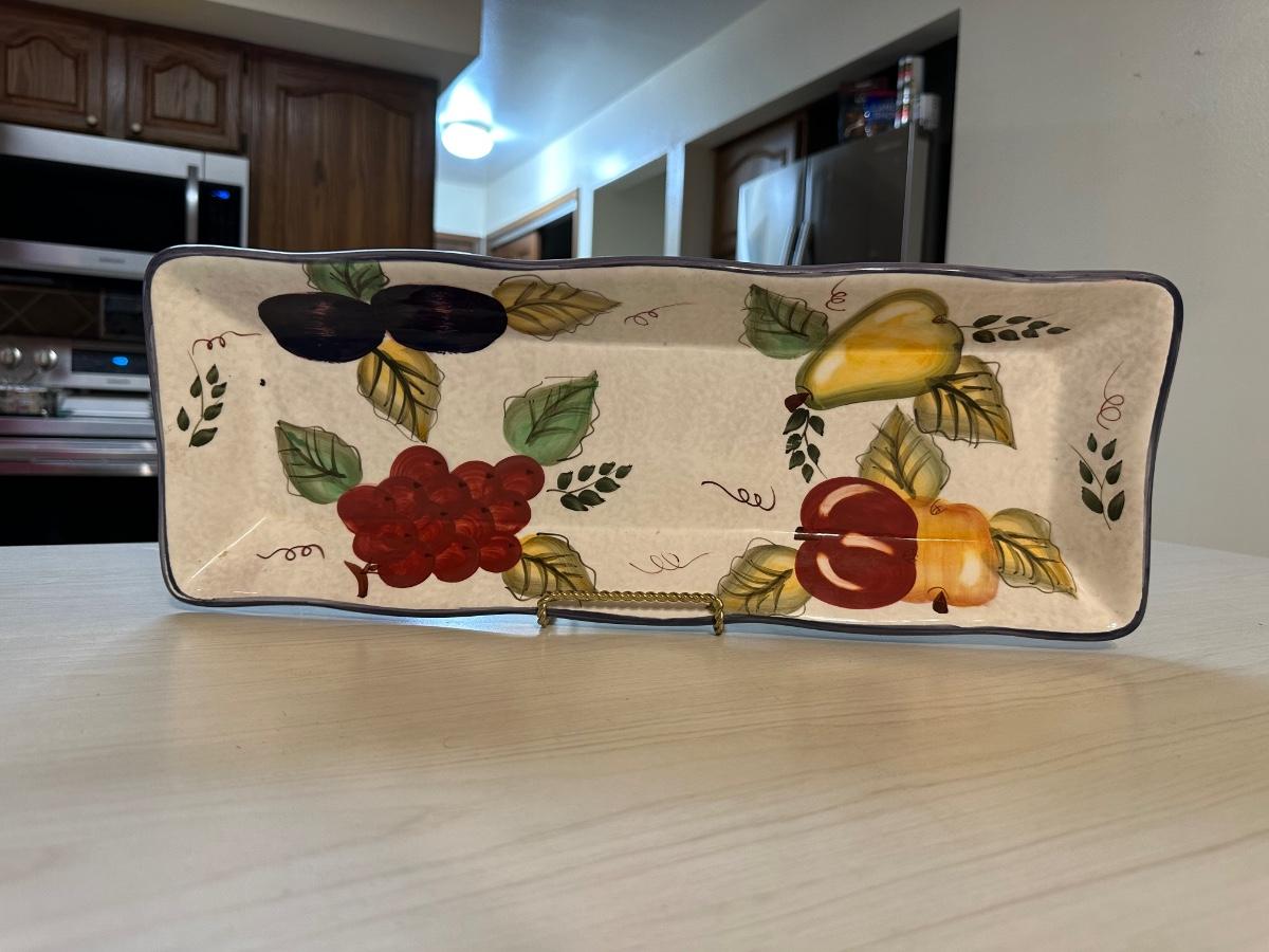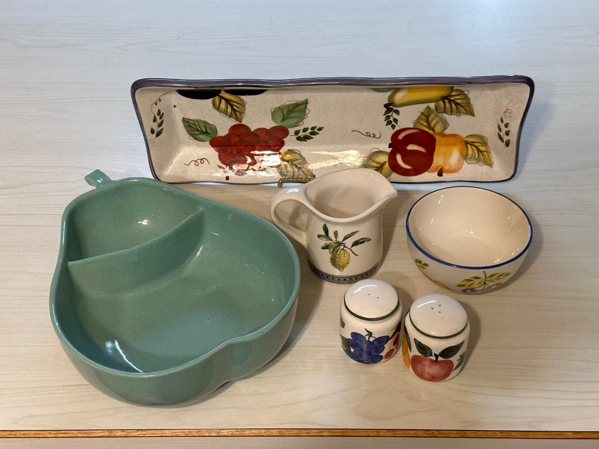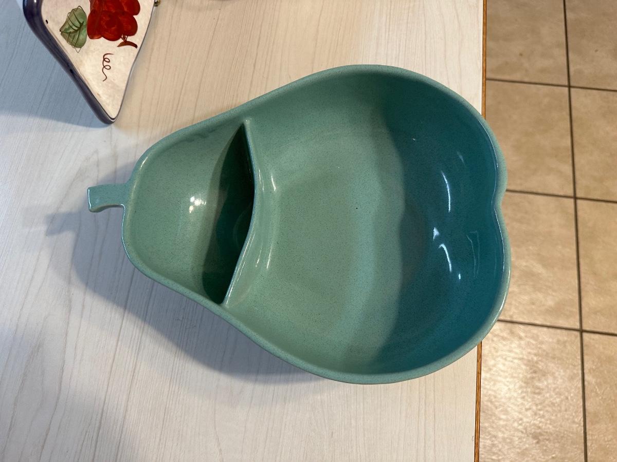 CERAMIC SECTIONED PEAR BOWL, PLATTER AND MORE