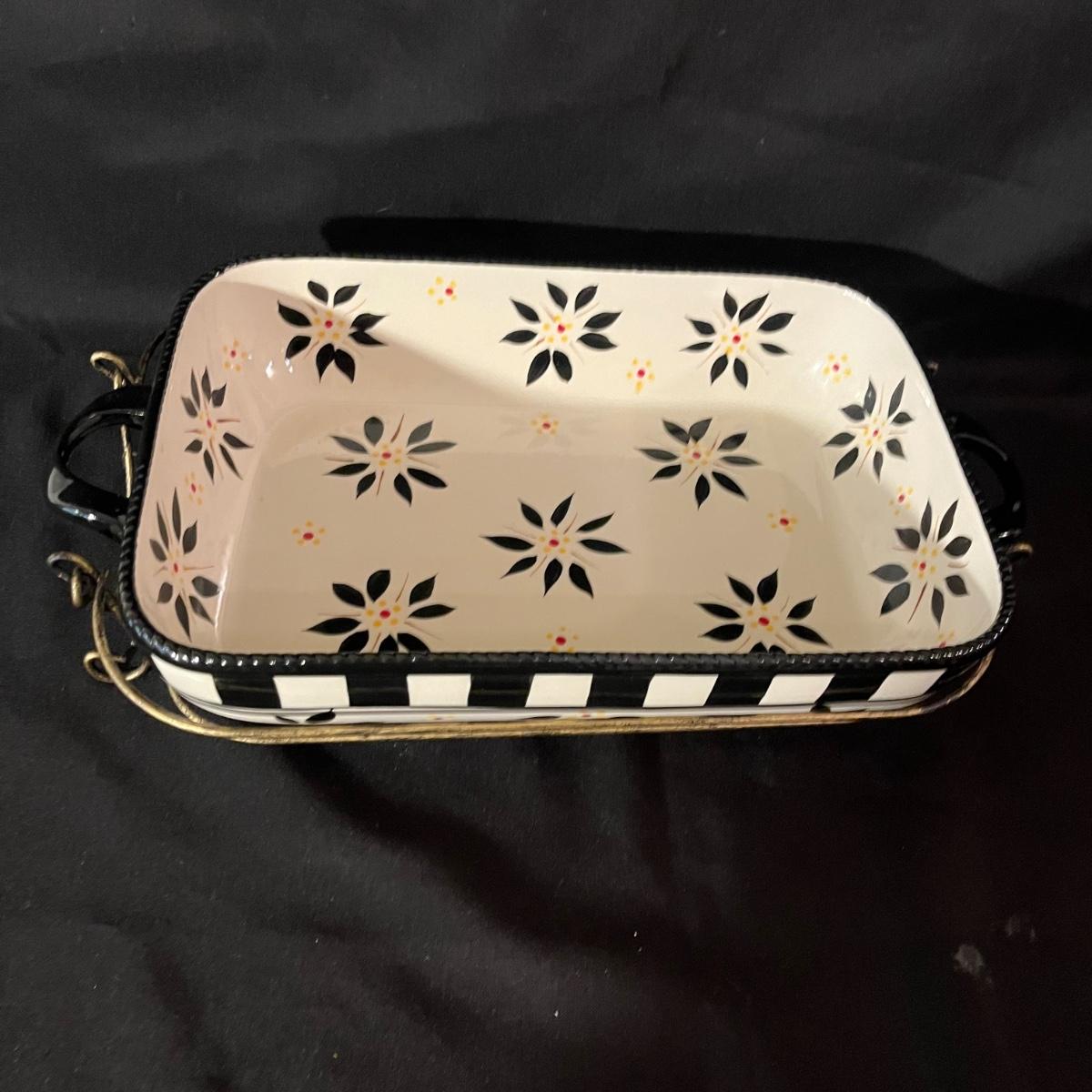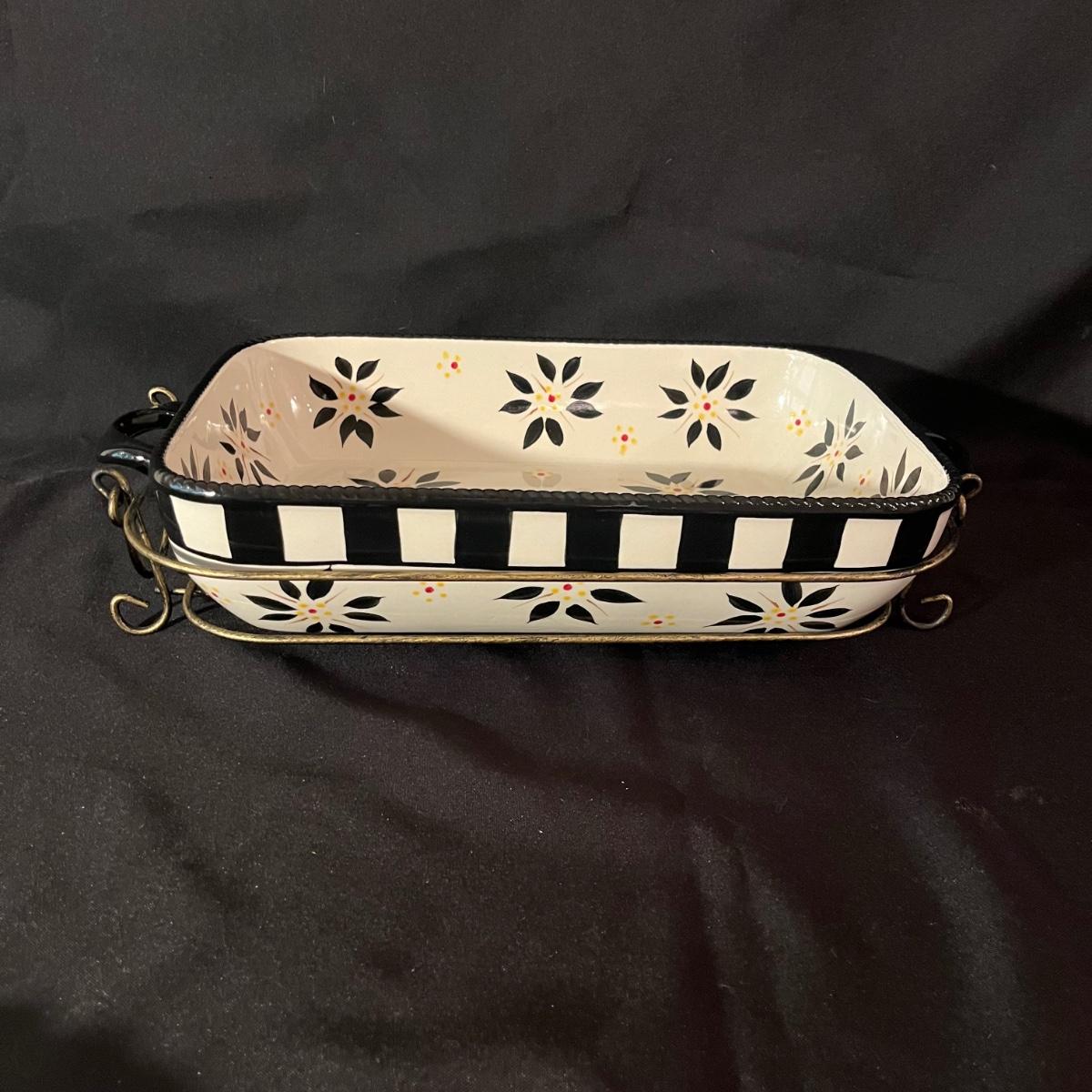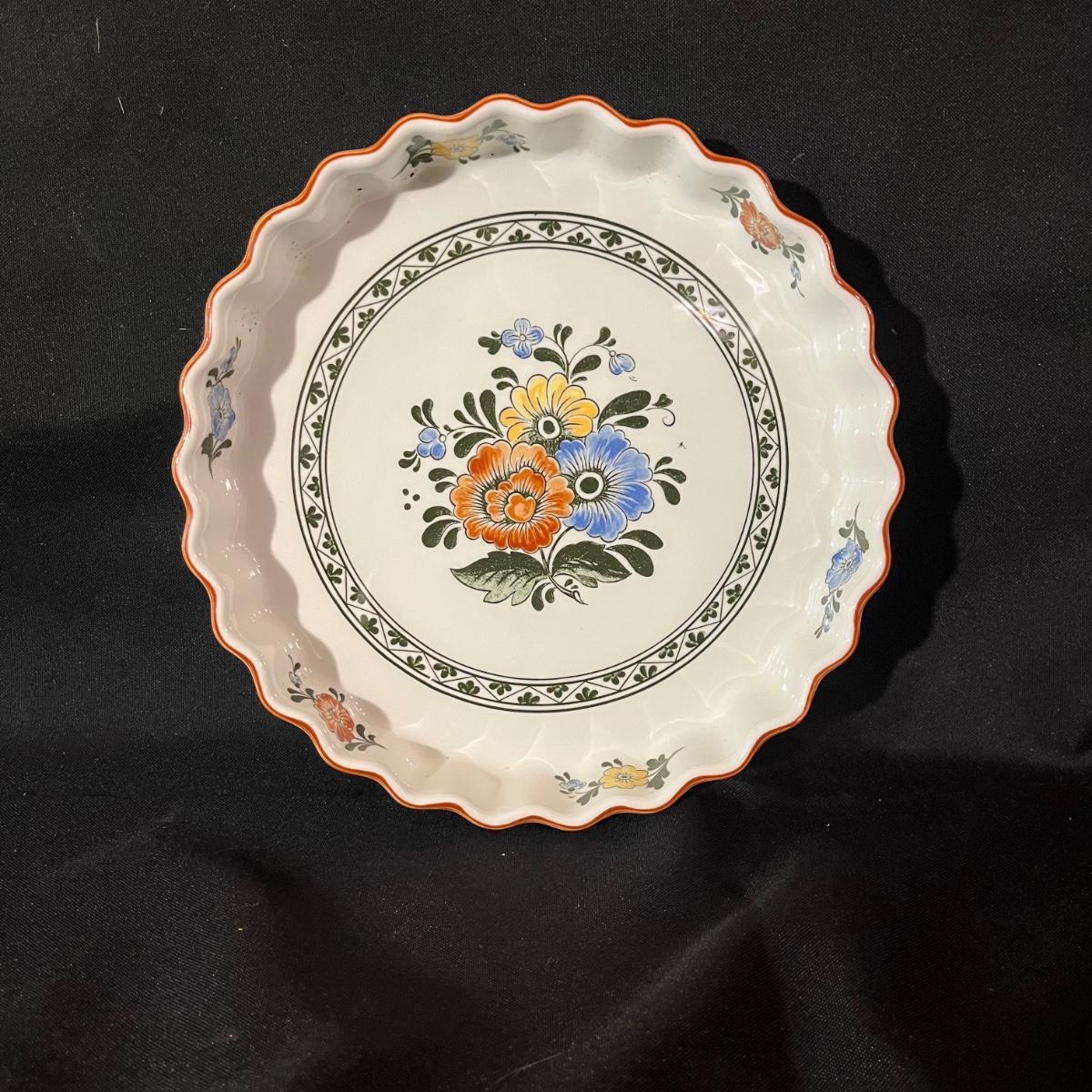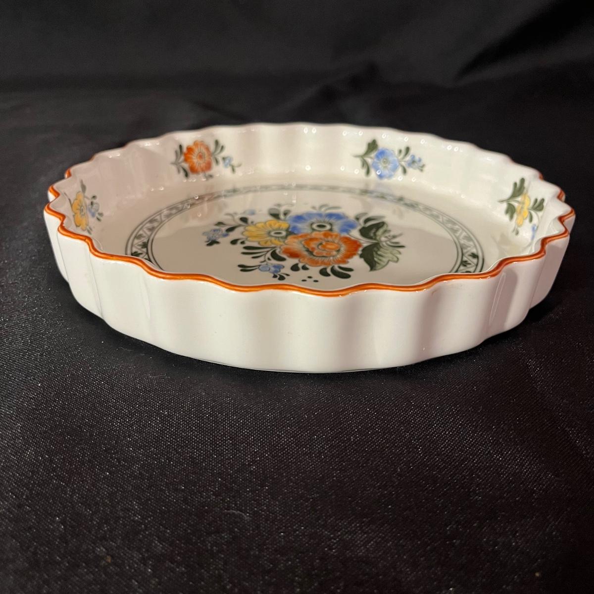 Lot includes a Temp-Tations serving dish with metal stand, Villeroy & Boch tart dish and a Mesa pie plate.