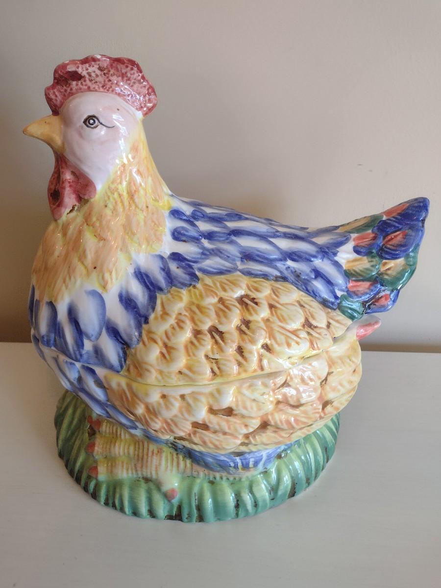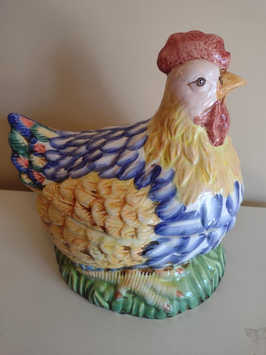 Ceramic Sitting Hen Cookie Jar with Wooden Eggs