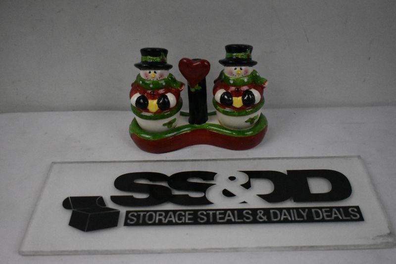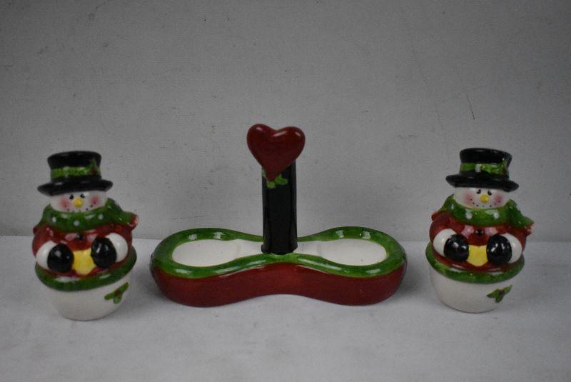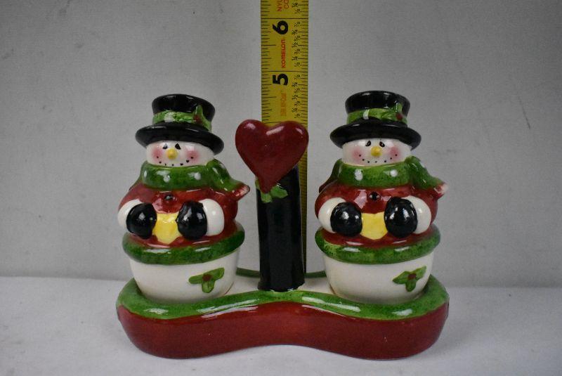 Ceramic Snowman Salt & Pepper Shakers with Stand