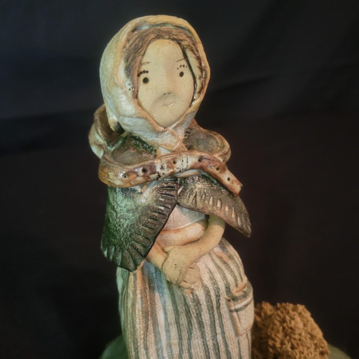 Ceramic Statue of a Woman and Sheep (GR-DW)