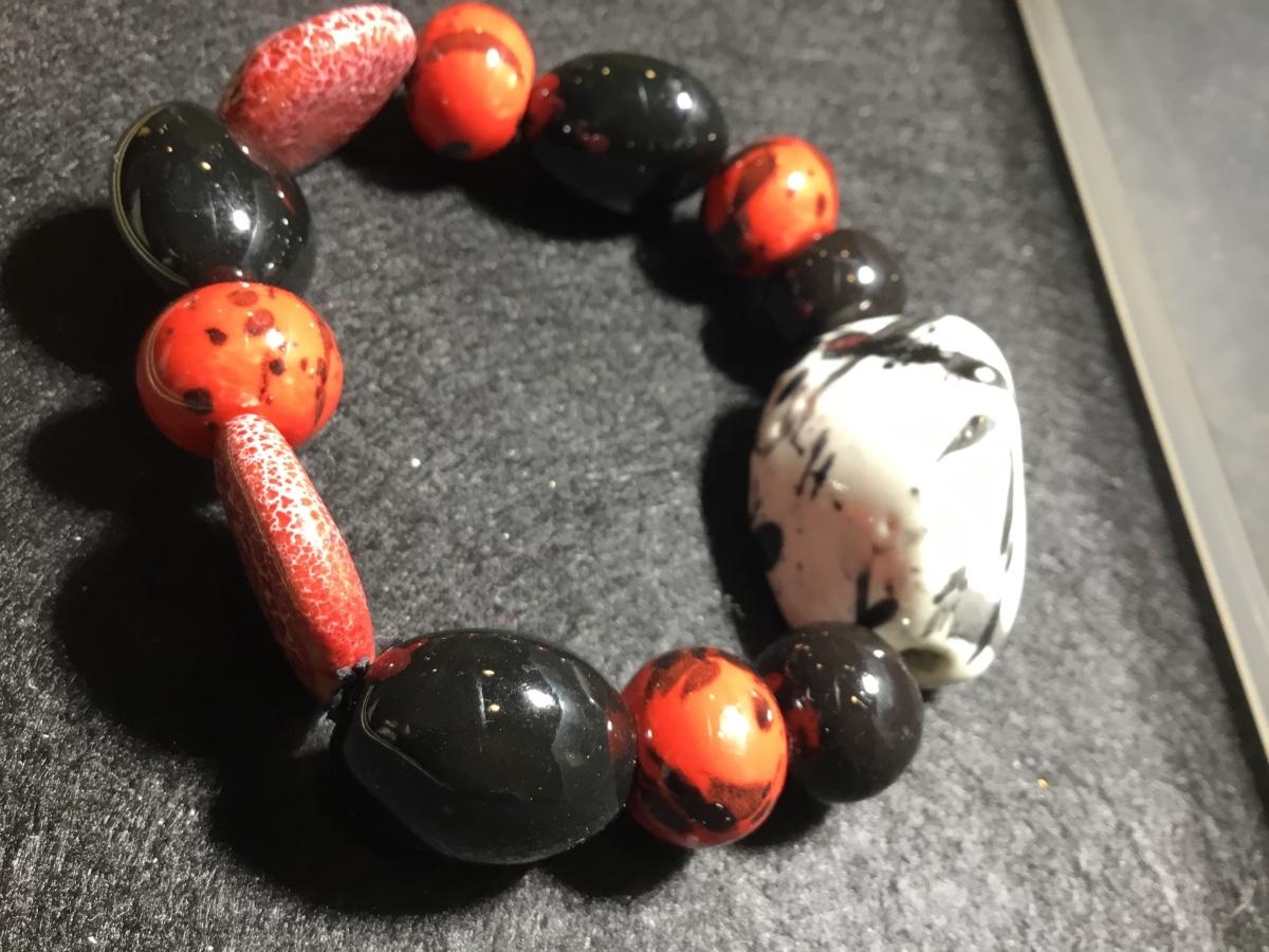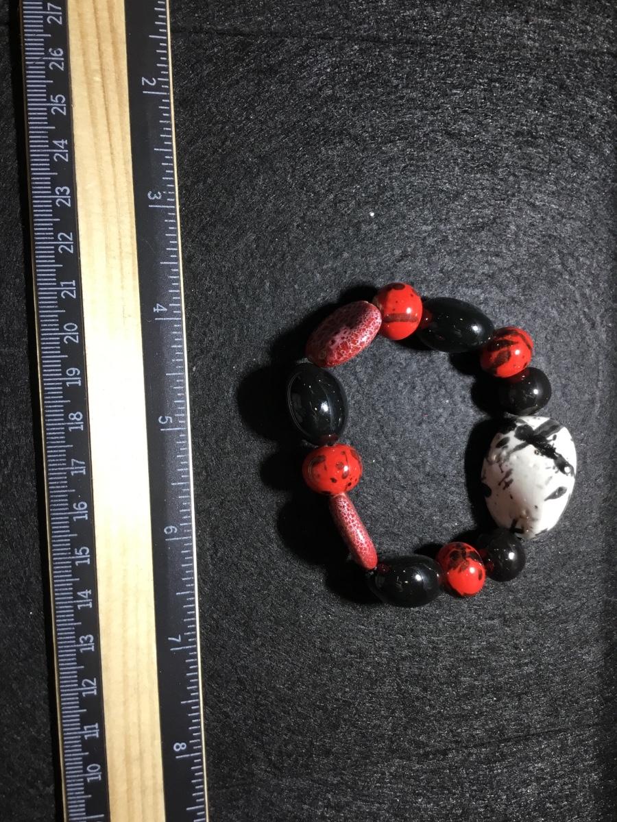 Ceramic stone type textured stretchy red and black fashion bracelet
