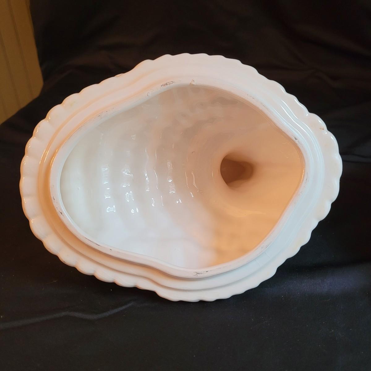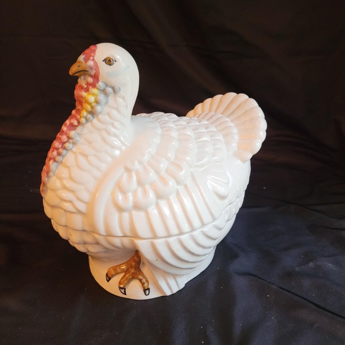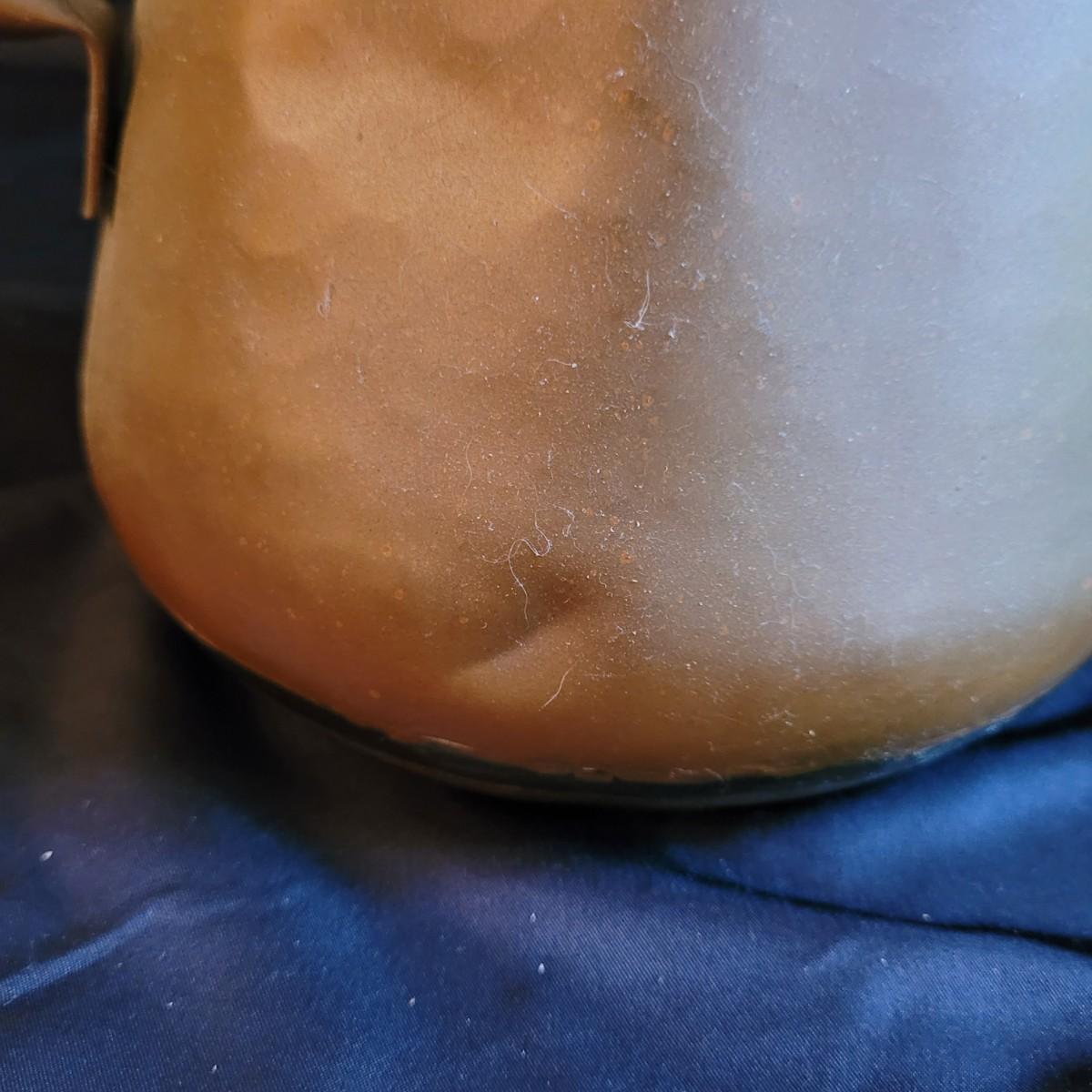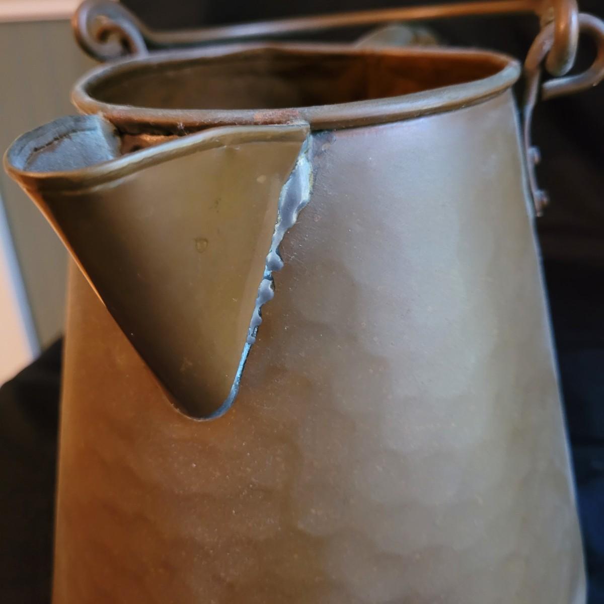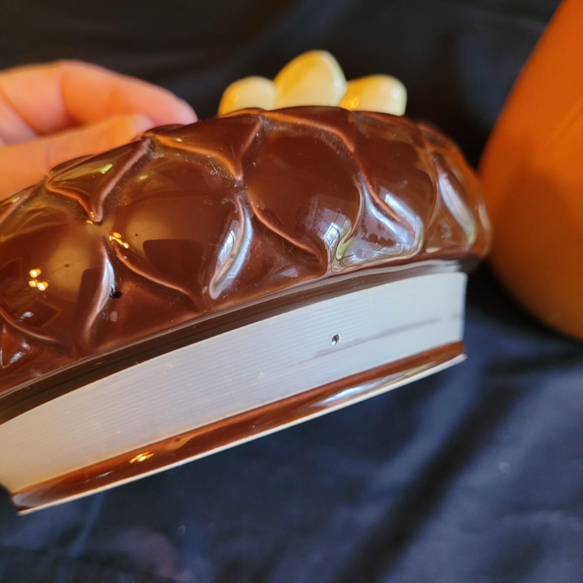This lot of kitchen decor includes two ceramic storage jars, a painted ceramic pear and a copper style pitcher. Pitcher measures approximately 7”D (at base) x 10”H. Shipping available.