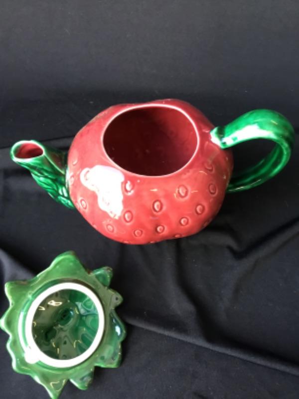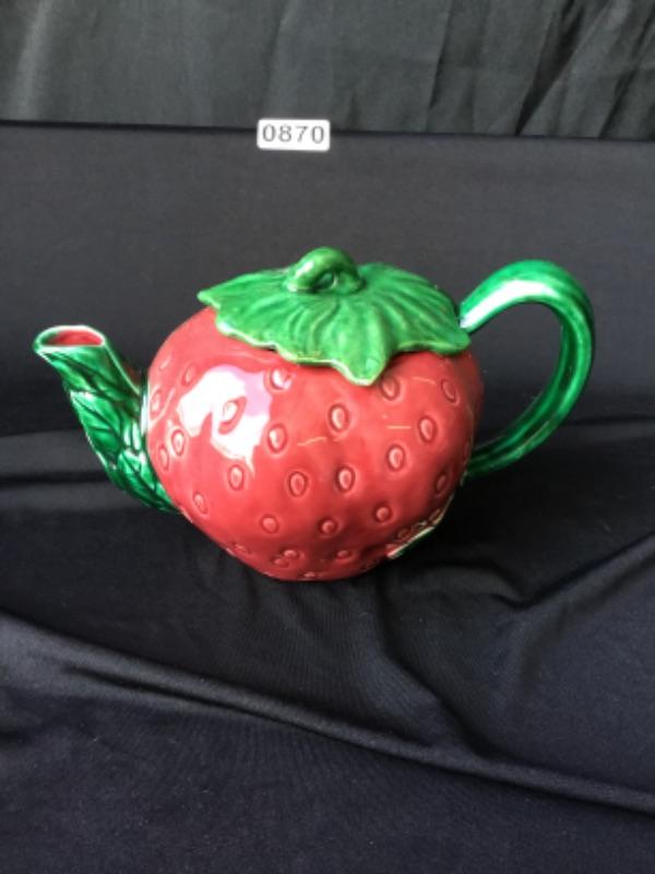 Ceramic Strawberry tea pot with lid lot 870