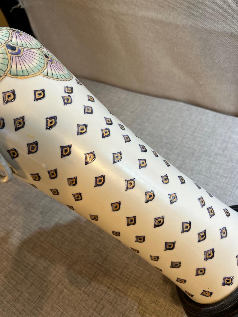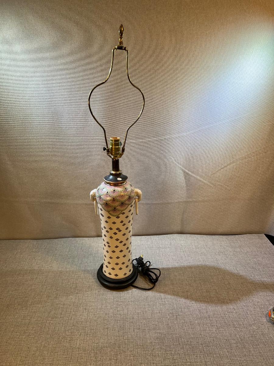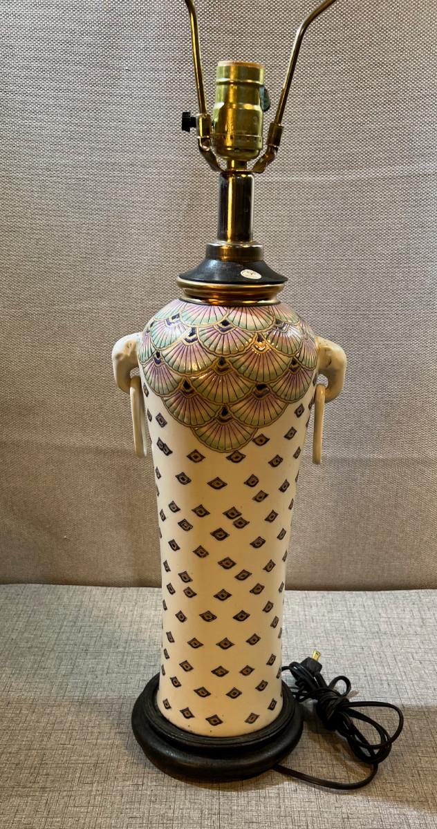 Ceramic Table Lamp 33" Tall white with Pink & Aqua shell Design with Elephants