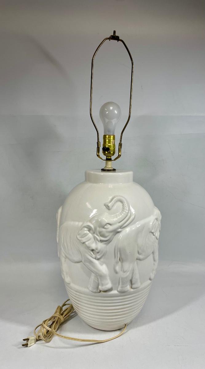 Large Scale Mid Century Hollywood Regency Blanc de Chin Elephant Lamp 3D refief