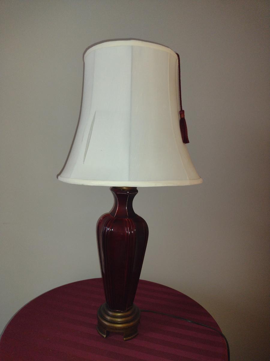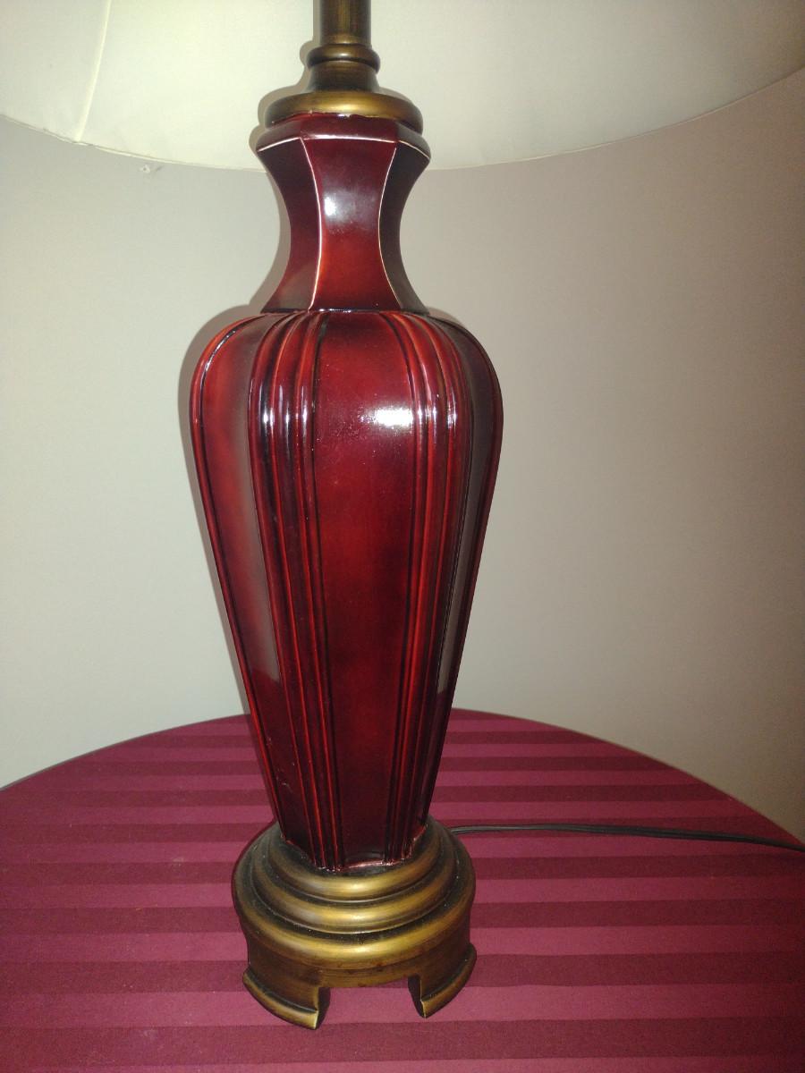 Ceramic Table Top Lamp with Shade- Approx 33 3/4" Tall. Some damage to shade- please see all pictures.