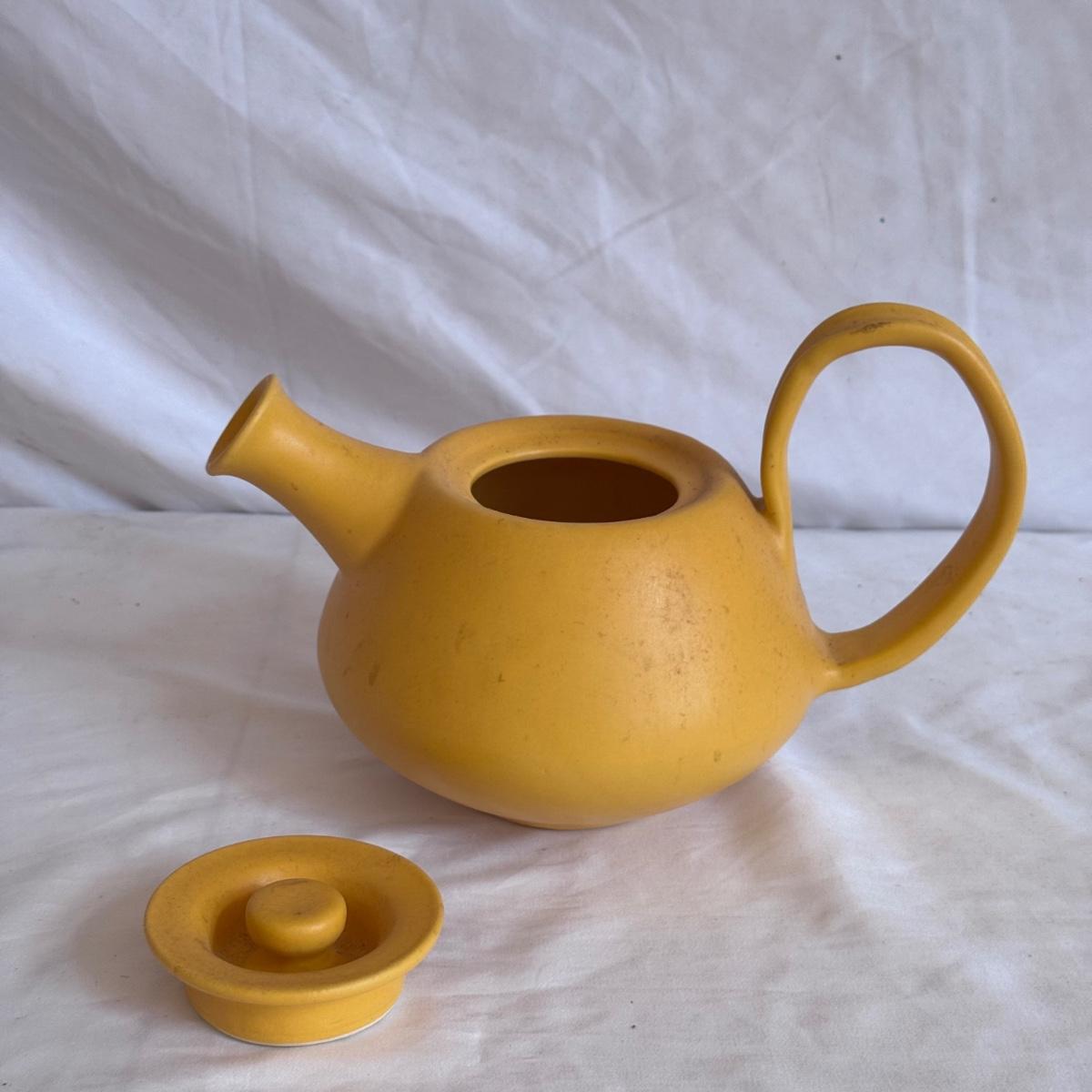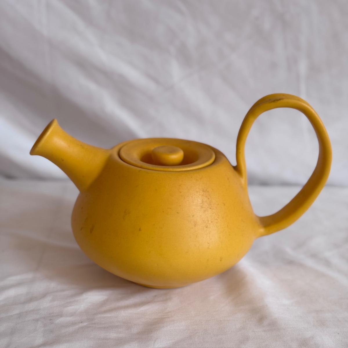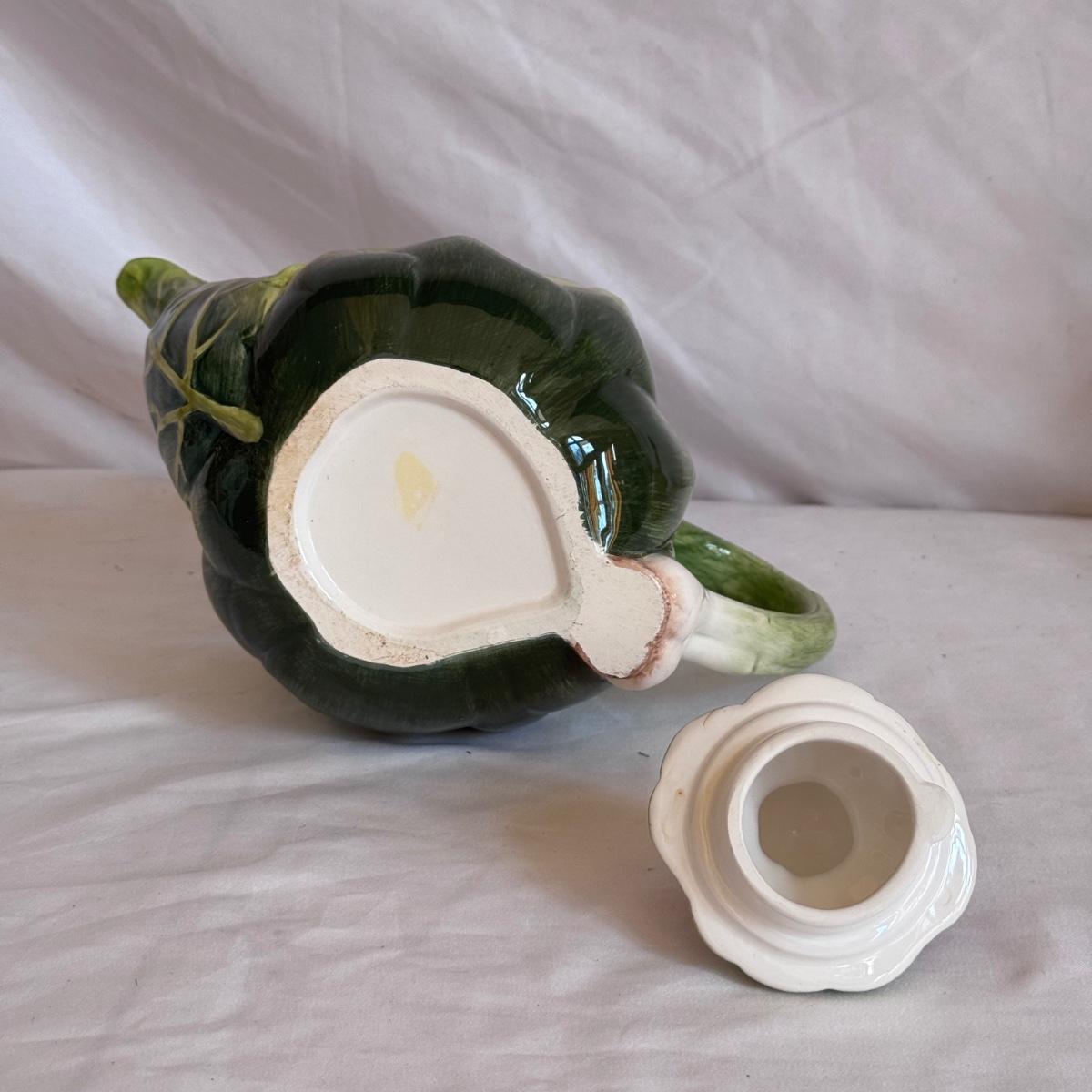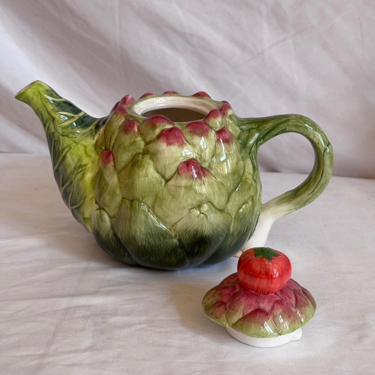 For the tea lovers! This lot includes one ceramic artichoke tea pot, one yellow ceramic tea pot, and a red ceramic tea canister with lid. It also includes “The New Tea Book” by Sara Perry, “The Afternoon Tea Collection” by Sterling, two mugs by Port Meirion and Vicki Sawyer, and two stainless steel tea infuser balls. The tea canister is the largest item that measures 6.25” x 6.25” x 8”H. Shipping available.