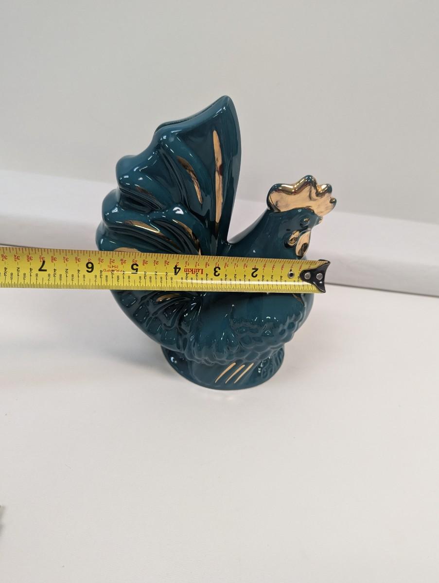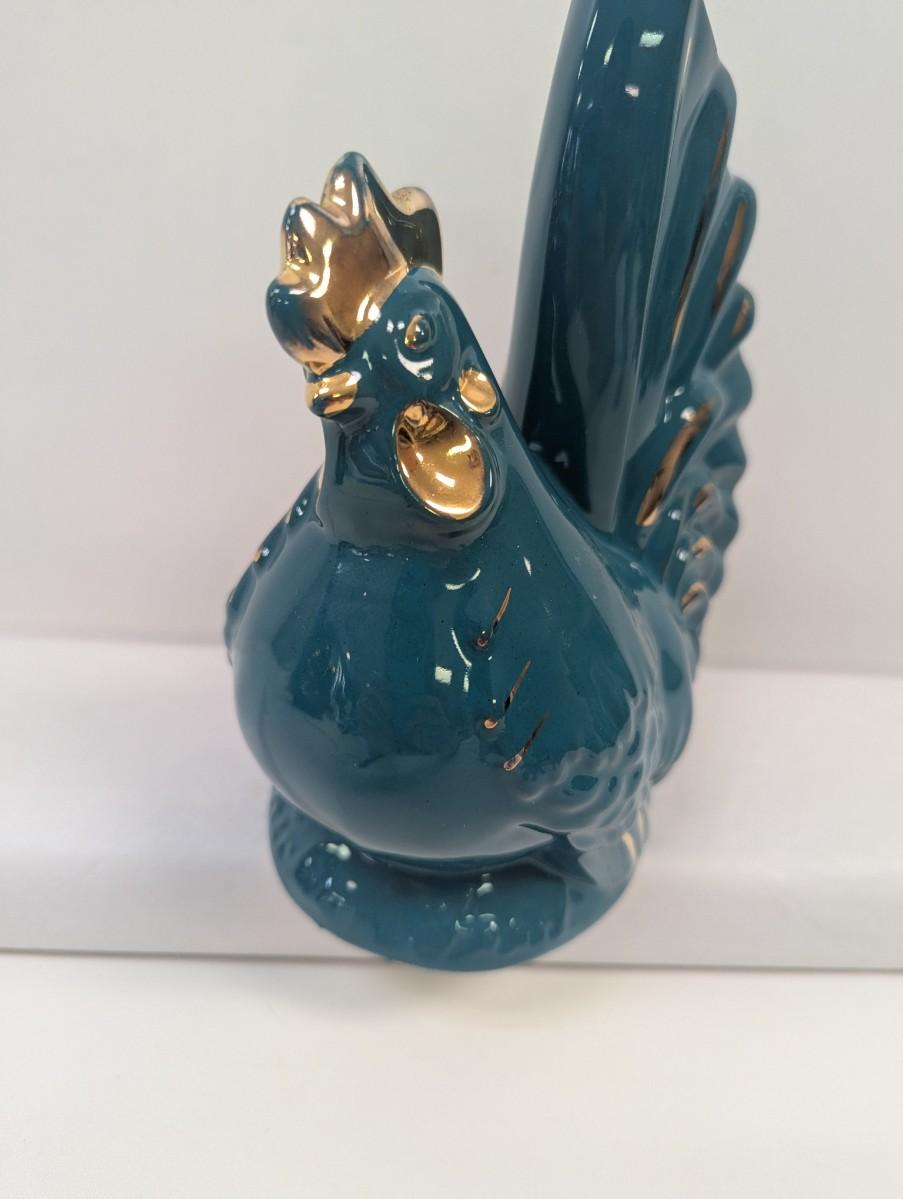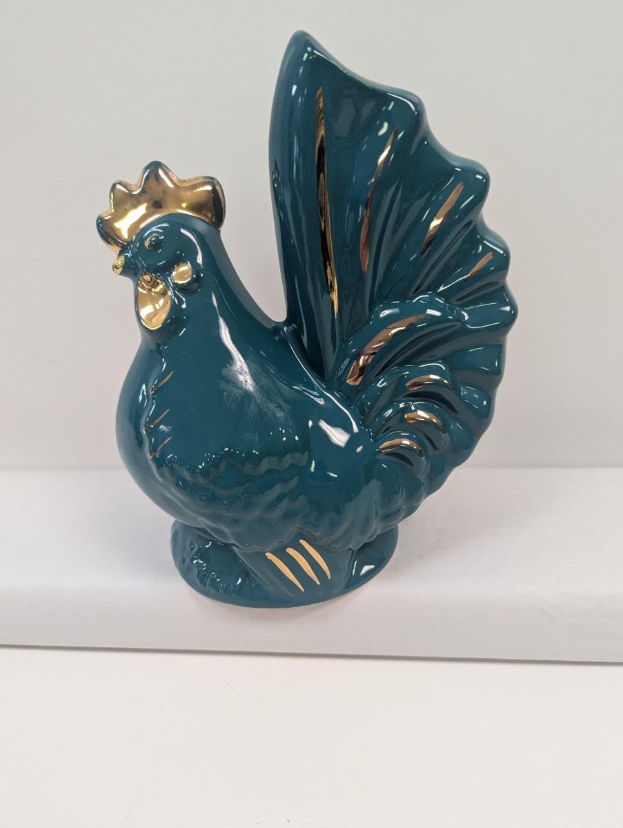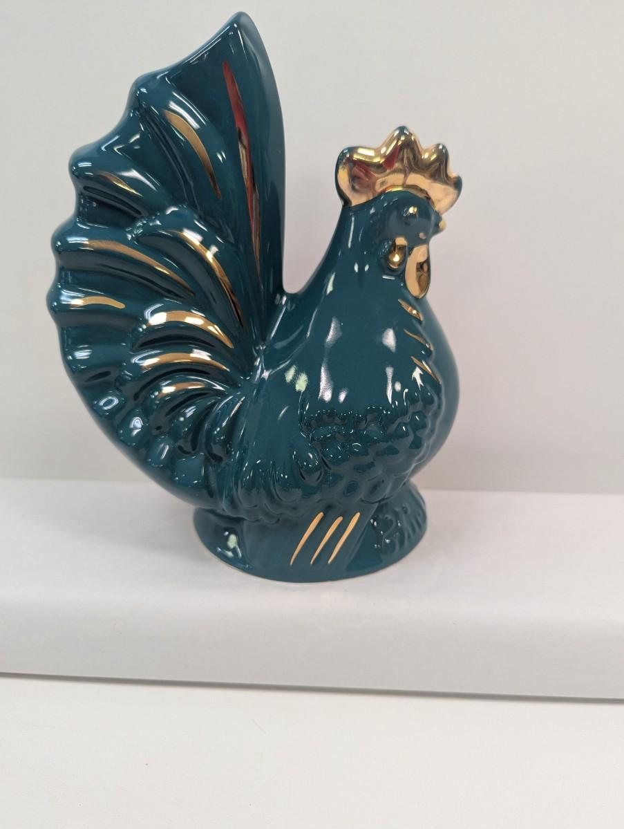 Ceramic Teal/Gold Rooster Bank