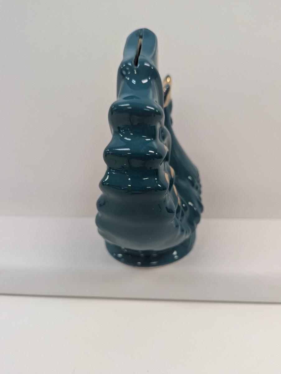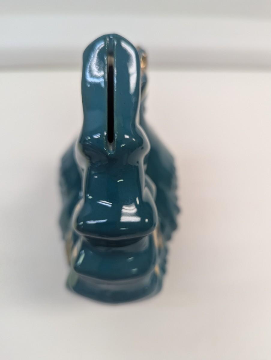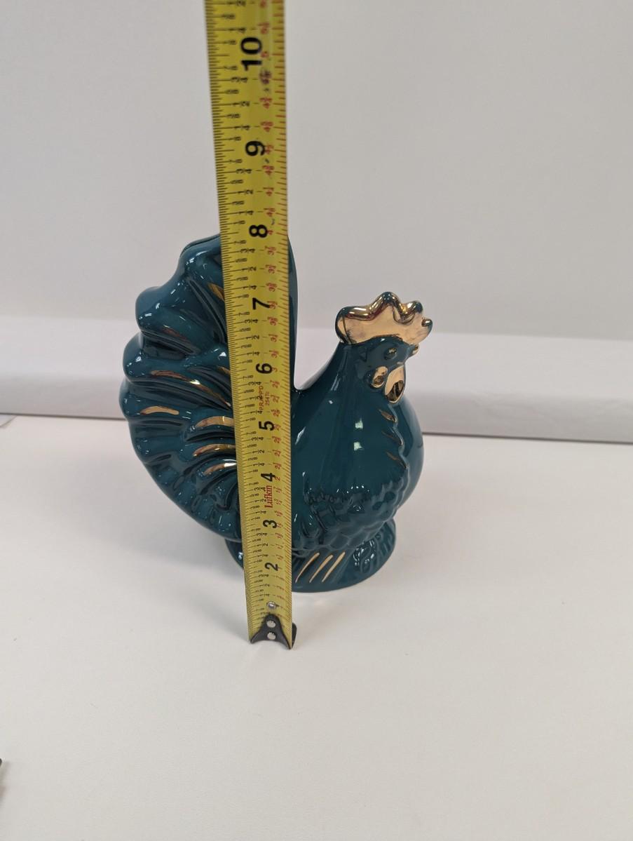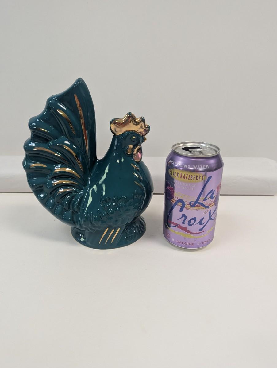 Ceramic Teal/Gold Rooster Bank