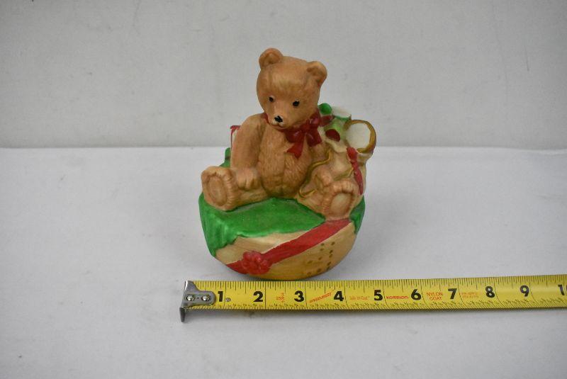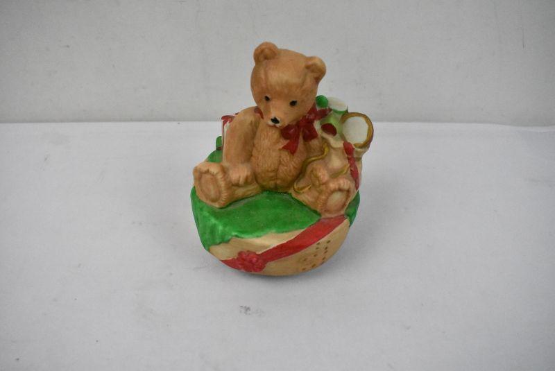 Ceramic Teddy Bear Music Box "We Wish You a Merry Christmas" - Tested, Works